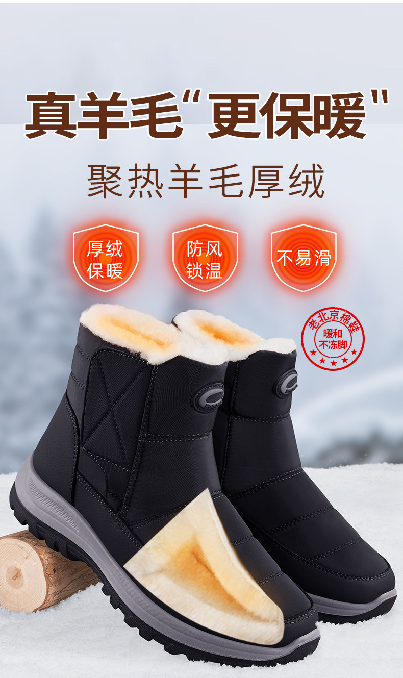 Old Beijing Cotton Shoes for Men, Winter Fleece-Lined and Thickened, 2025 New Style Snow Boots, High-Top, Non-Slip, Comfortable and Warm Dad Shoes