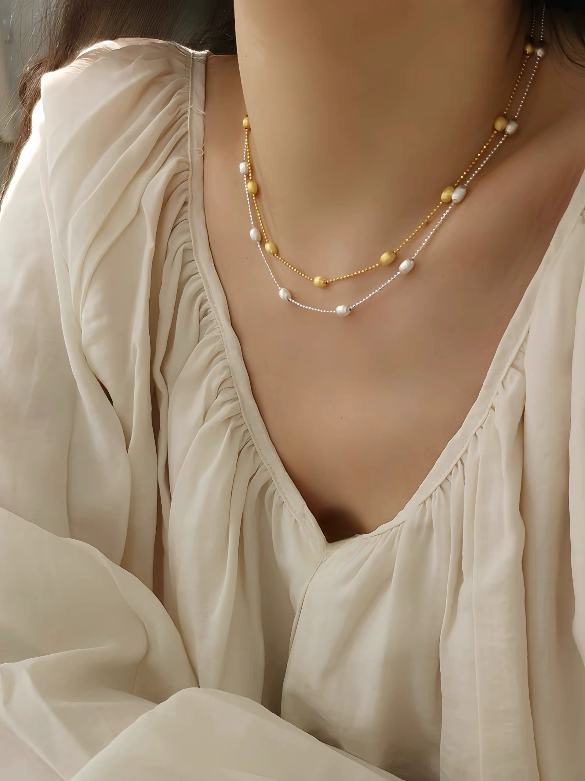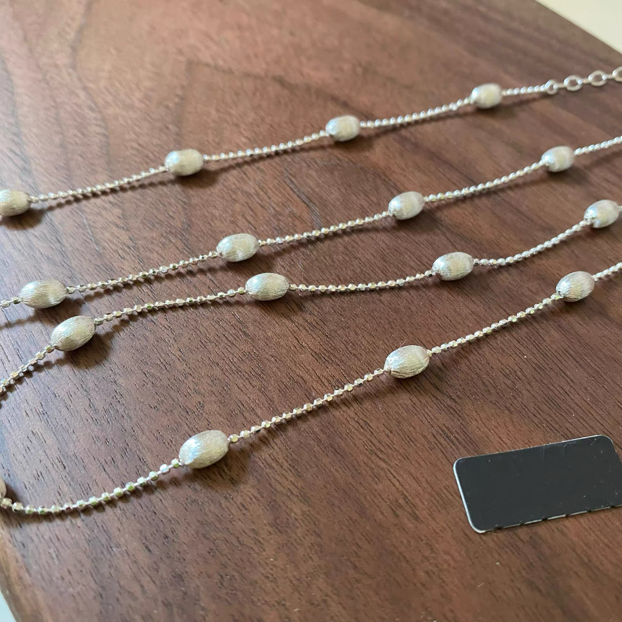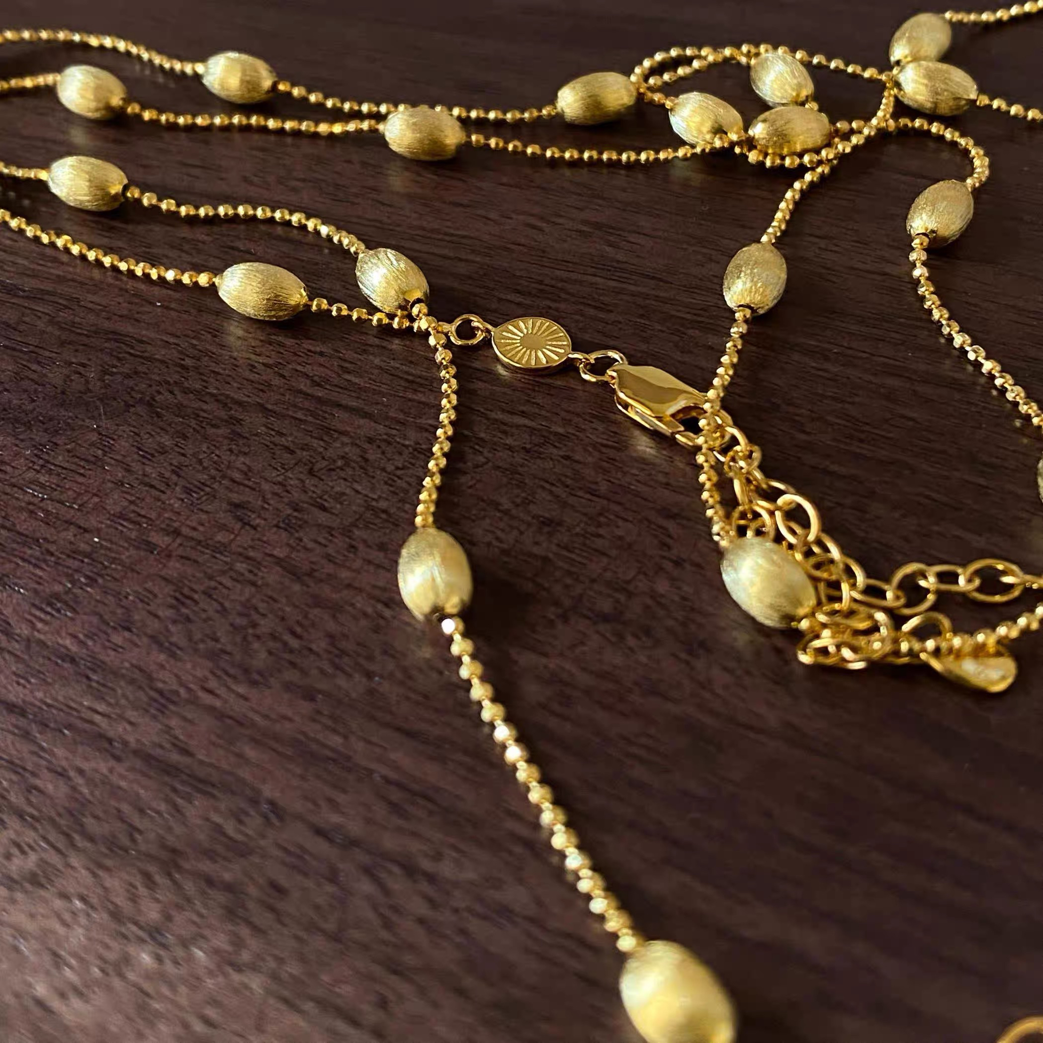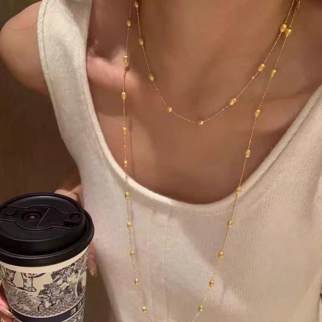 [Double Eleven] Italian Imported Brushed Necklace, Pure Silver Gold-Plated, Light Luxury Long Style Gold Bead Layered Sweater Chain