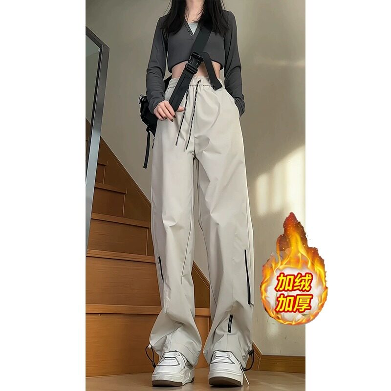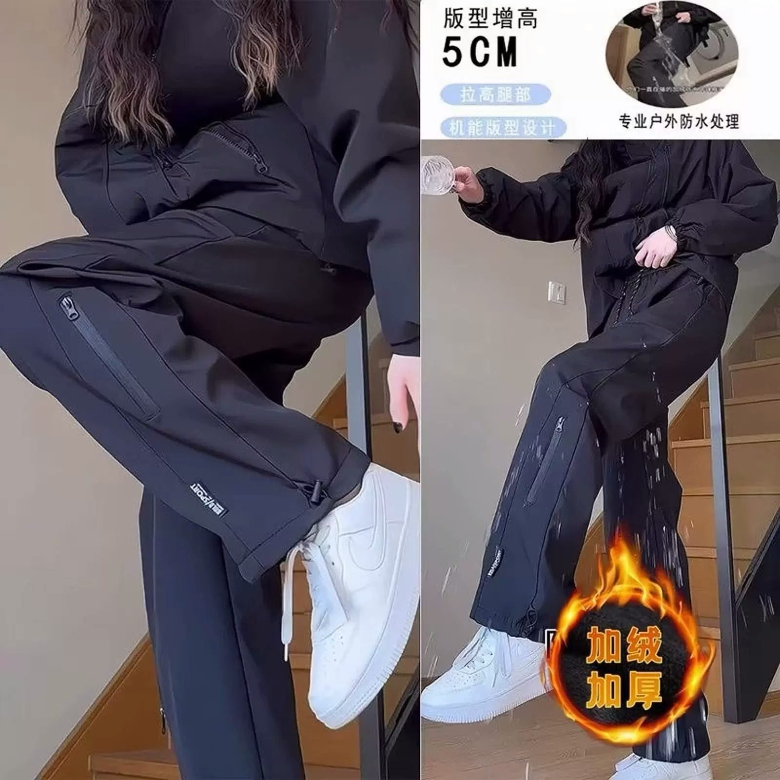 Autumn and Winter Fleece-Lined Waterproof and Windproof Hiking Pants for Men and Women, Trendy Workwear Pants, American-Style Loose Outdoor Sports Long Pants
