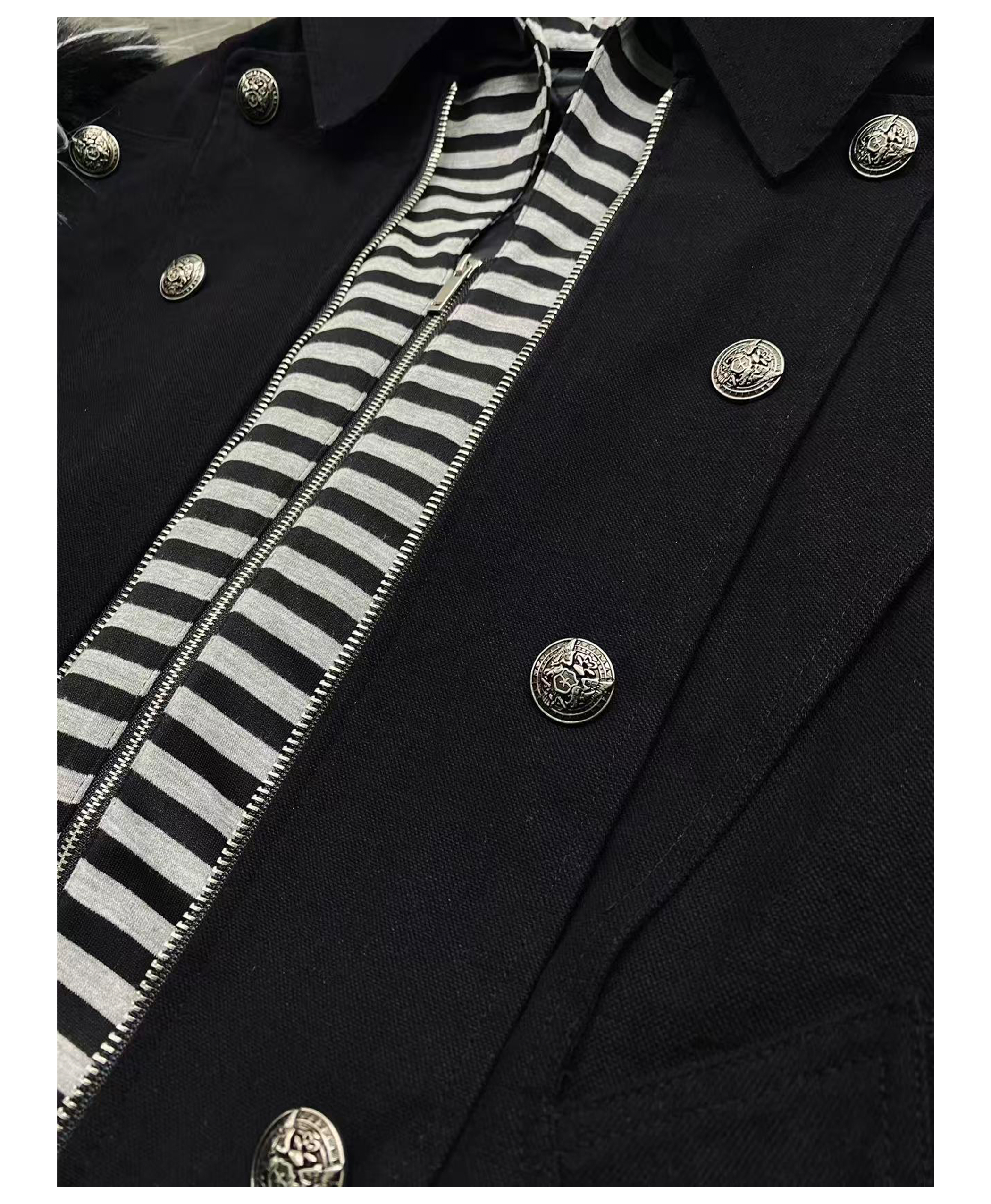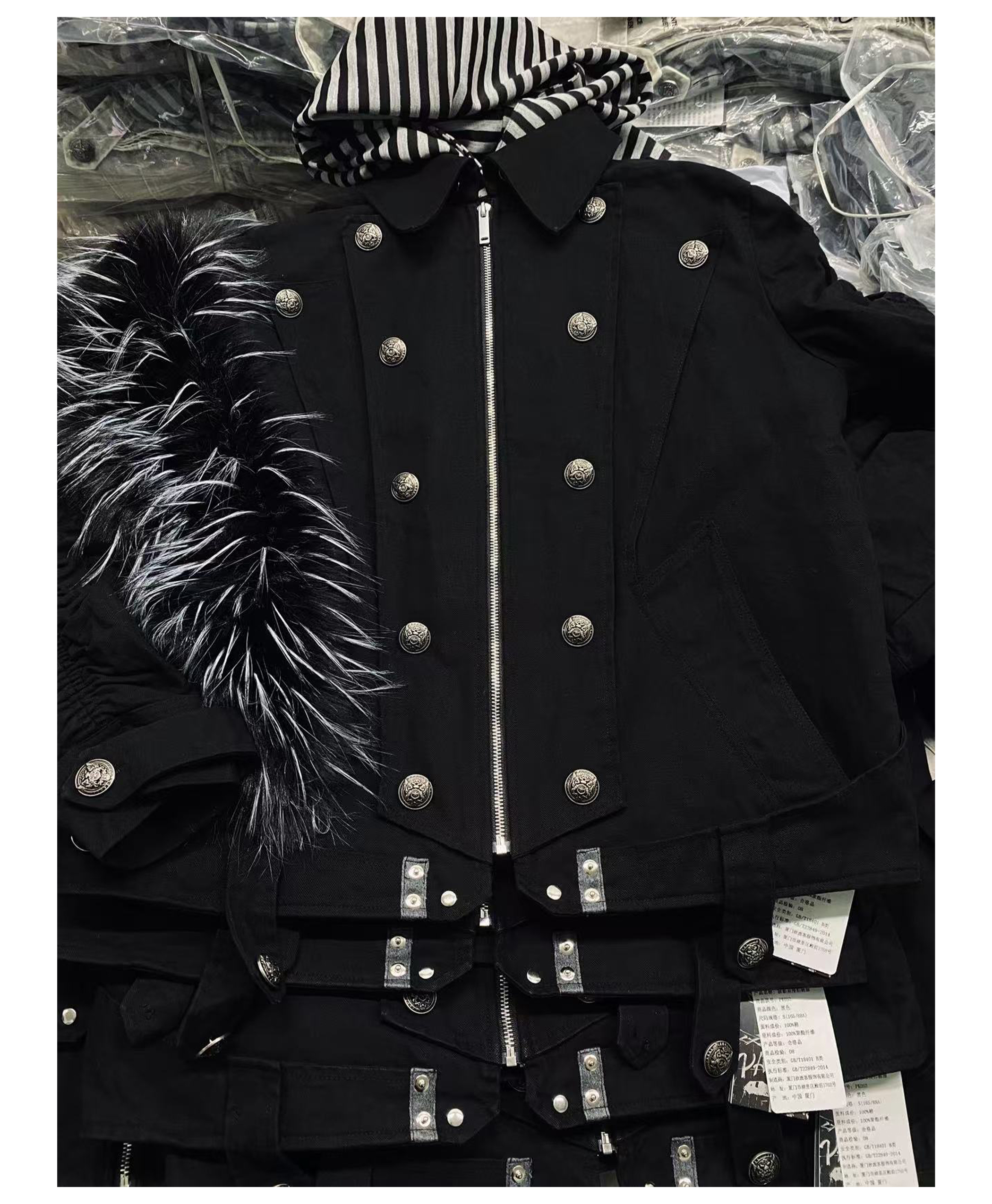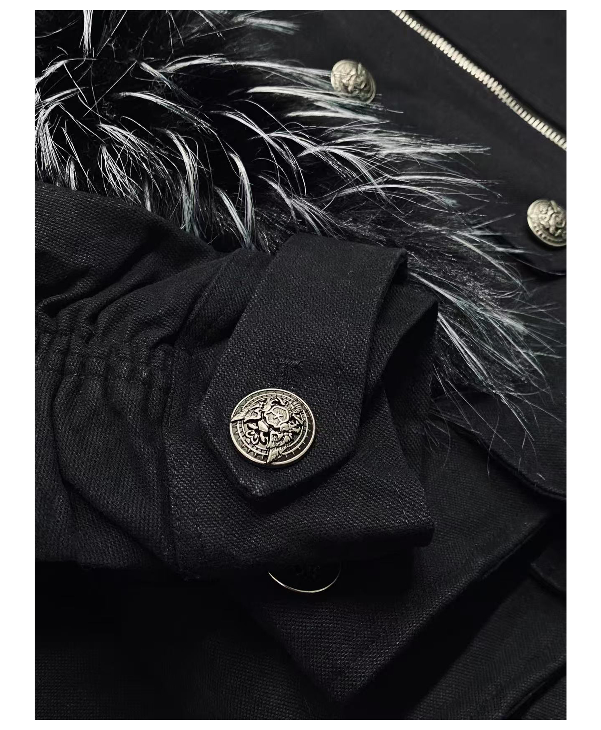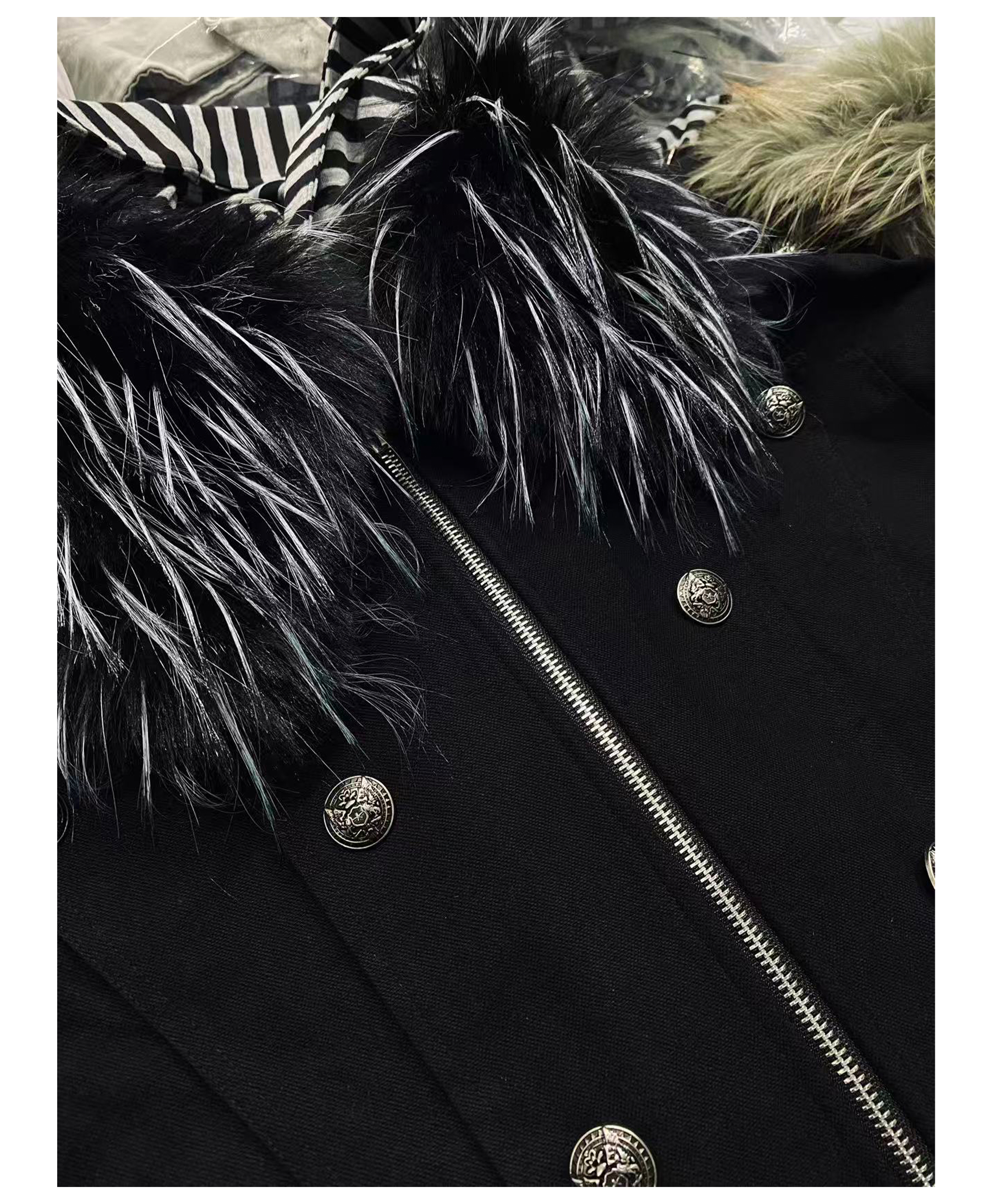Paiki'Winter Mark''Silent Shadow' Detachable Fur Collar Canvas Double-Breasted Jacket Cotton Coat for Autumn and Winter, Unisex
