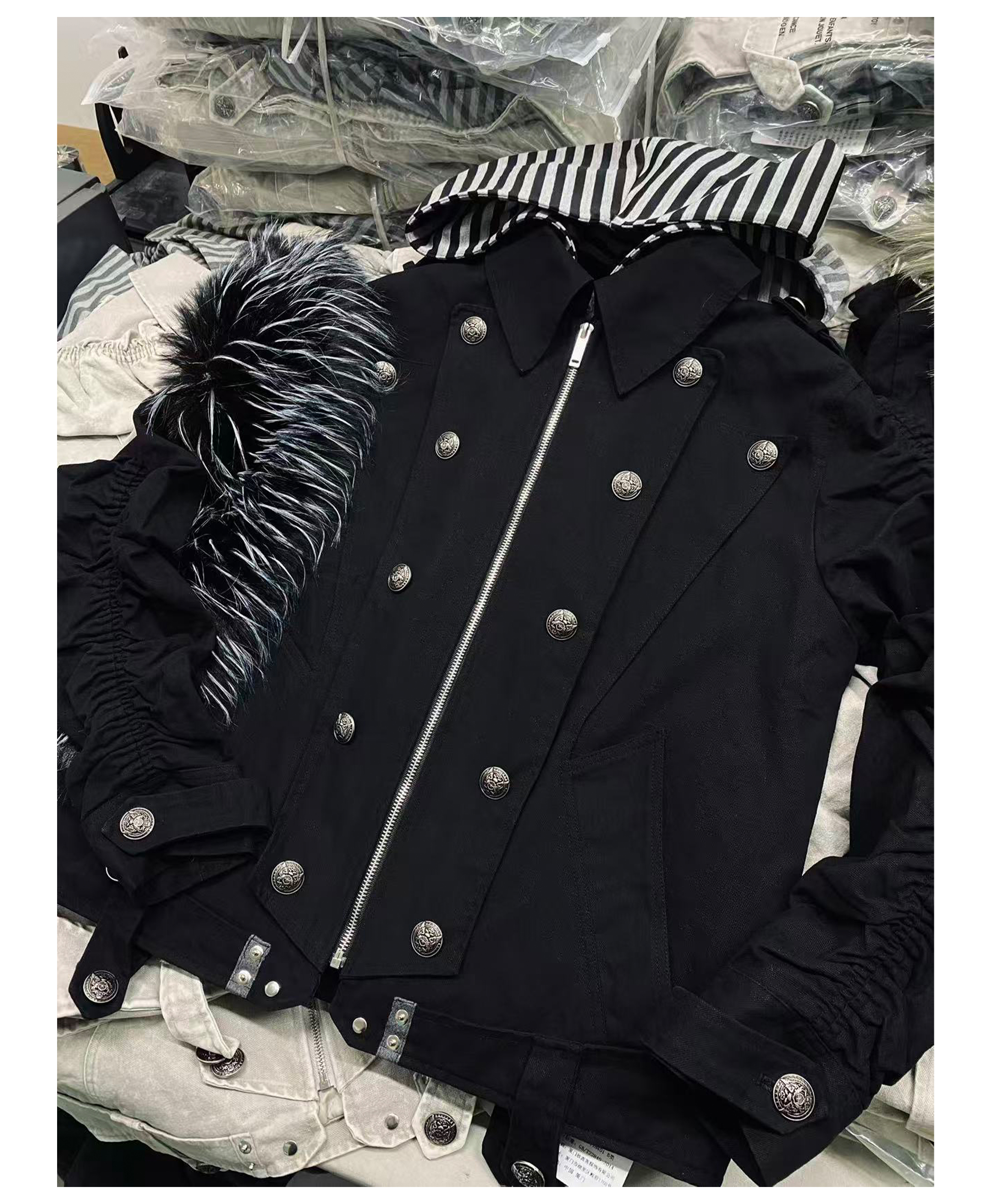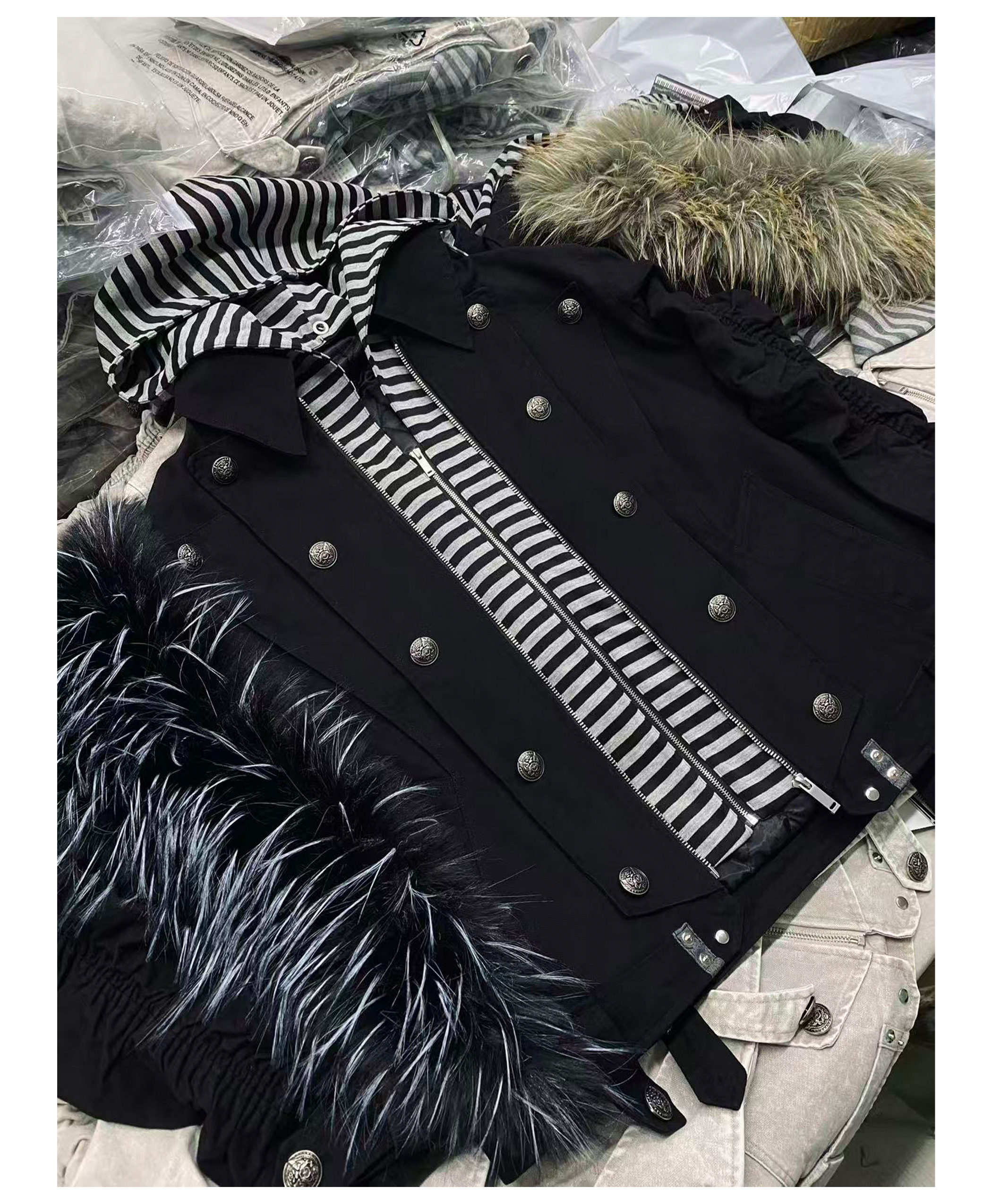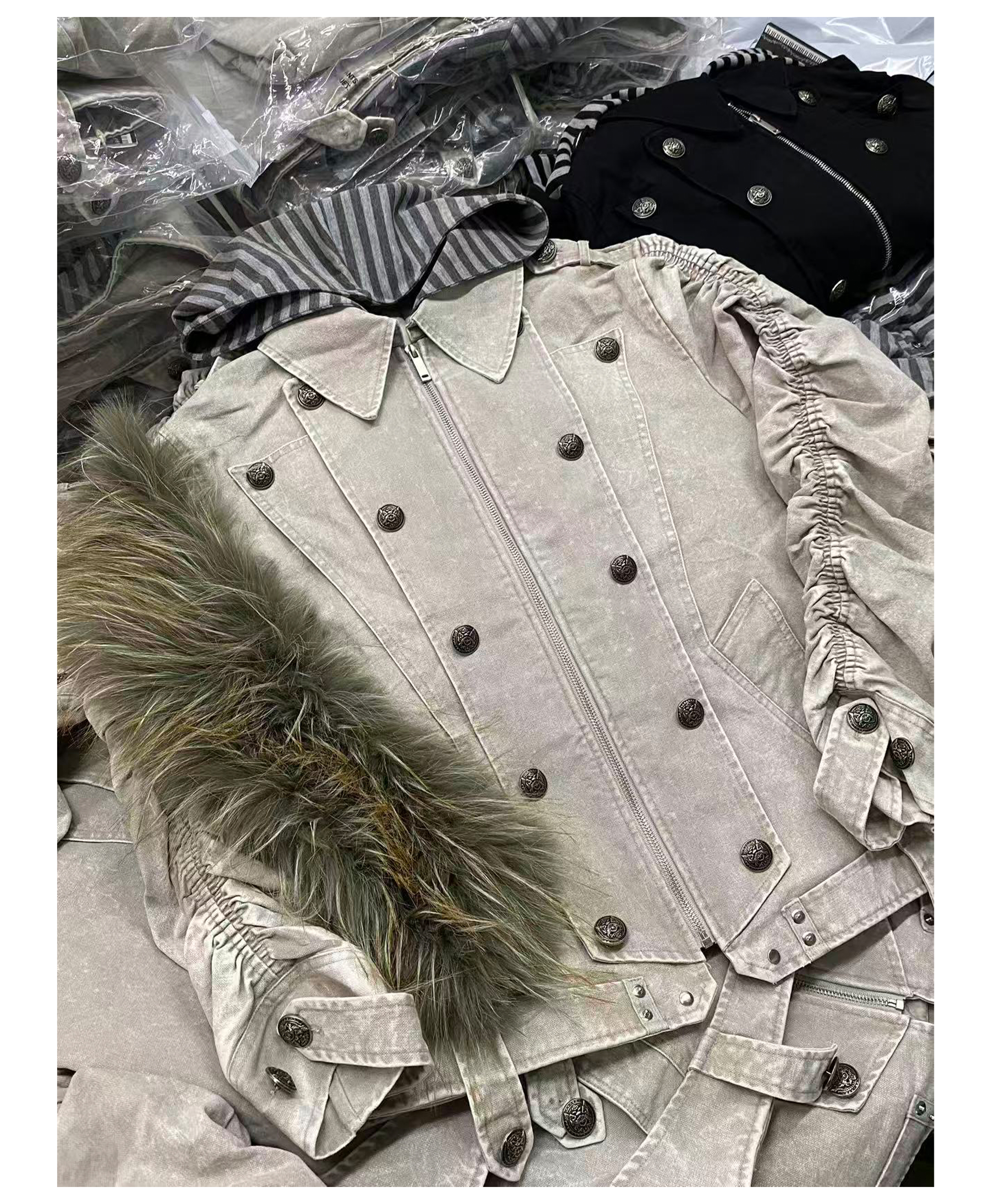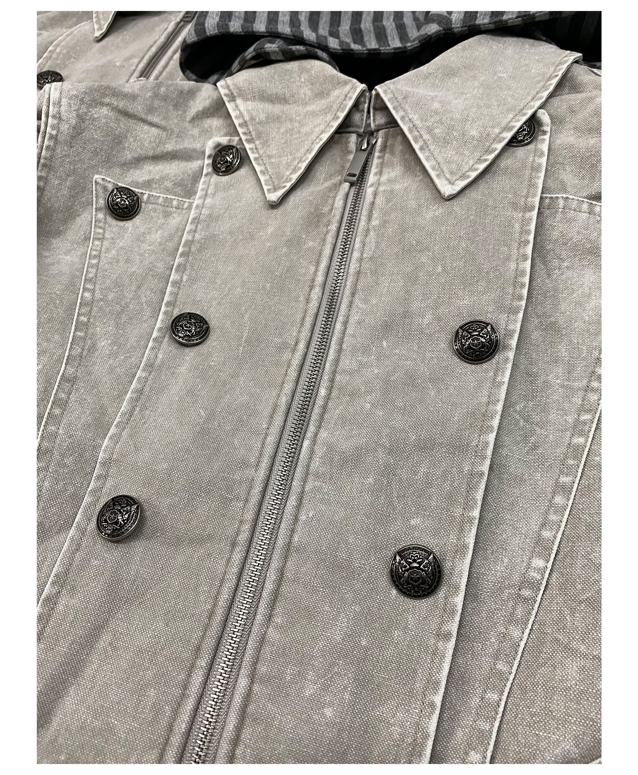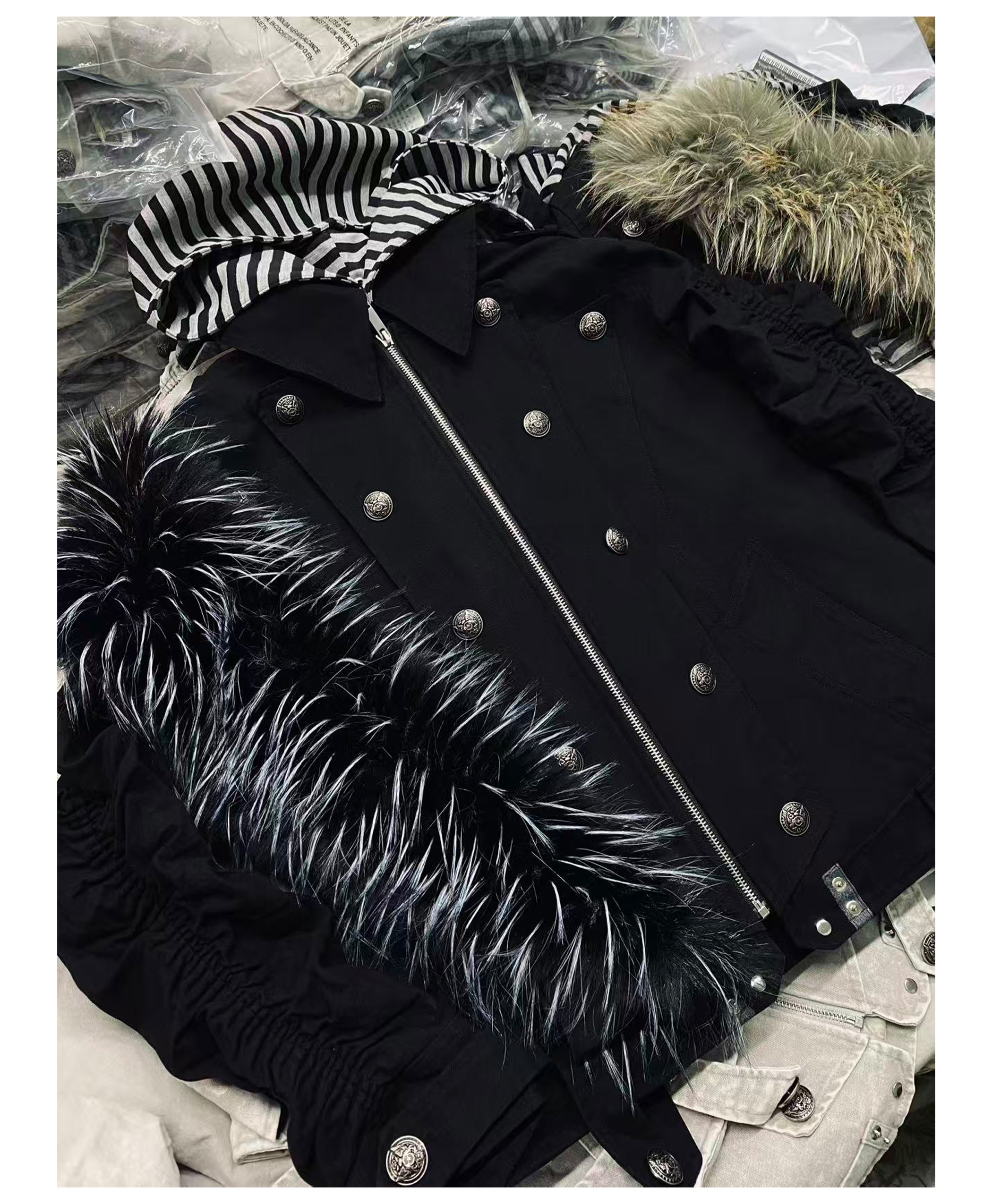 Paiki'Winter Mark''Silent Shadow' Detachable Fur Collar Canvas Double-Breasted Jacket Cotton Coat for Autumn and Winter, Unisex