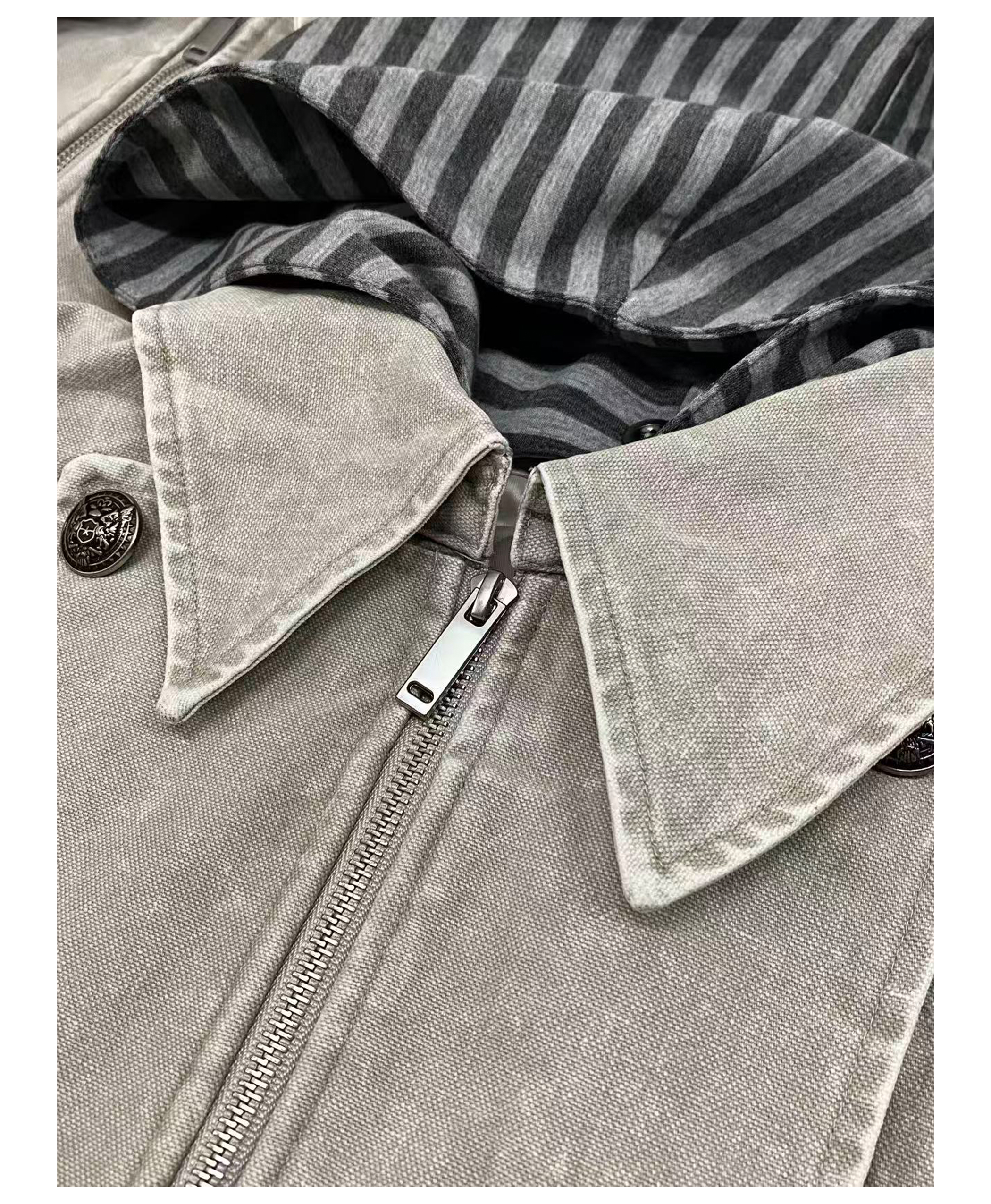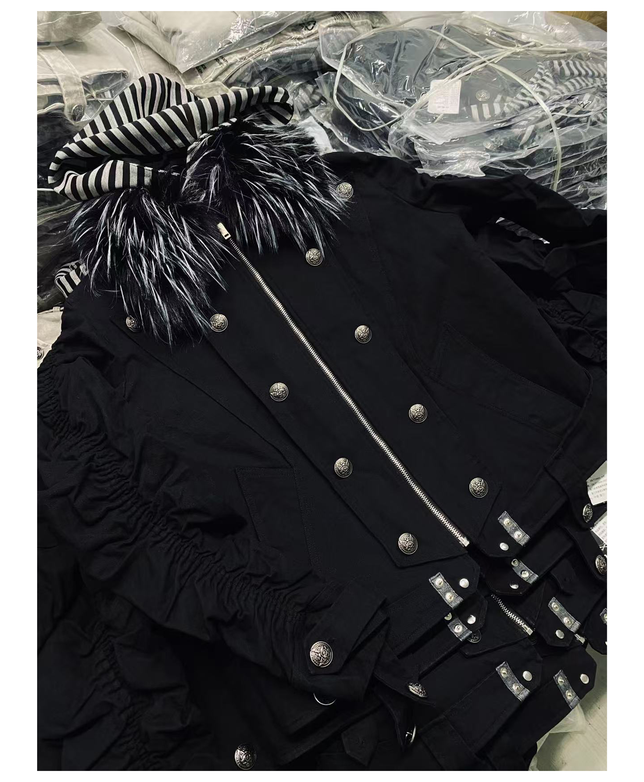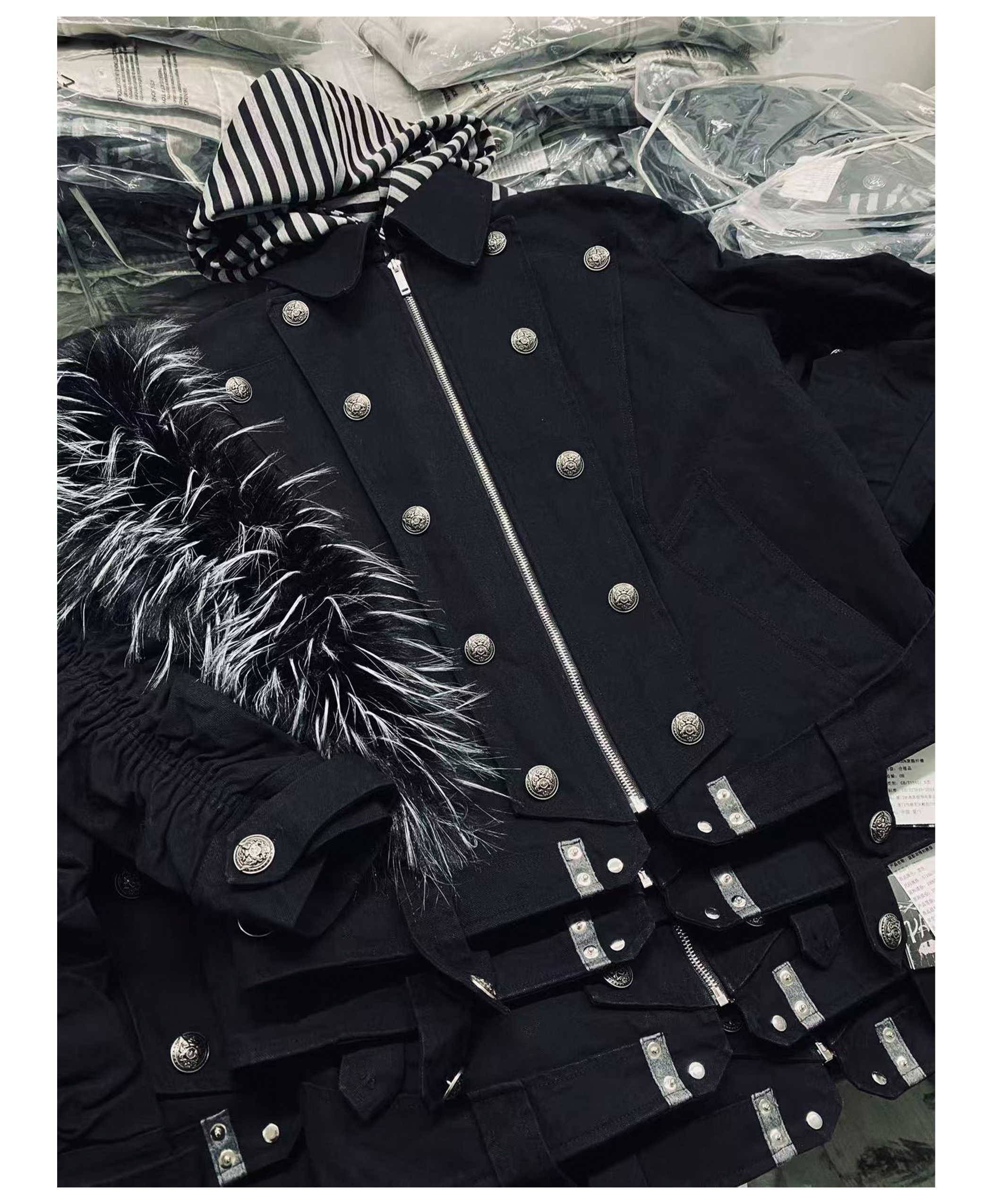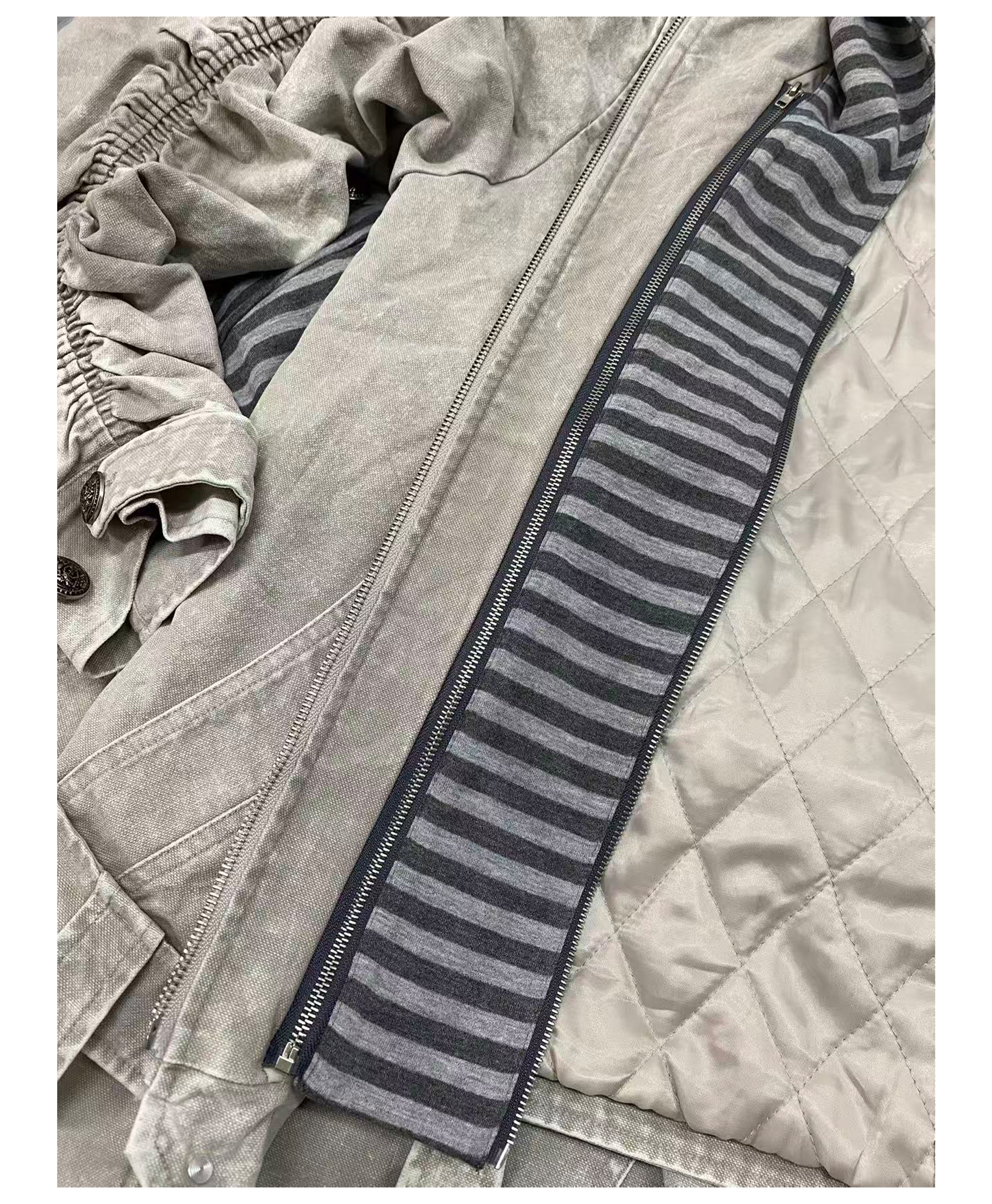 Paiki'Winter Mark''Silent Shadow' Detachable Fur Collar Canvas Double-Breasted Jacket Cotton Coat for Autumn and Winter, Unisex