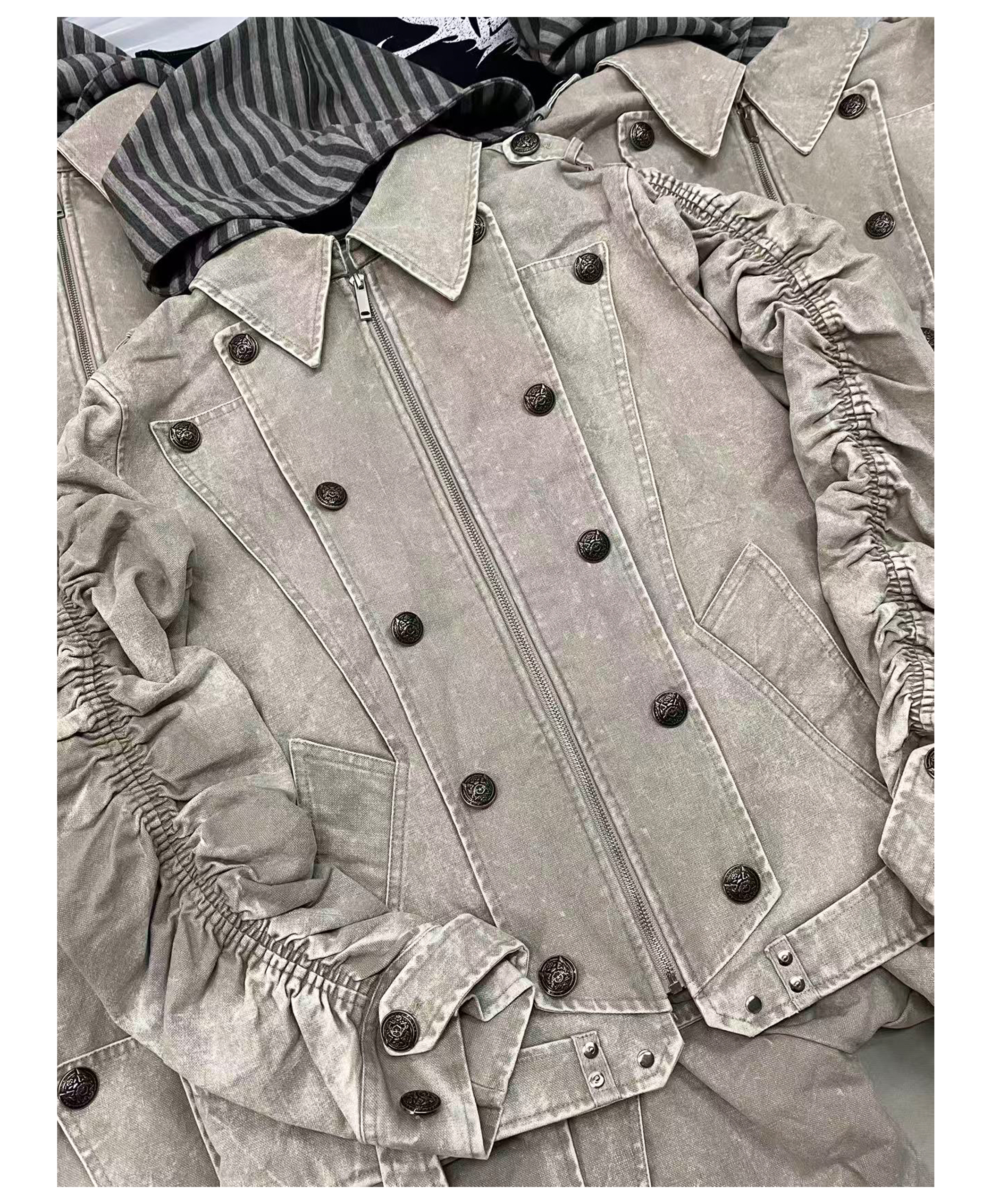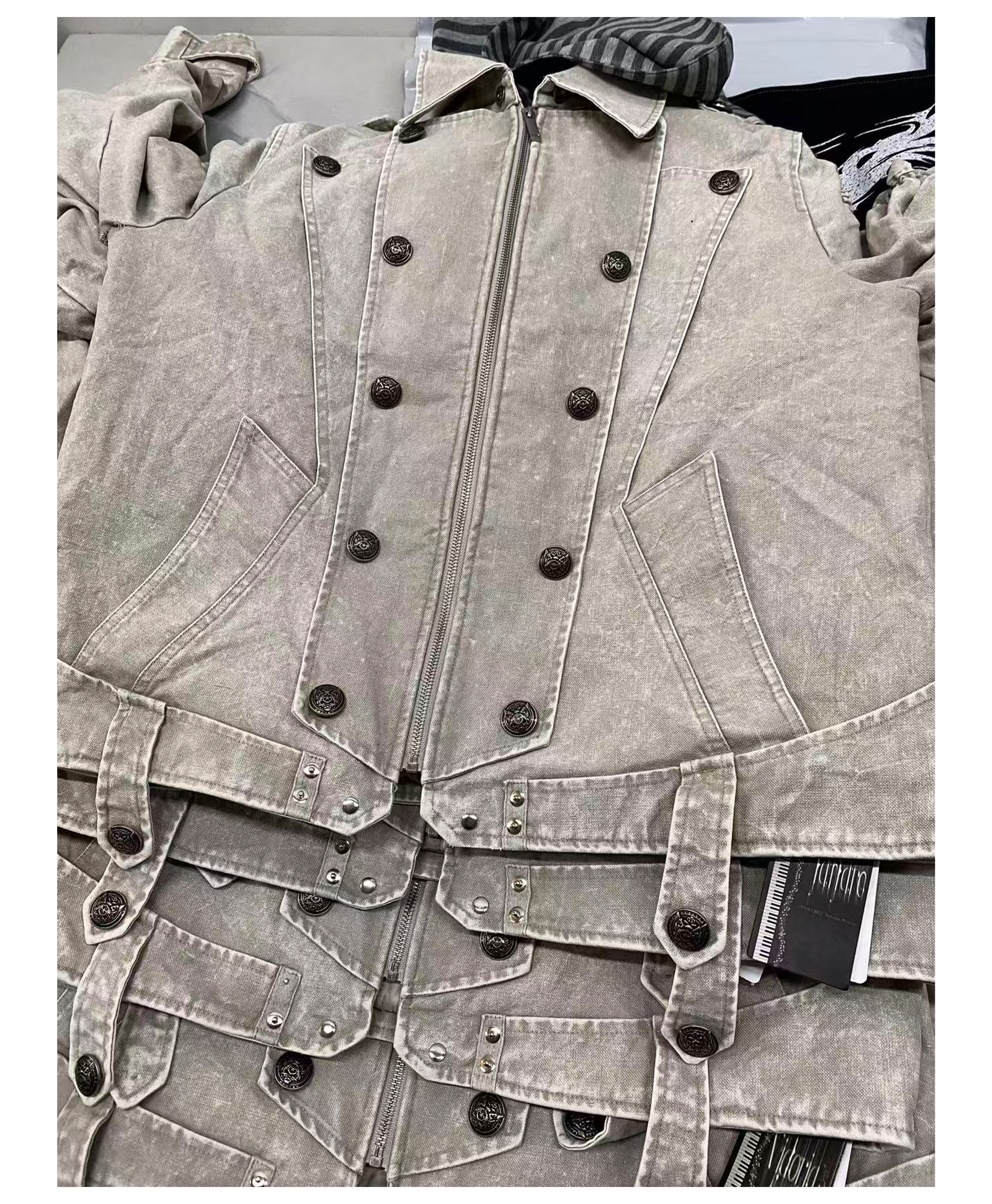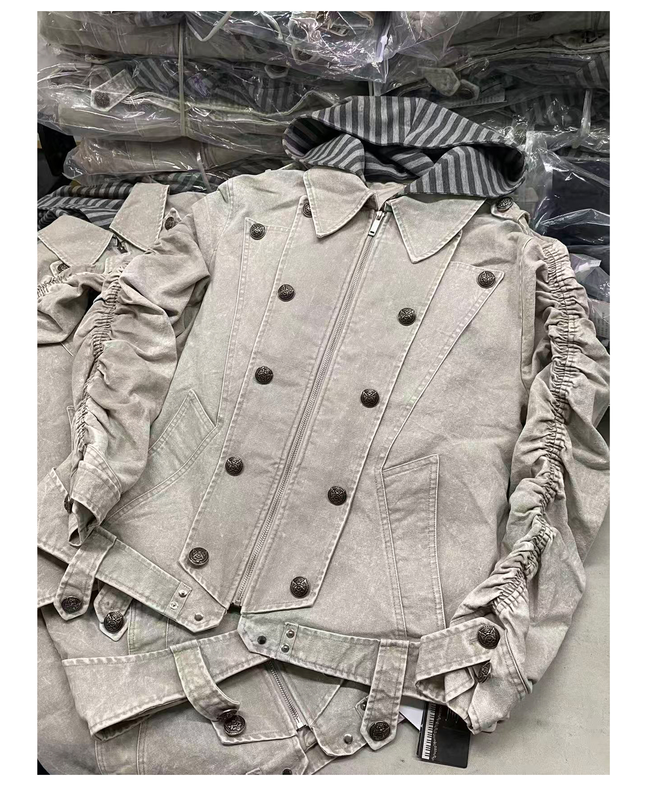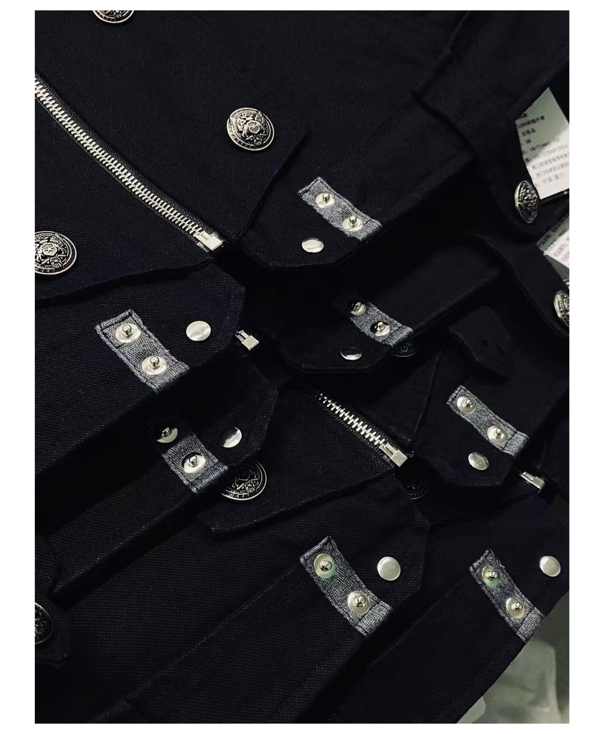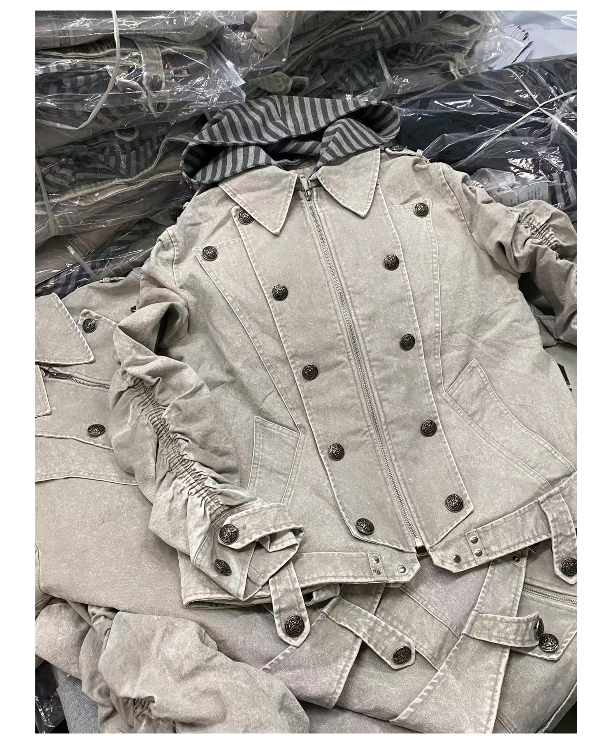 Paiki'Winter Mark''Silent Shadow' Detachable Fur Collar Canvas Double-Breasted Jacket Cotton Coat for Autumn and Winter, Unisex