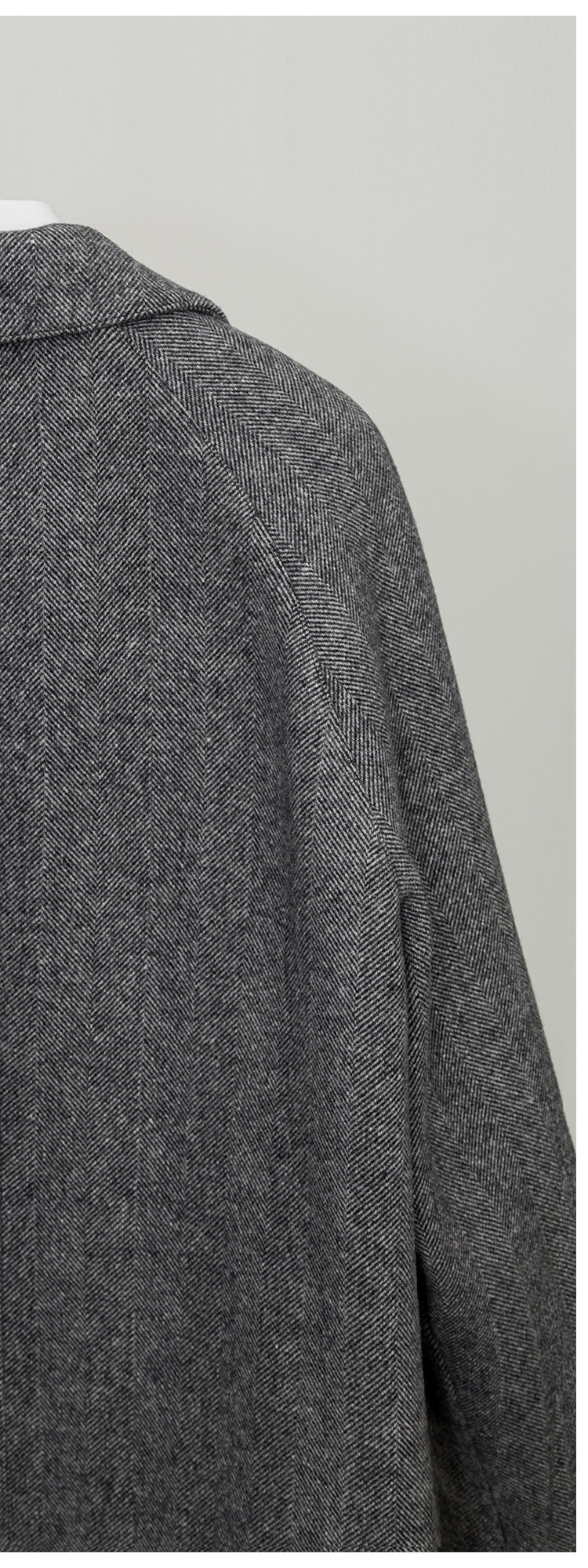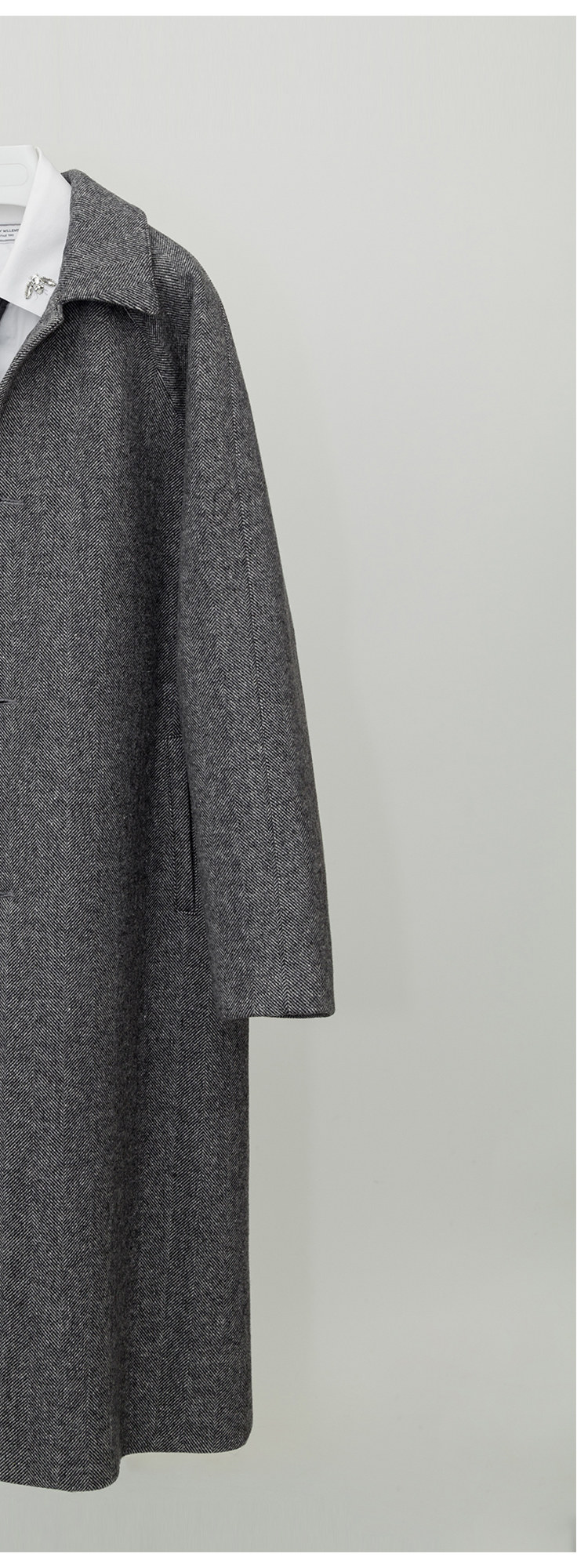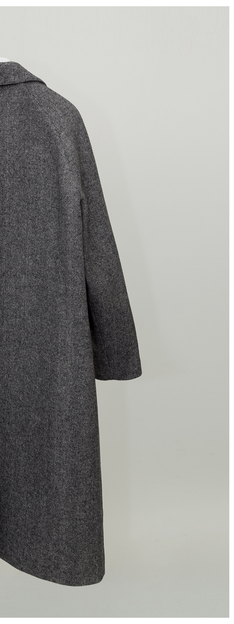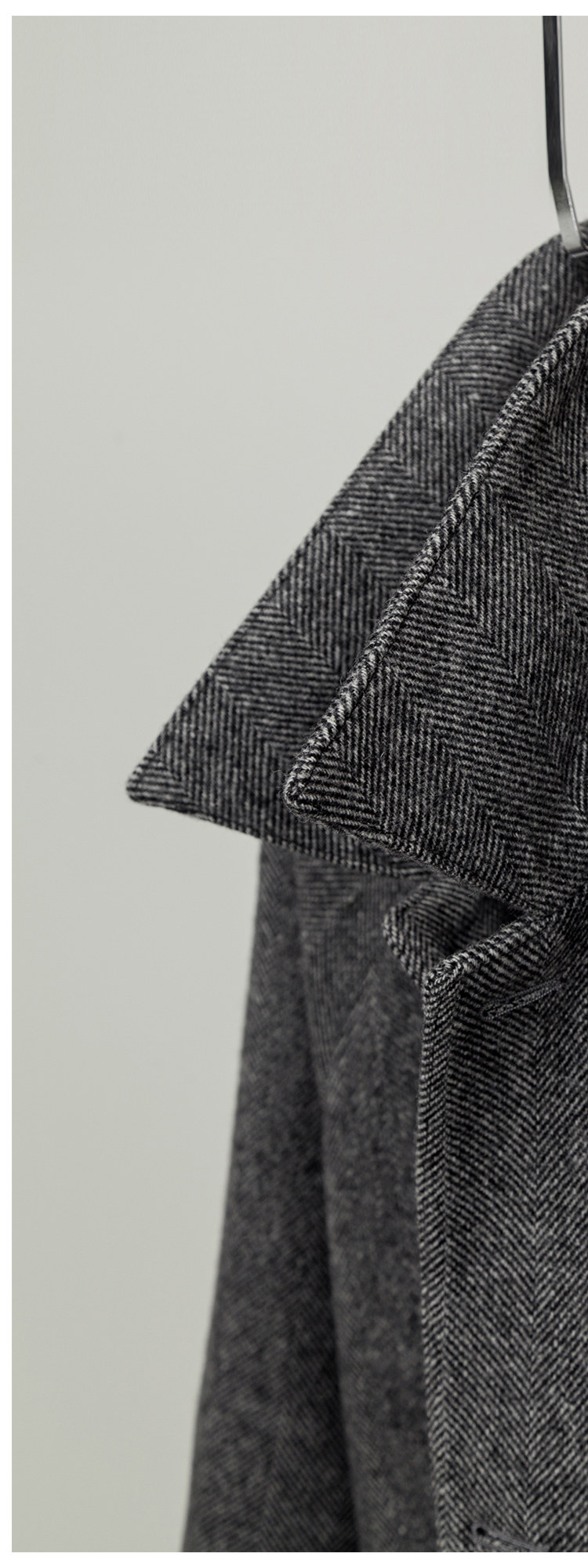 Dyne Studio Stereo Cut Classic Herringbone Tweed Cardigan Long Loose Wool Coat 8704