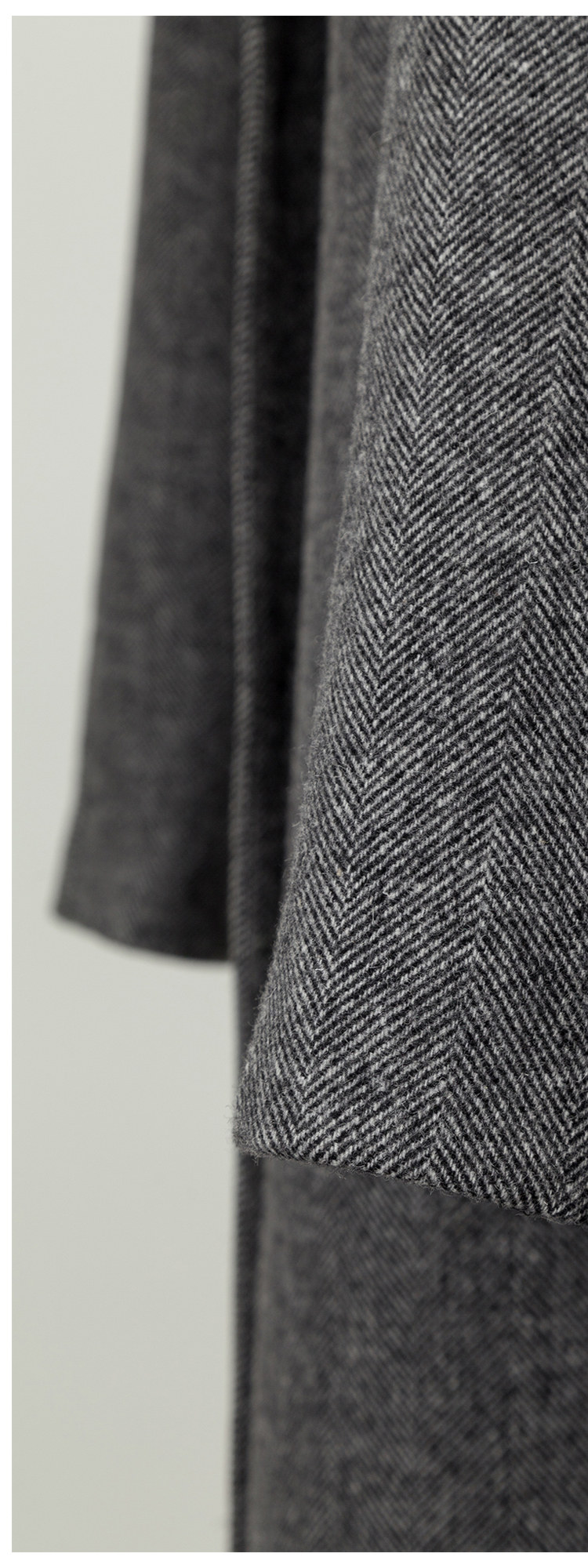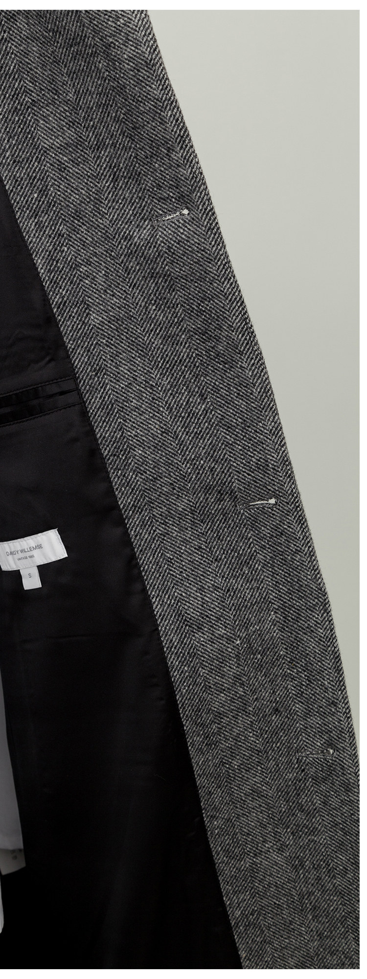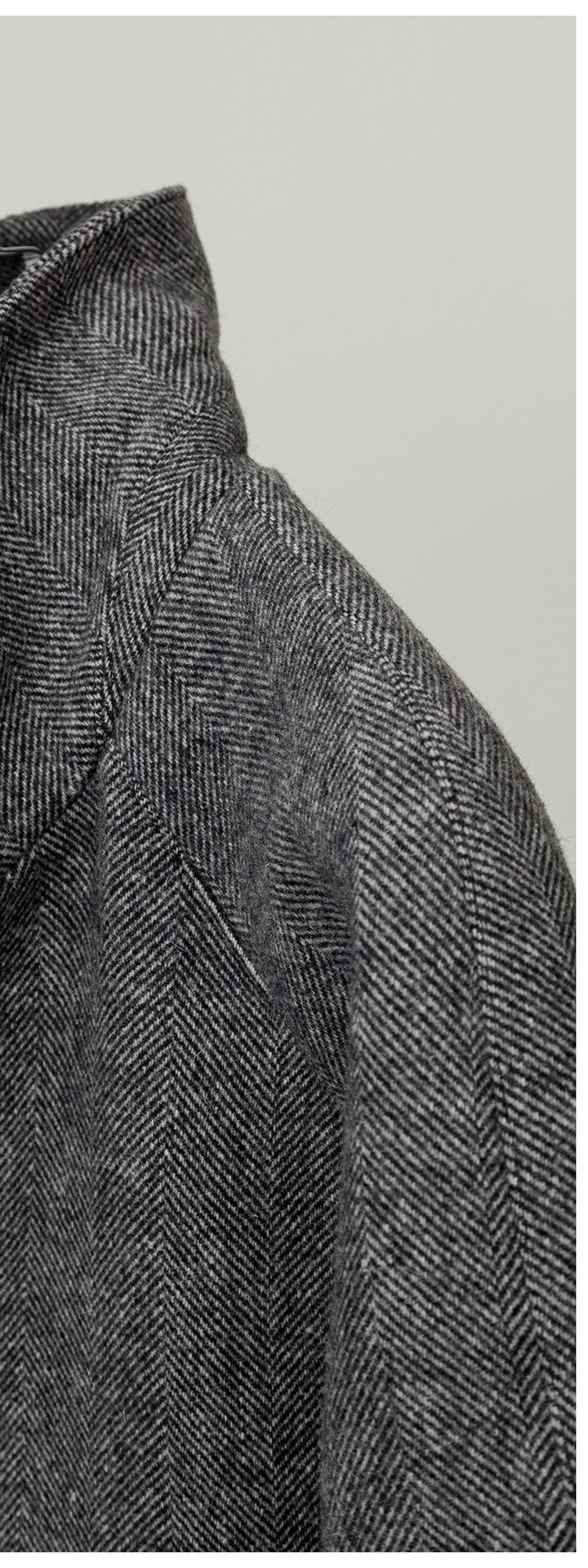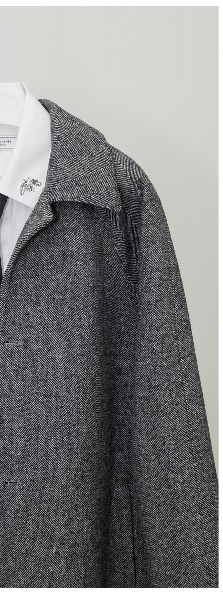 Dyne Studio Stereo Cut Classic Herringbone Tweed Cardigan Long Loose Wool Coat 8704