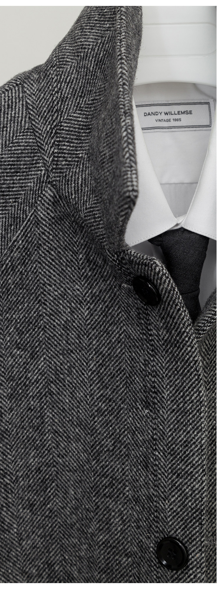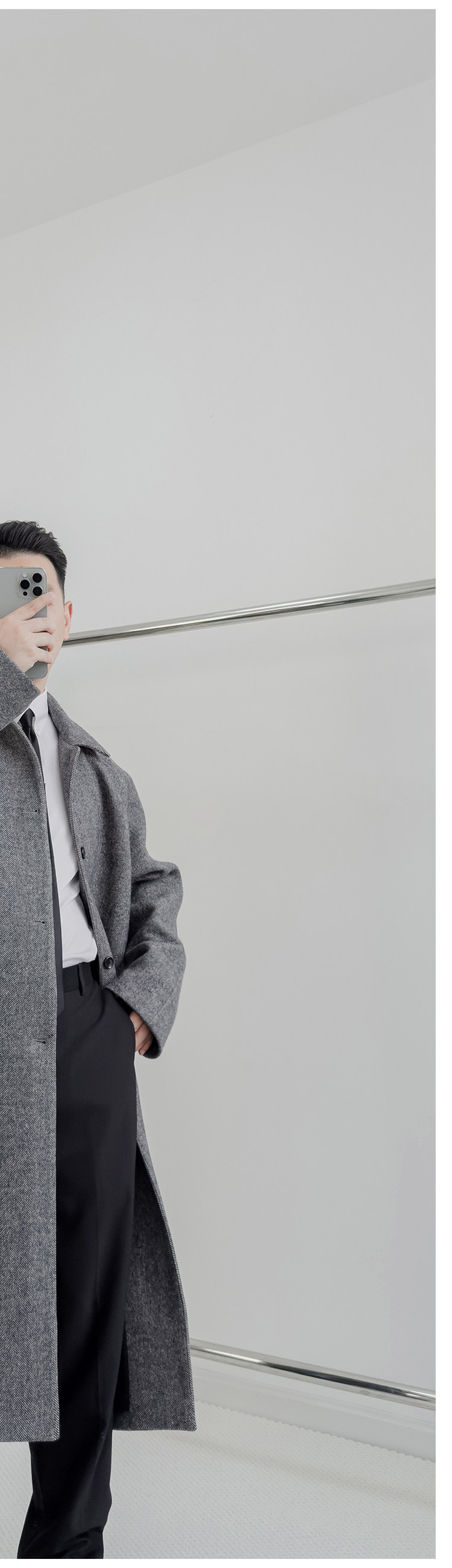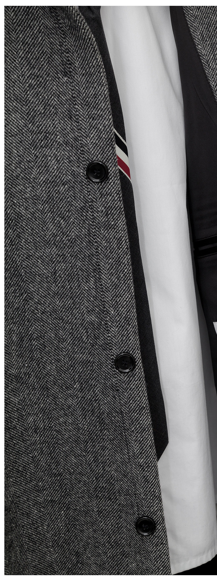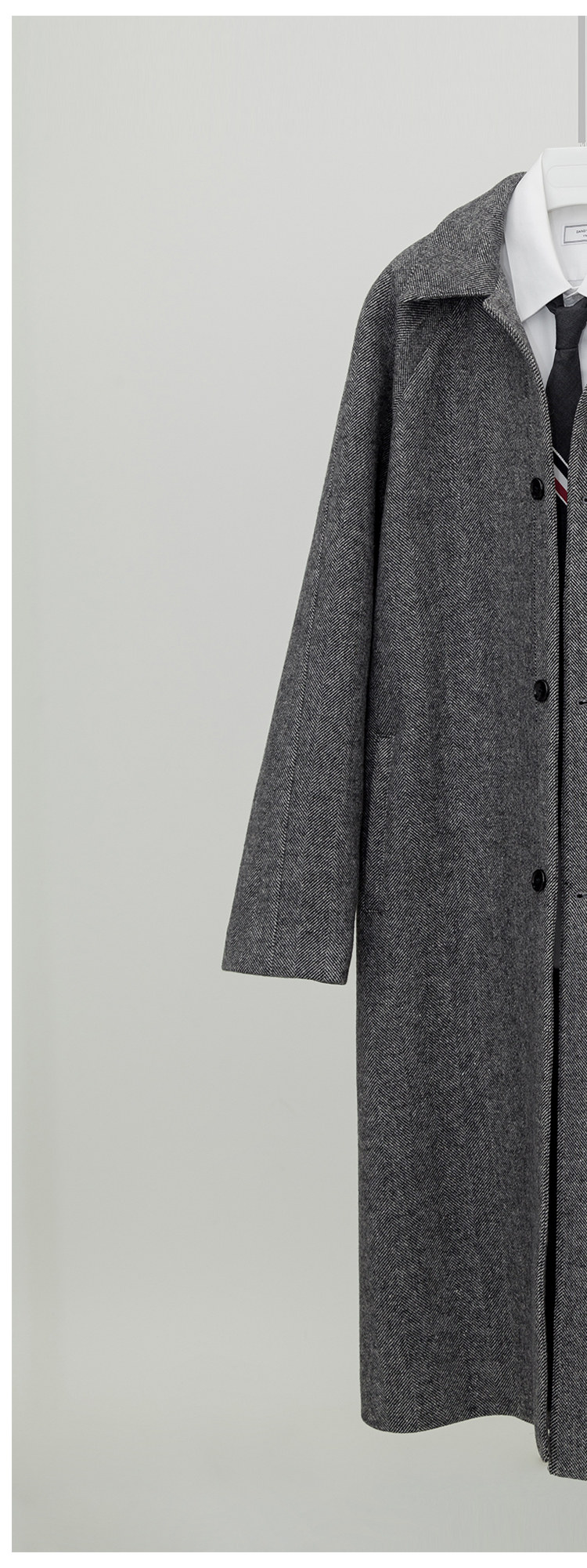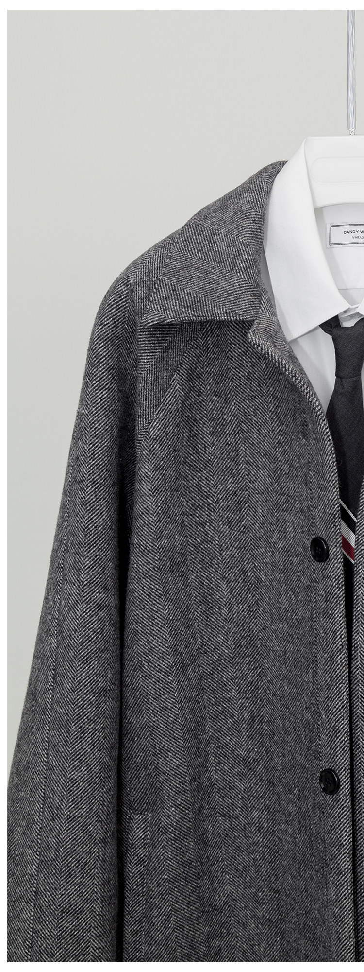 Dyne Studio Stereo Cut Classic Herringbone Tweed Cardigan Long Loose Wool Coat 8704