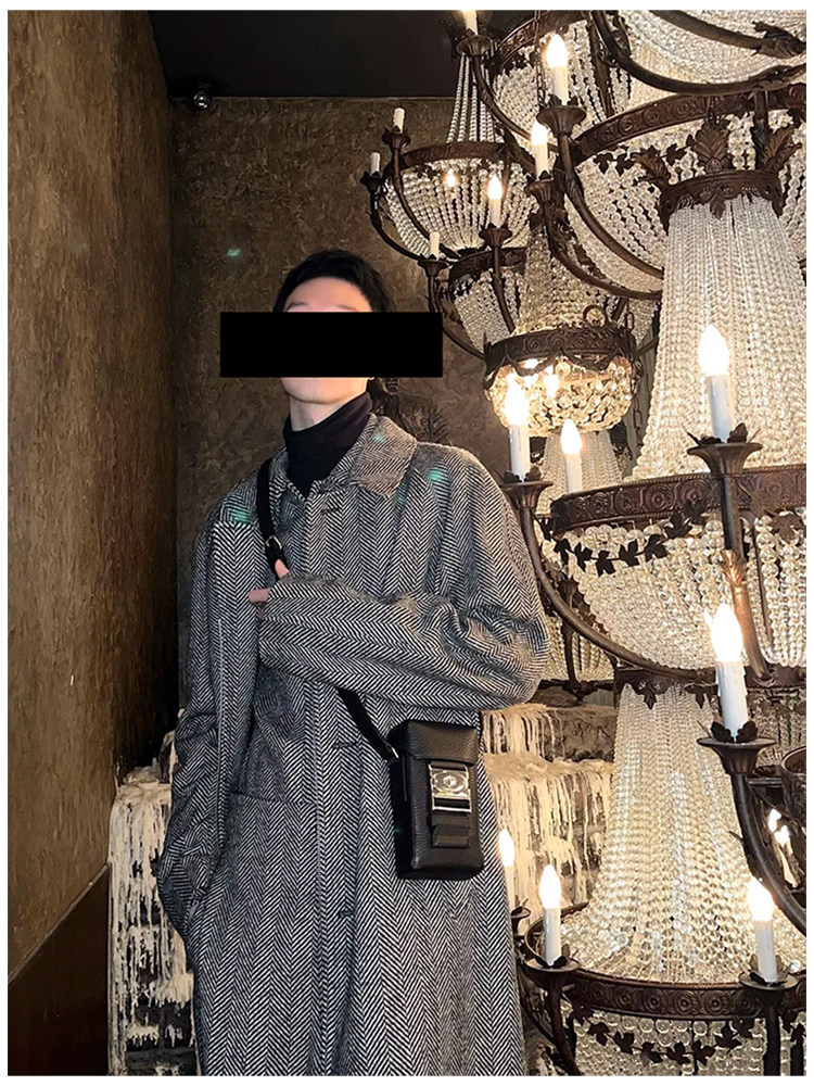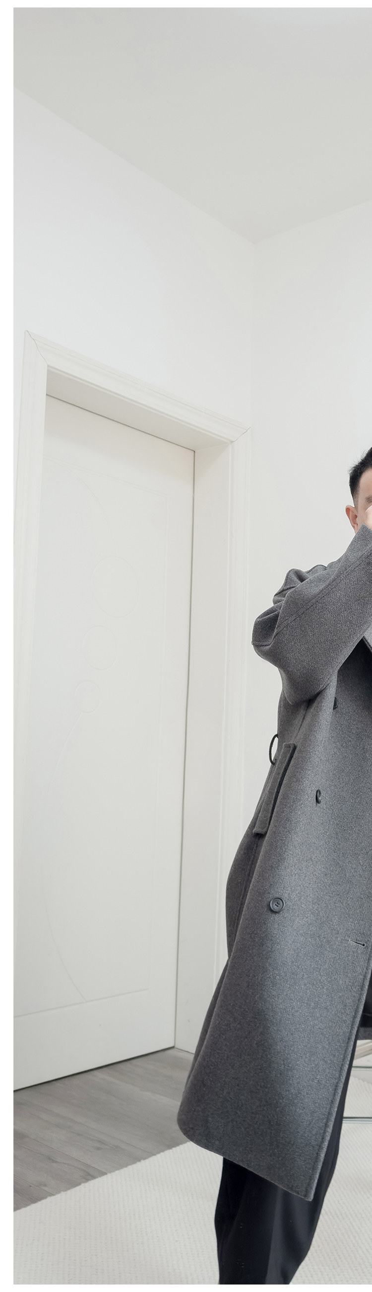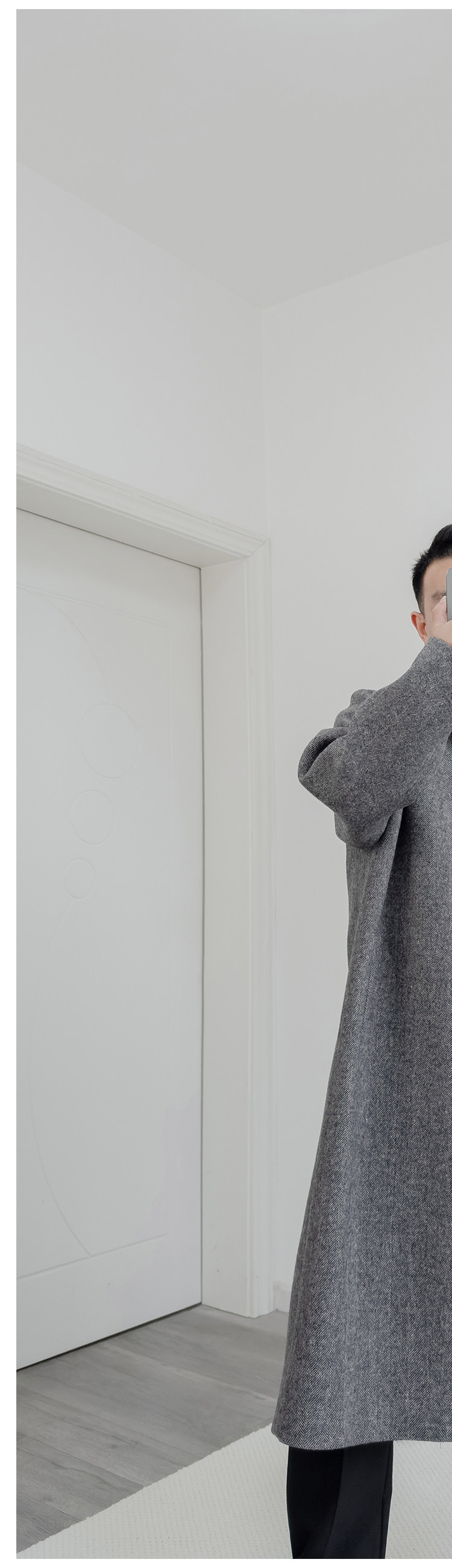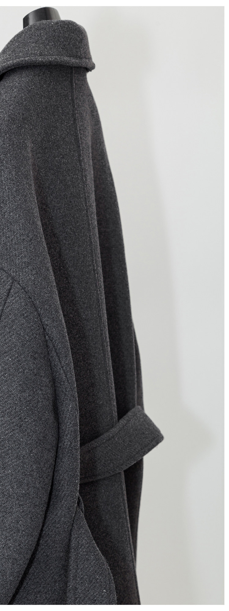 Dyne Studio Stereo Cut Classic Herringbone Tweed Cardigan Long Loose Wool Coat 8704