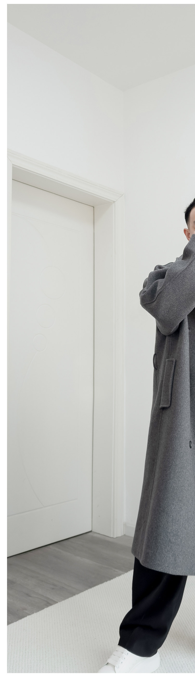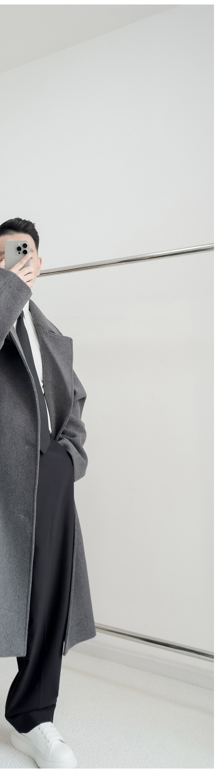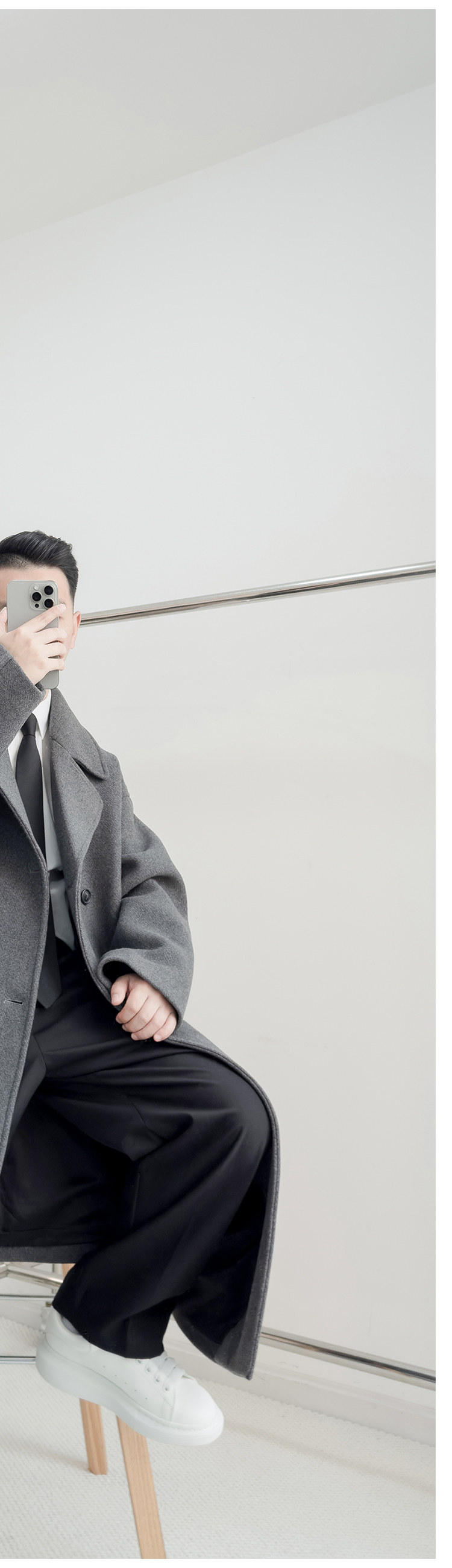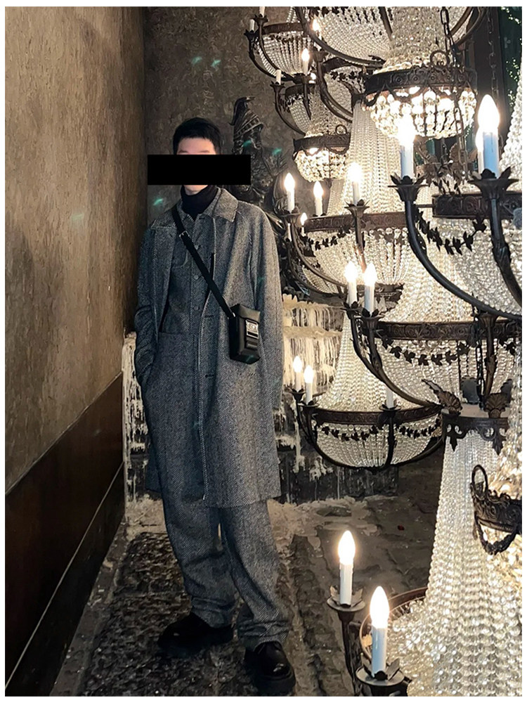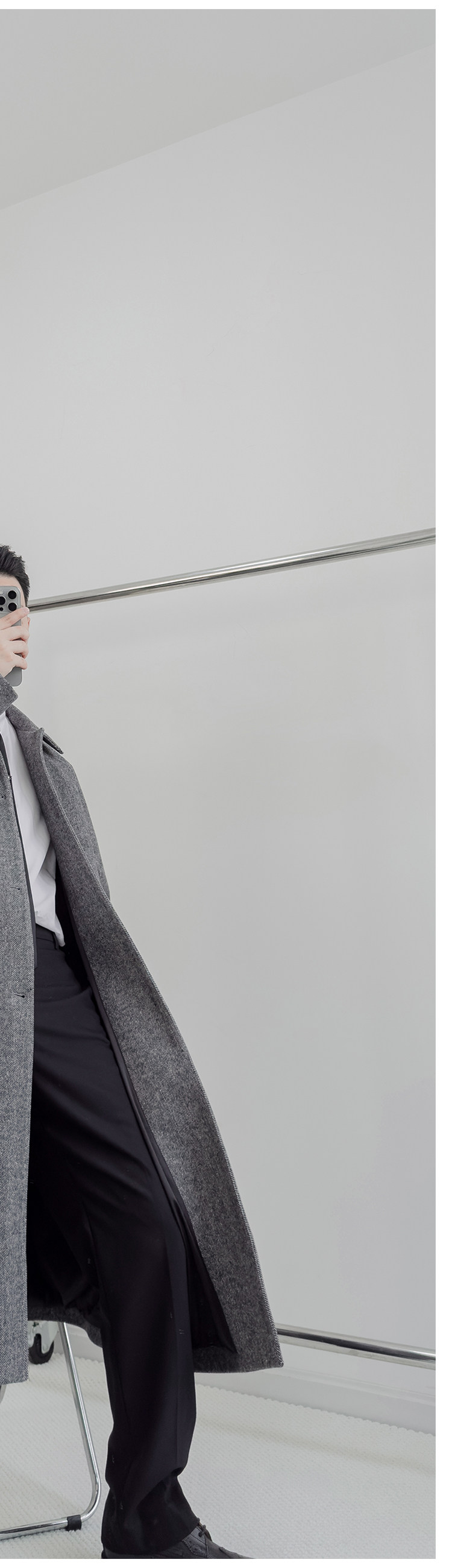 Dyne Studio Stereo Cut Classic Herringbone Tweed Cardigan Long Loose Wool Coat 8704