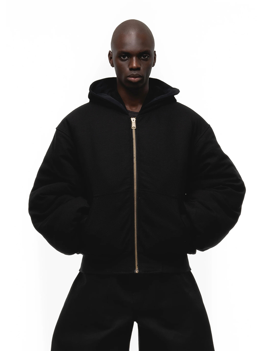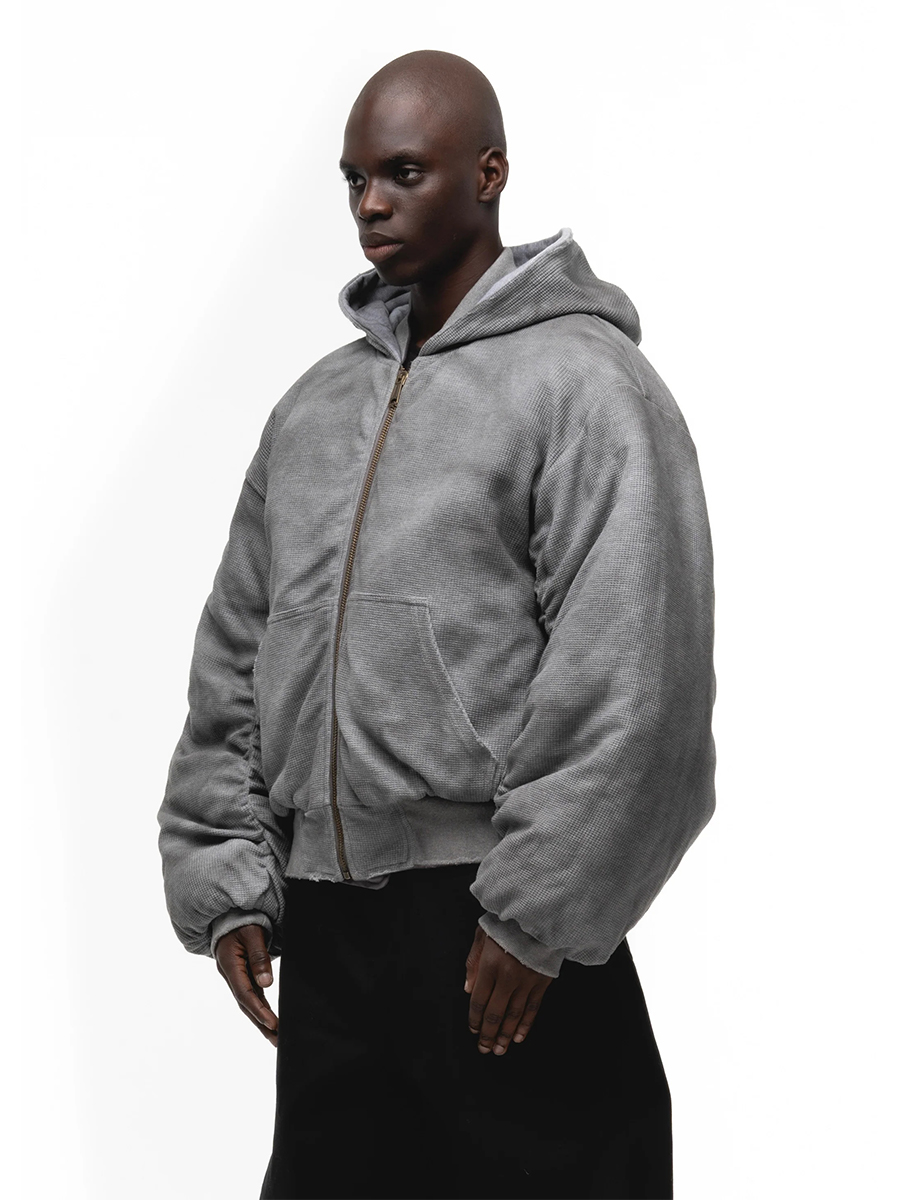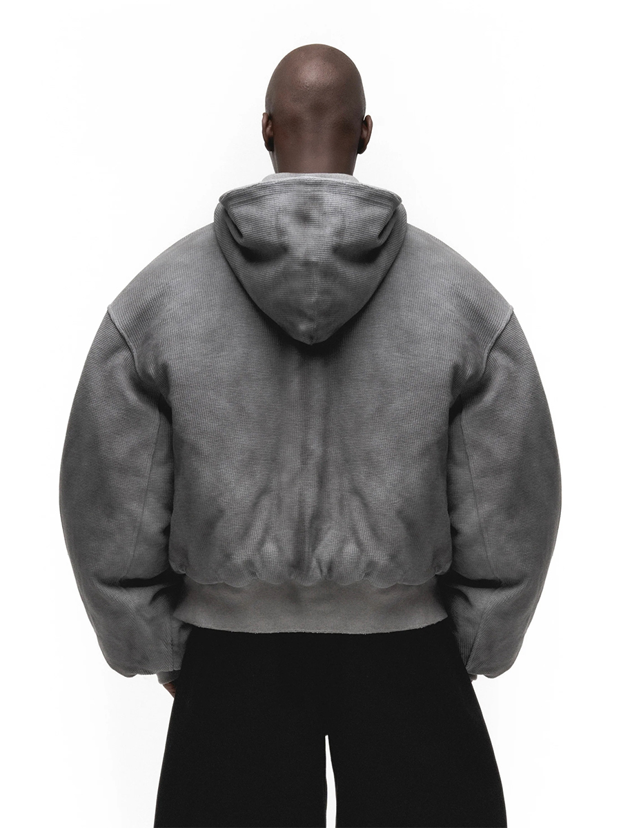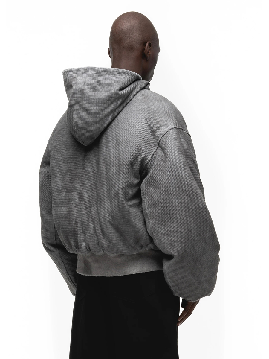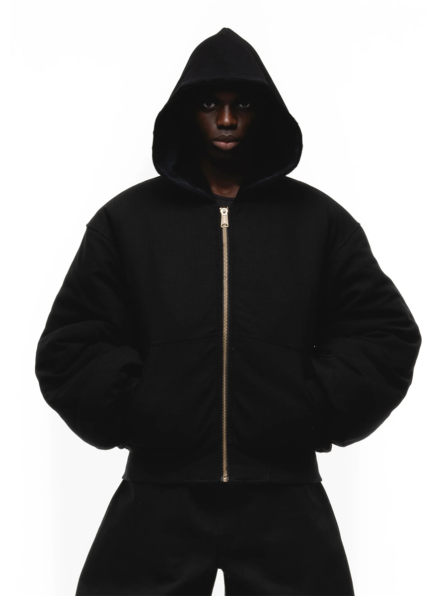 No Faith Studios Waffle Hooded Reversible Jacket Heavy-Duty Washed Vintage Bomber Cotton Jacket