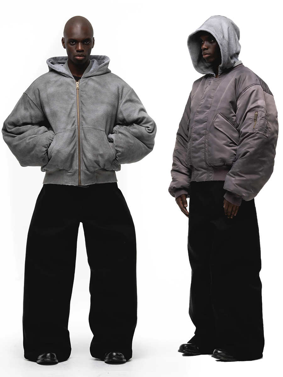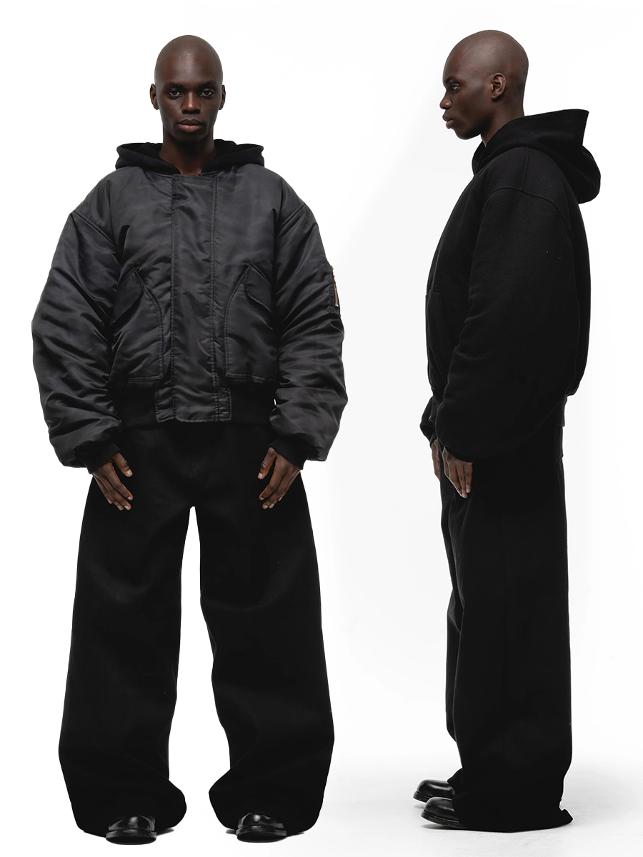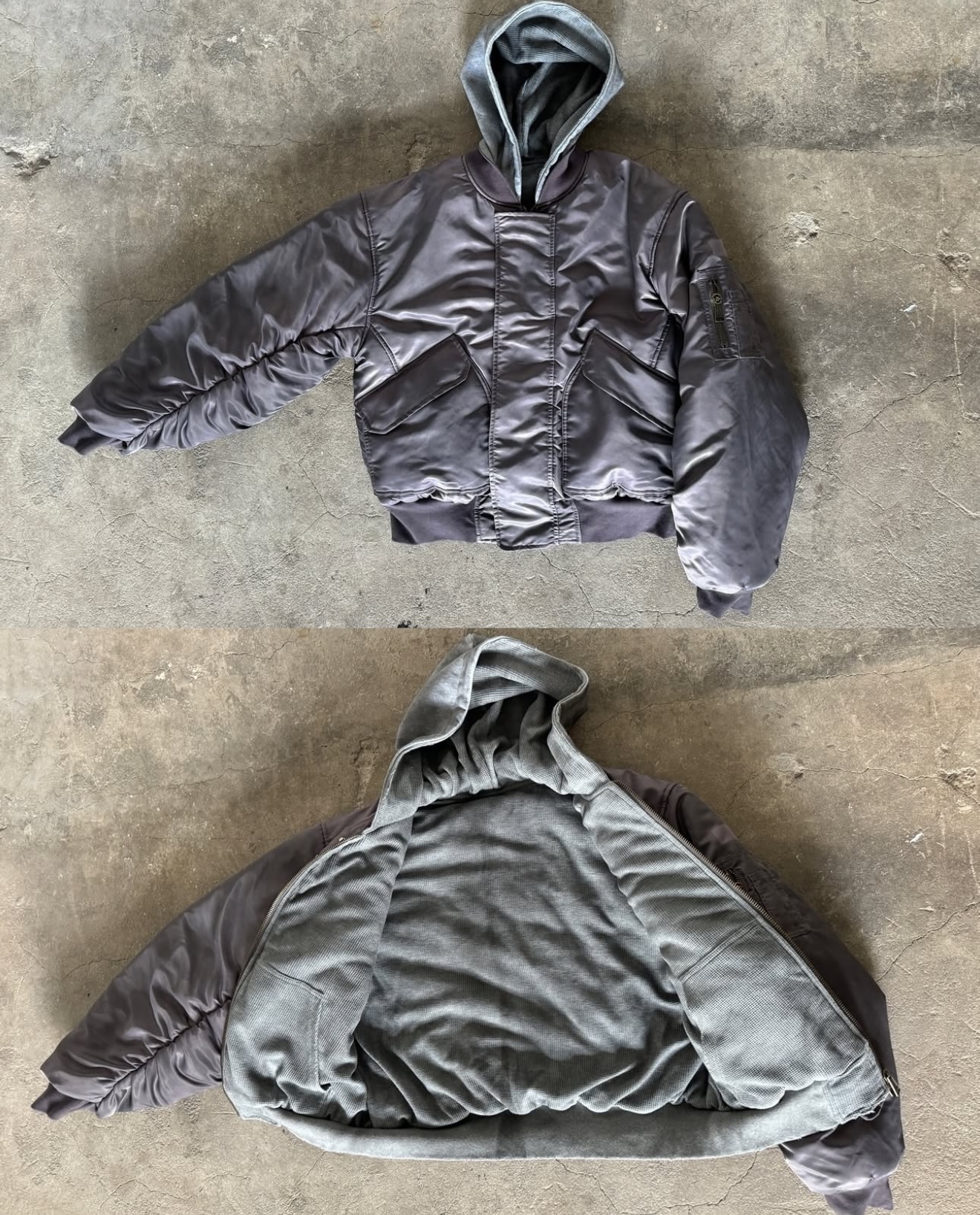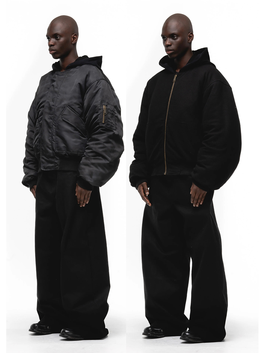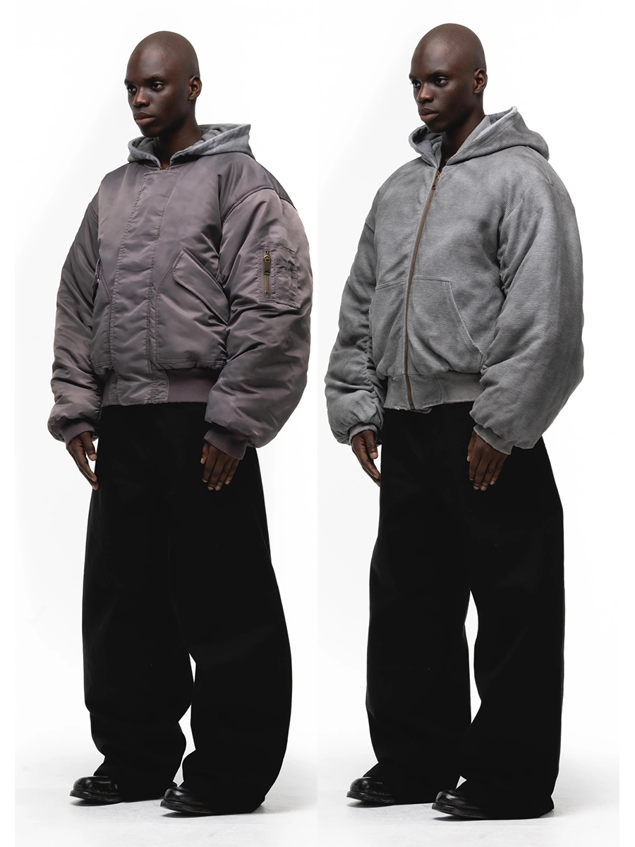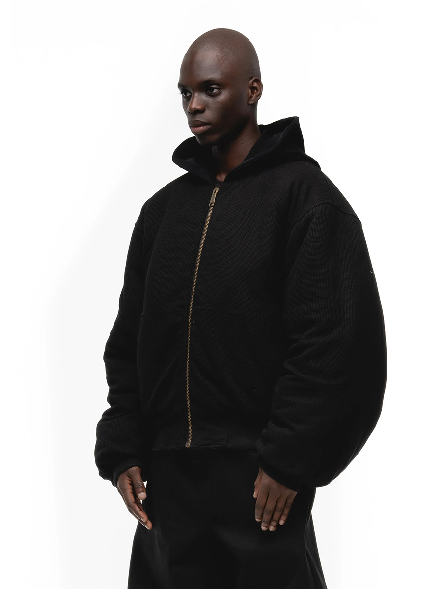 No Faith Studios Waffle Hooded Reversible Jacket Heavy-Duty Washed Vintage Bomber Cotton Jacket