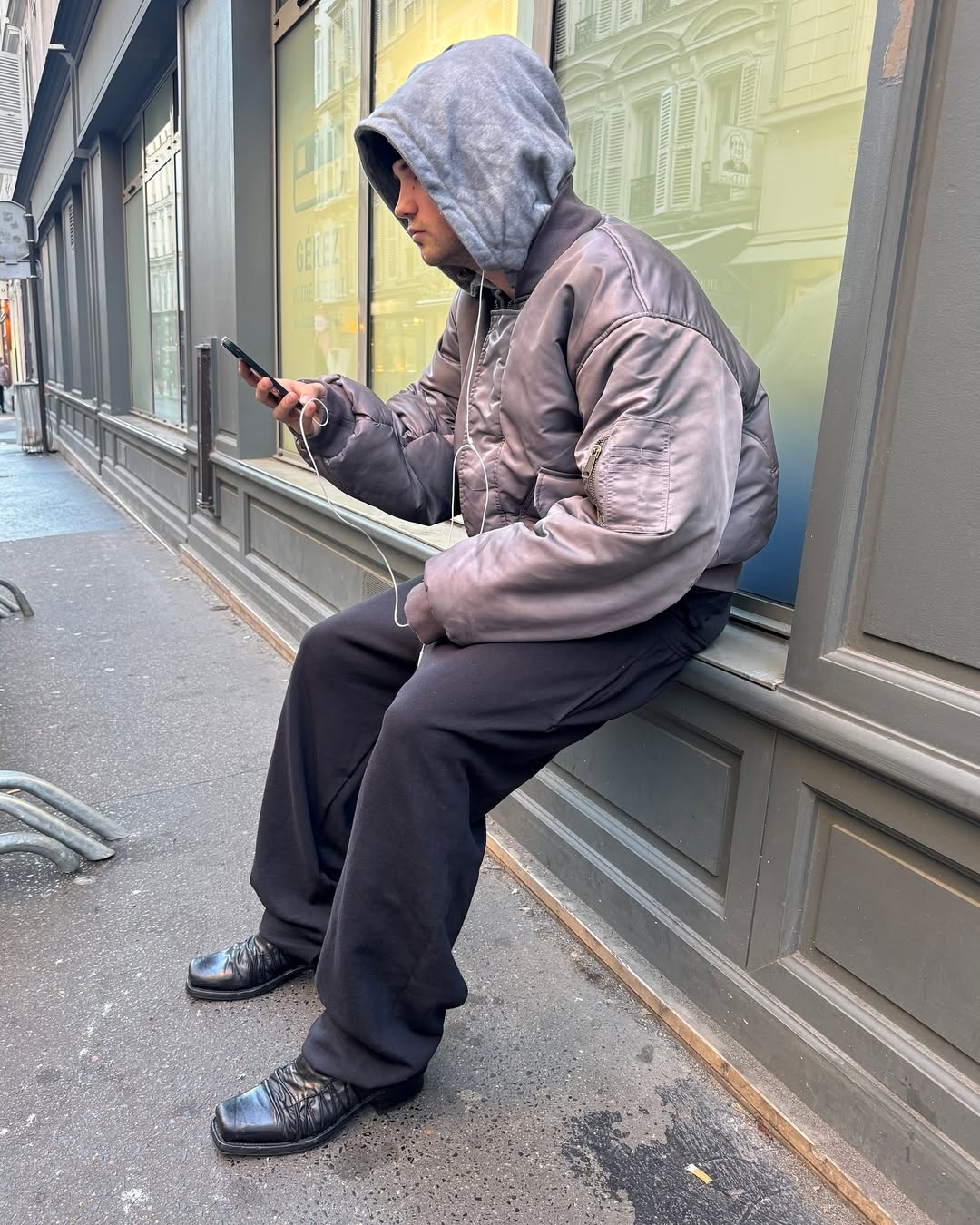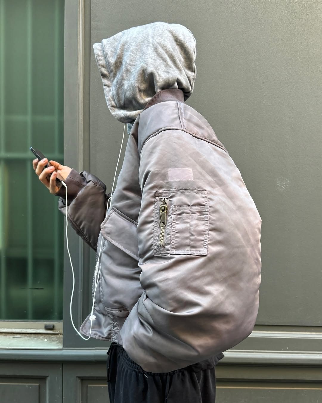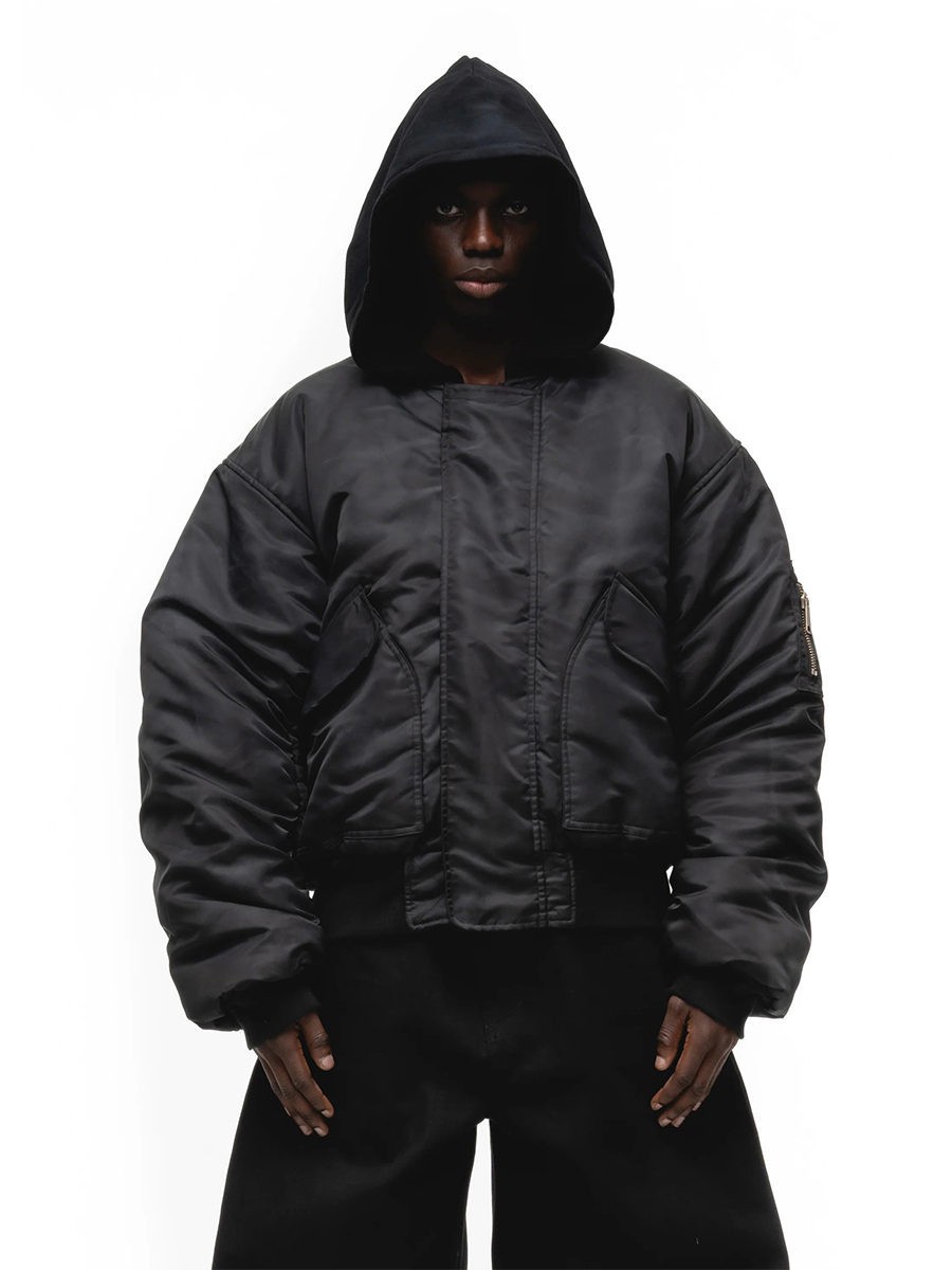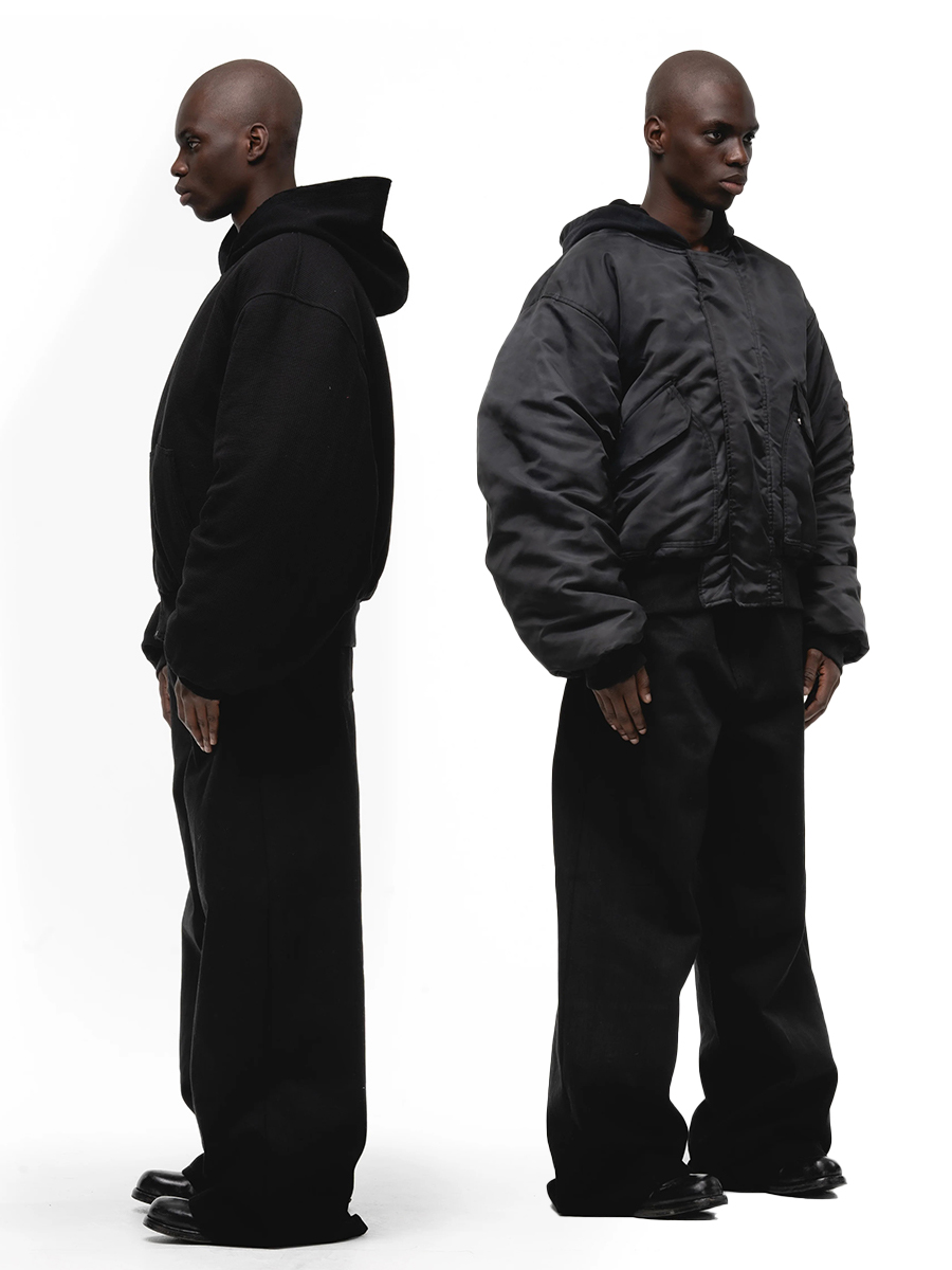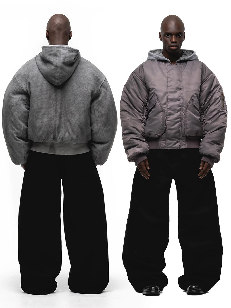 No Faith Studios Waffle Hooded Reversible Jacket Heavy-Duty Washed Vintage Bomber Cotton Jacket
