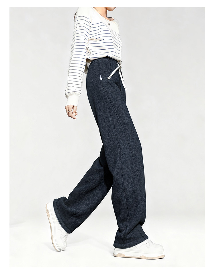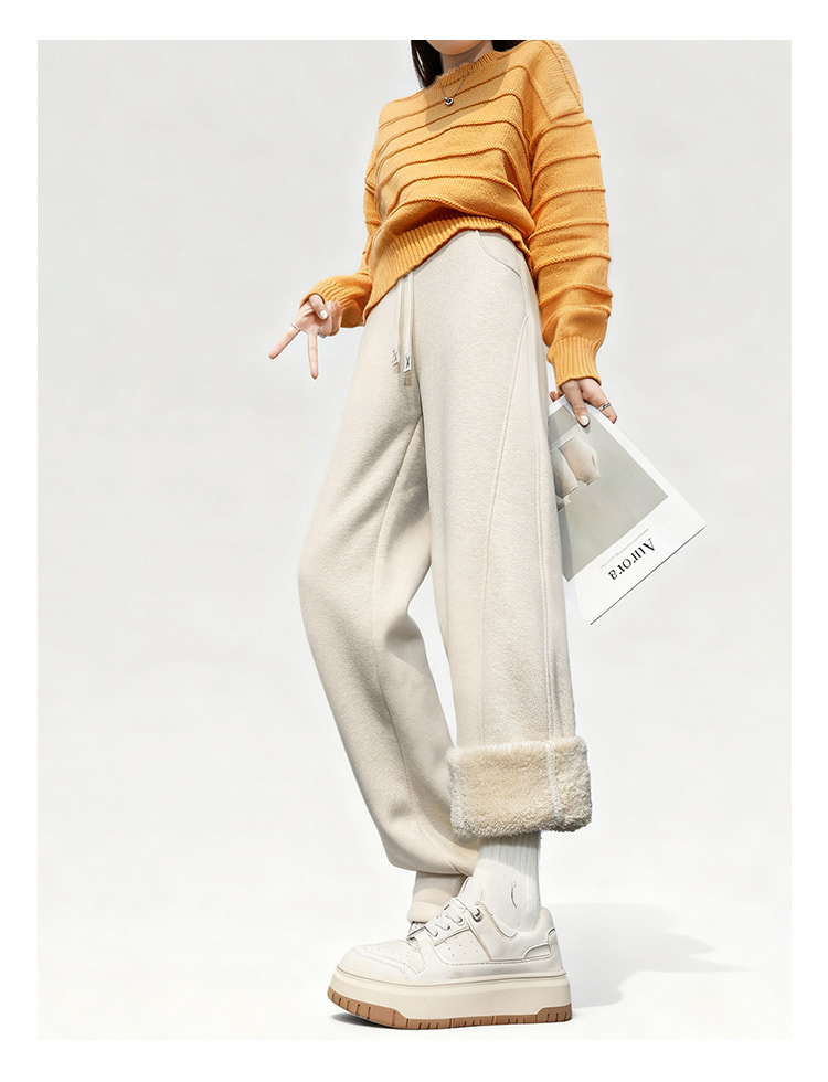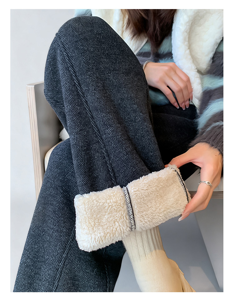 Winter Fleece-Lined Pants for Women, Lamb Wool Outerwear Cotton Pants, Thickened Woolen Sweatpants, Extra-Long Wide-Leg Pants for Tall Women
