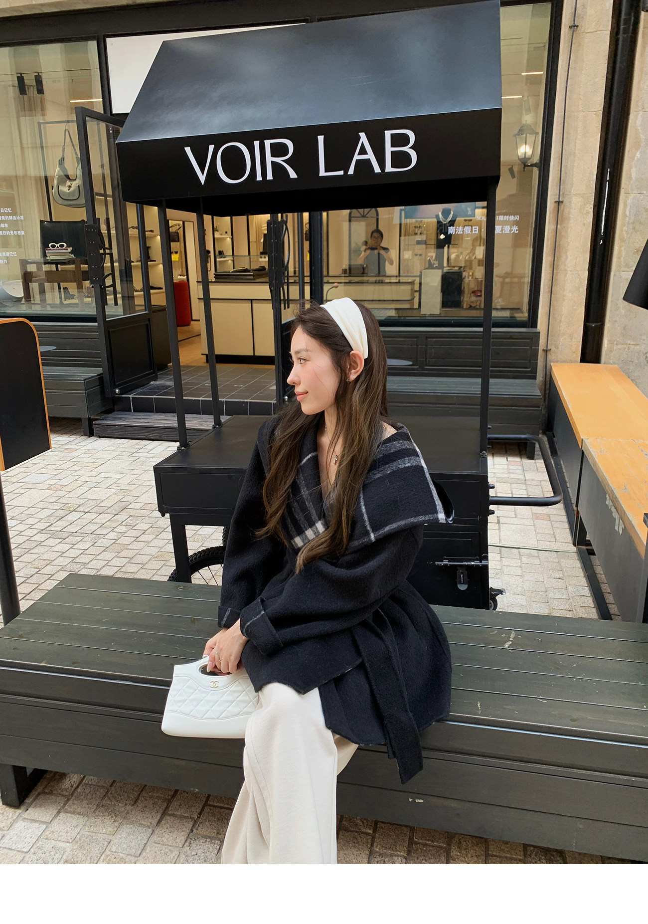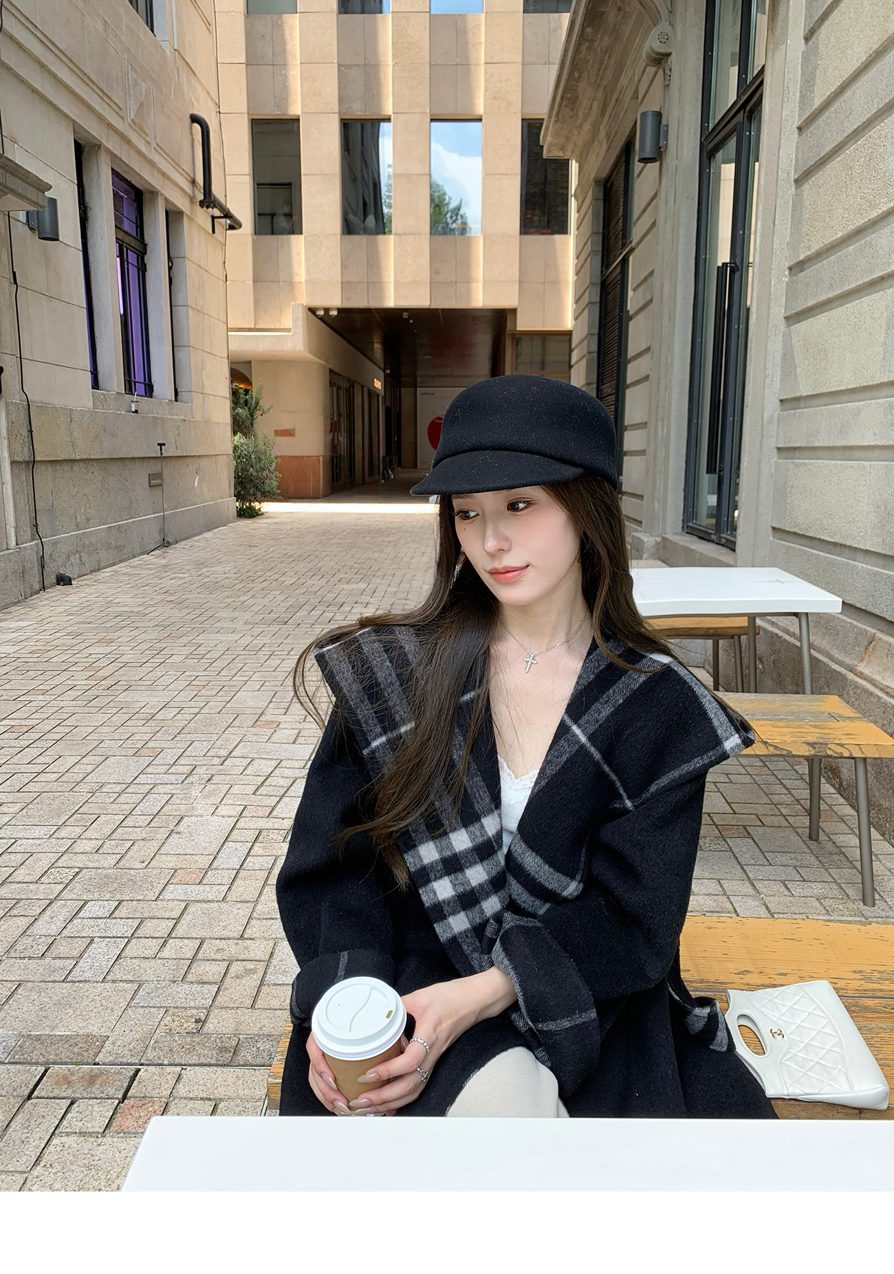 Hhyii Wandering Paris Retro Plaid Cape Wool Coat Women's Autumn and Winter High-End Shawl Double-Sided Woolen Coat