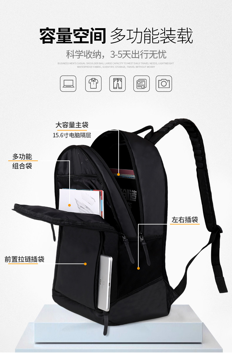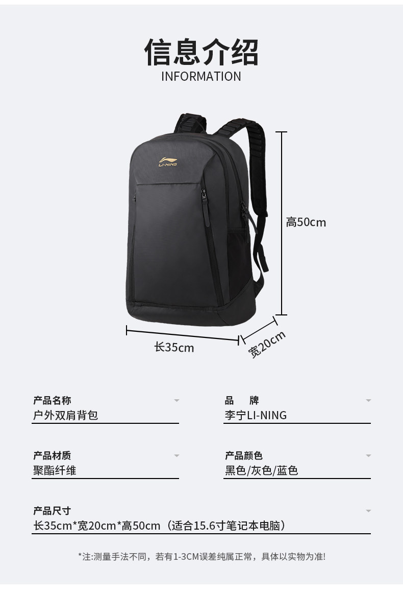 Li Ning Backpack Men's Commuter Computer Bag Outdoor Sports Travel Backpack Waterproof Large Capacity Student School Bag Women