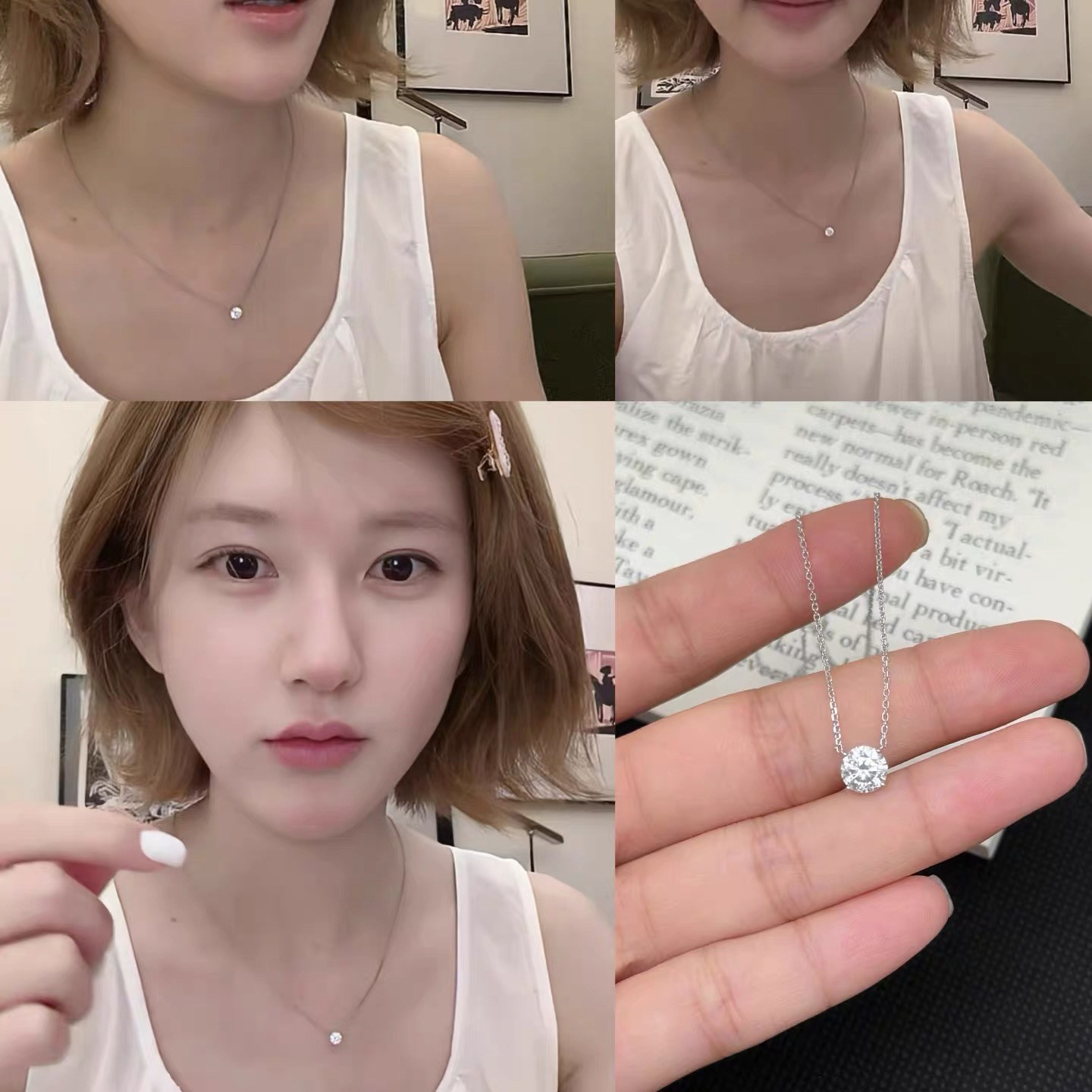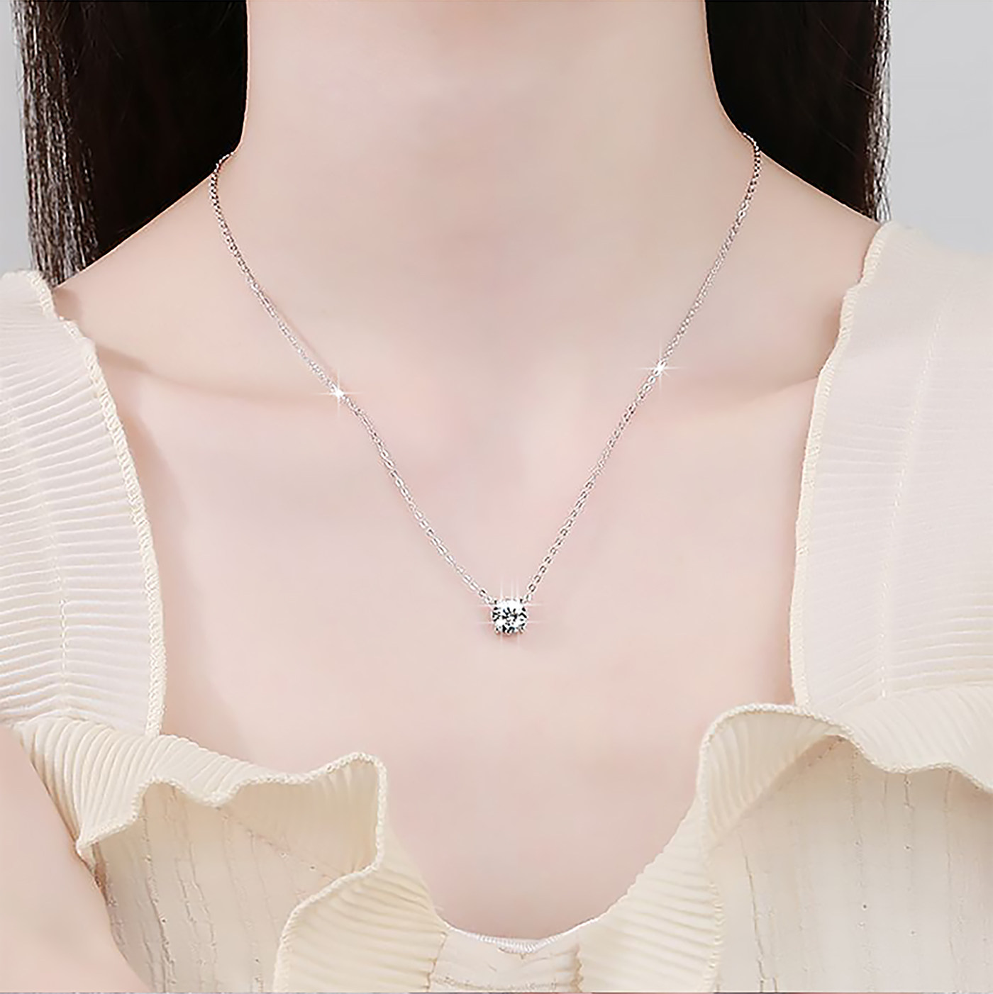 Super Shiny Moissanite Nose Ring Necklace, 18K Gold Four-Prong Non-Fading Lab-Grown Diamond Choker, Light Luxury High-End Feel, Single Diamond