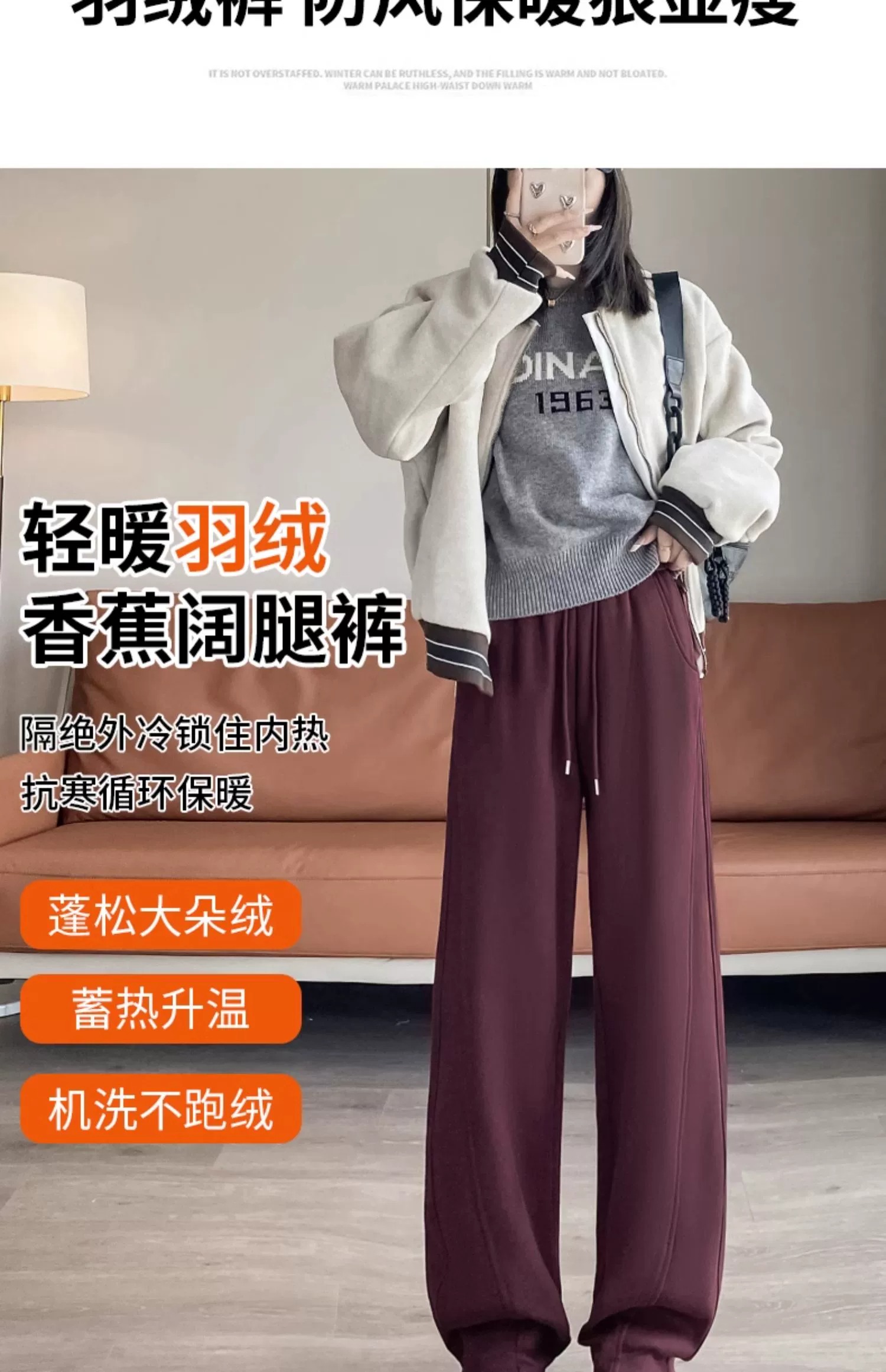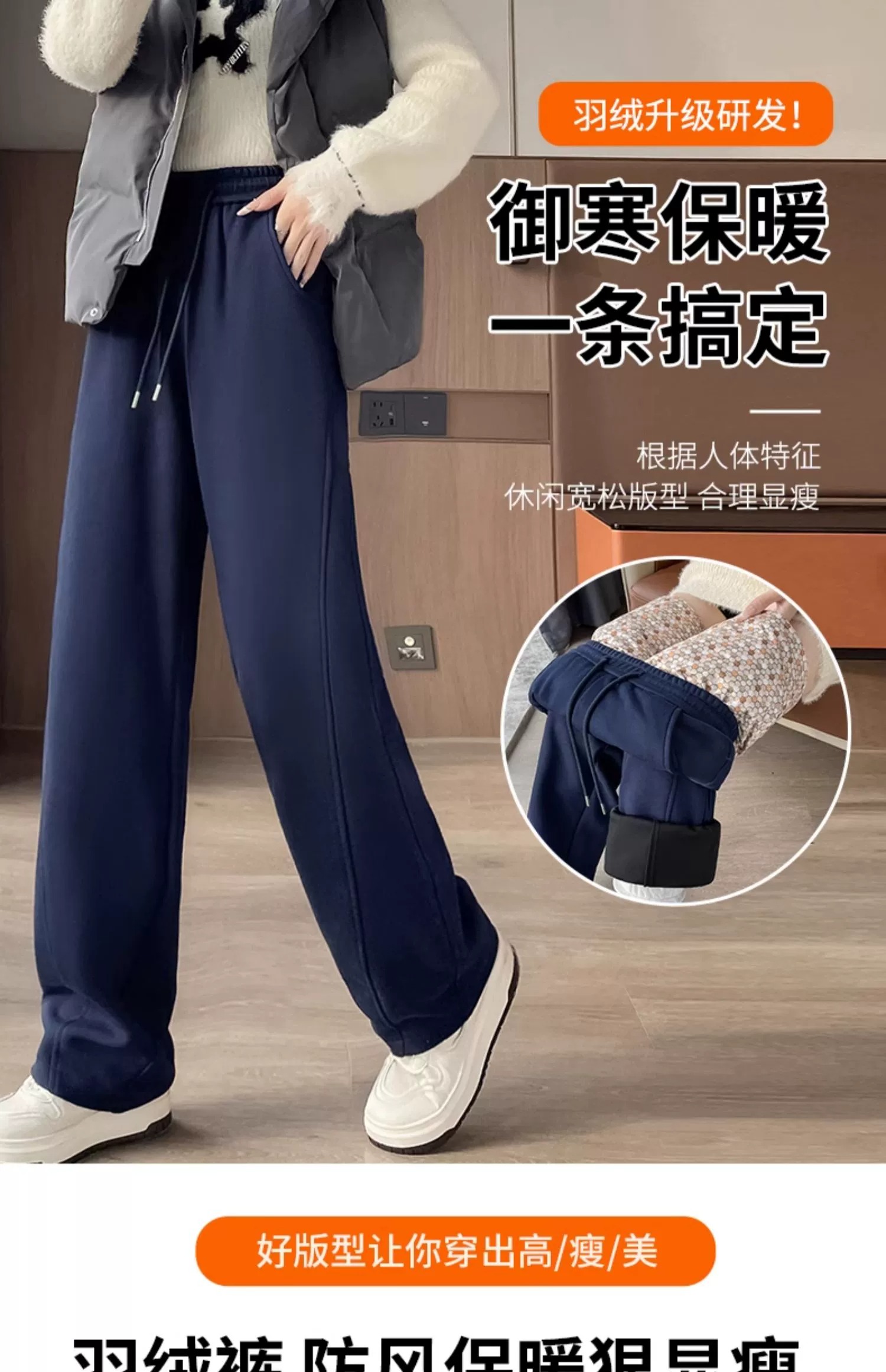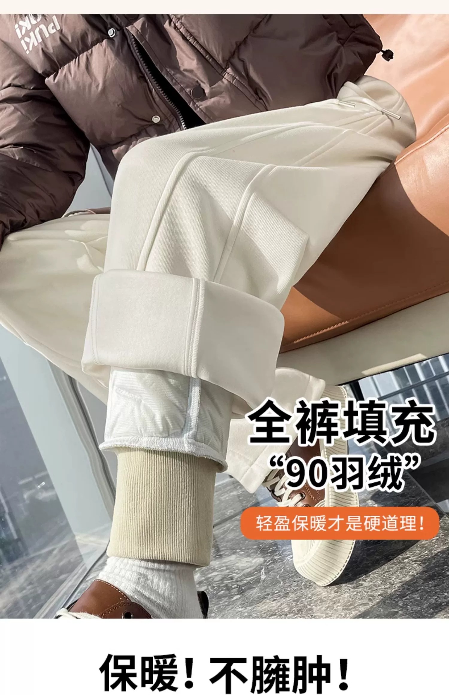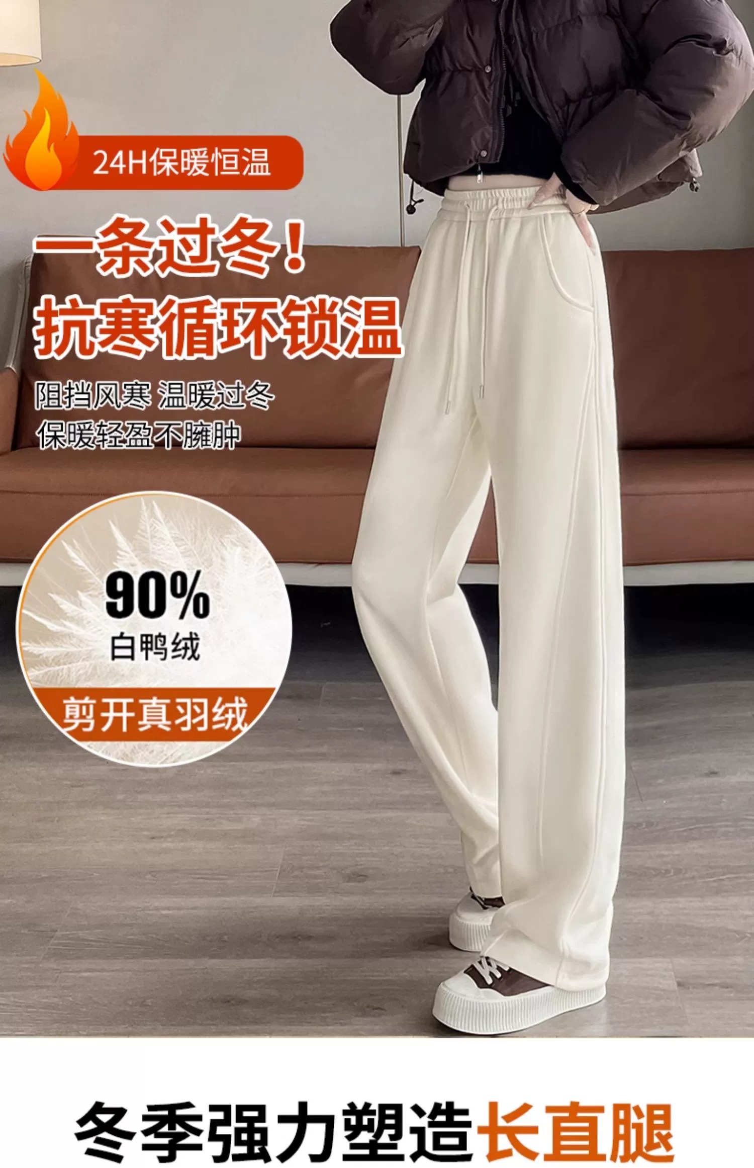 White Duck down Wide-Leg down Pants for Women, Winter Outerwear, 2025 New Thickened and Warm Narrow-Fit Cotton Pants for Extreme Cold in Northeast China