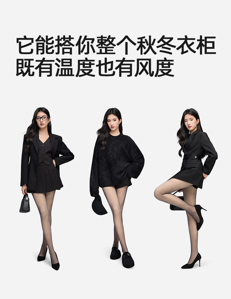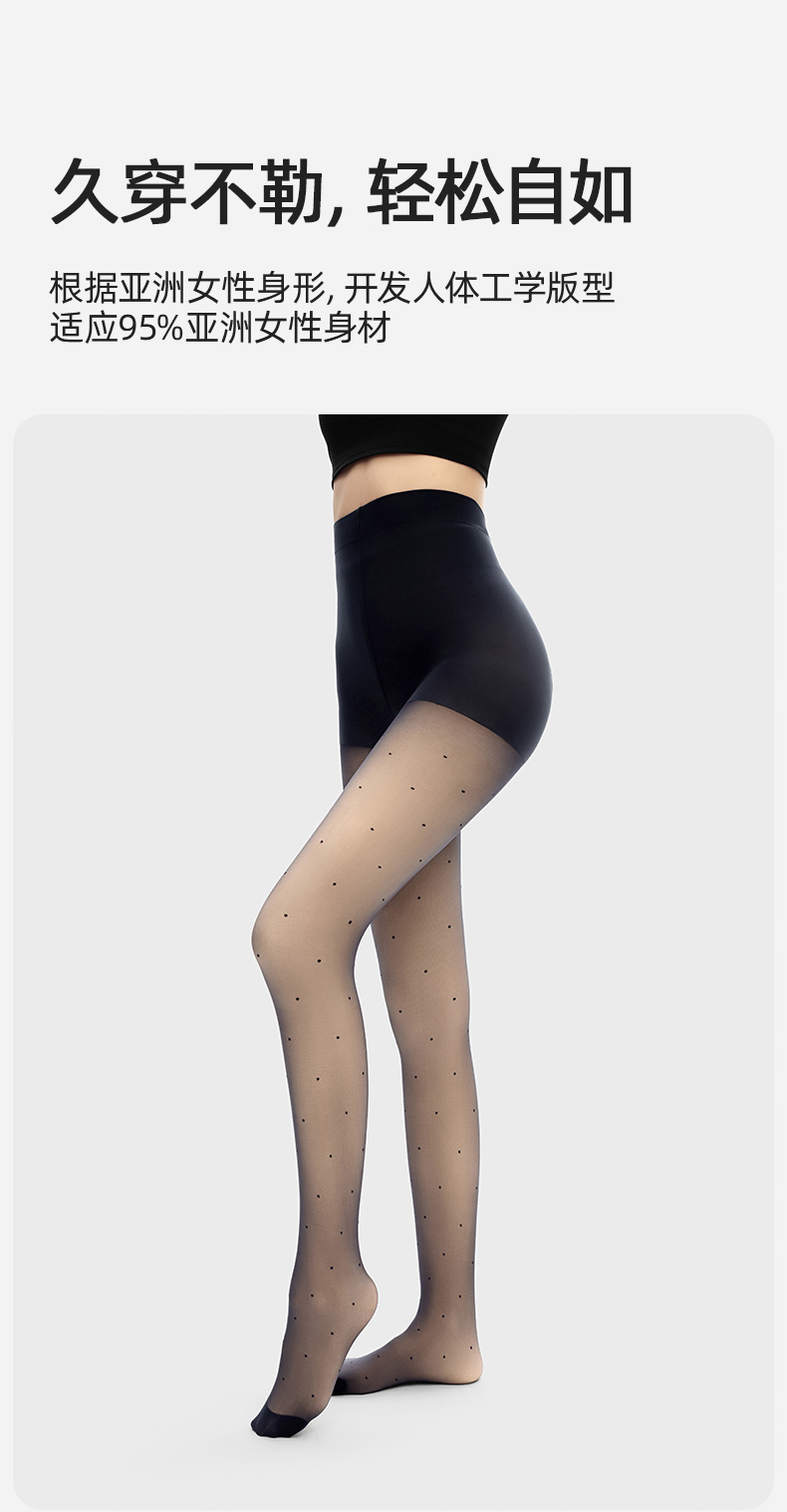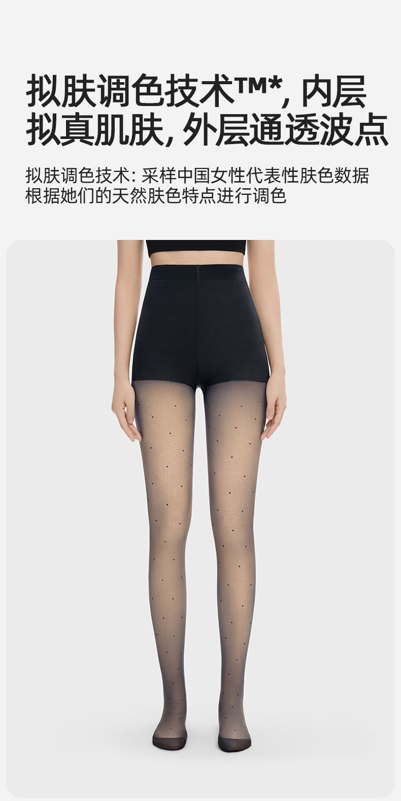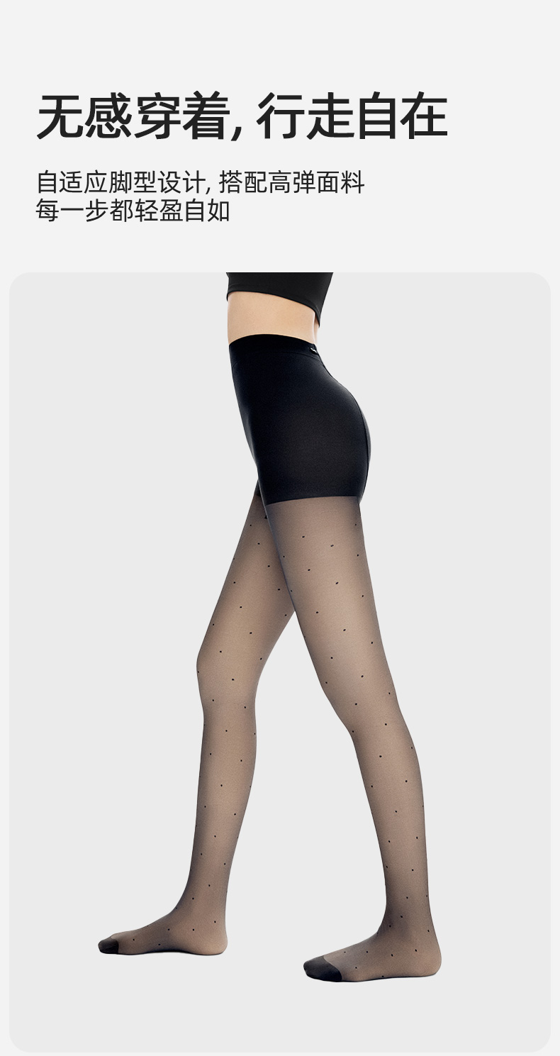 Ono Kazuko Polka Dot Black Silk Stockings for Women, Winter Fleece-Lined Thick Pantyhose, Double-Layer Black Sheer Skin-Tone Base Stockings