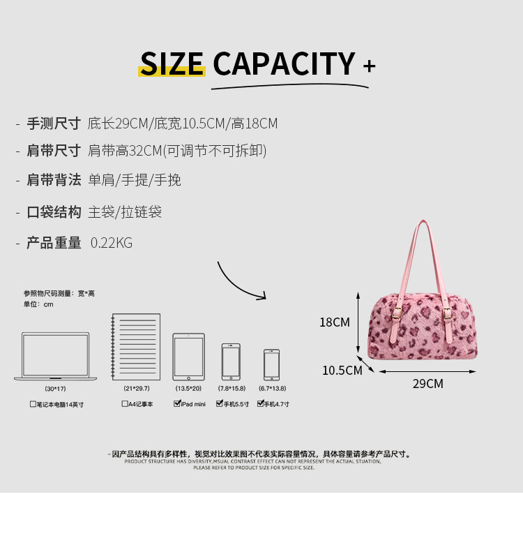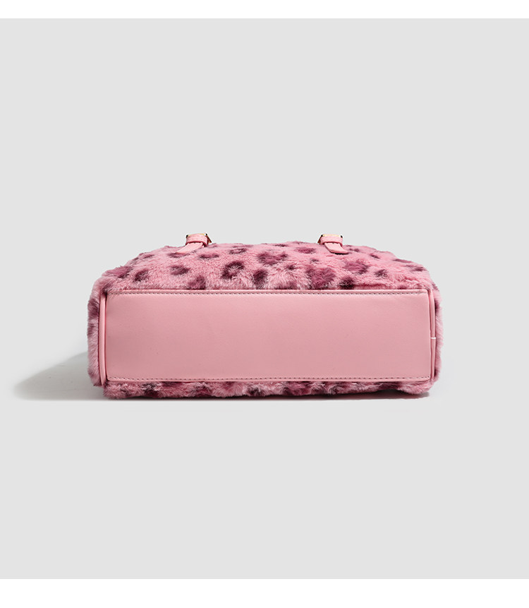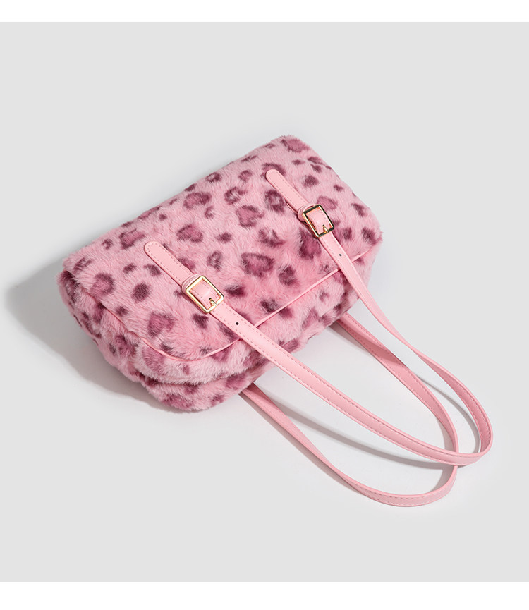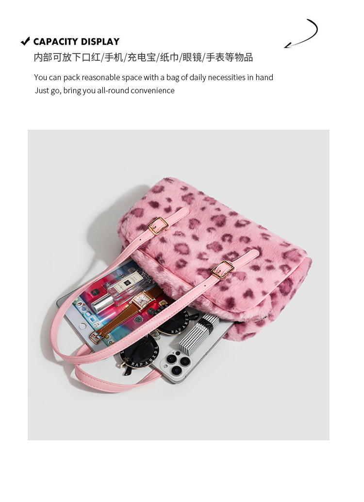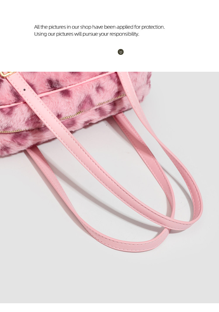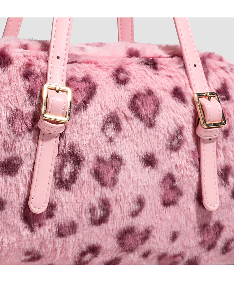 Ur Bag for Women, Autumn and Winter Korean Style, Fluffy Pink Leopard Print Boston Pillow Bag, Furry Bowling Bag, Shoulder Bag