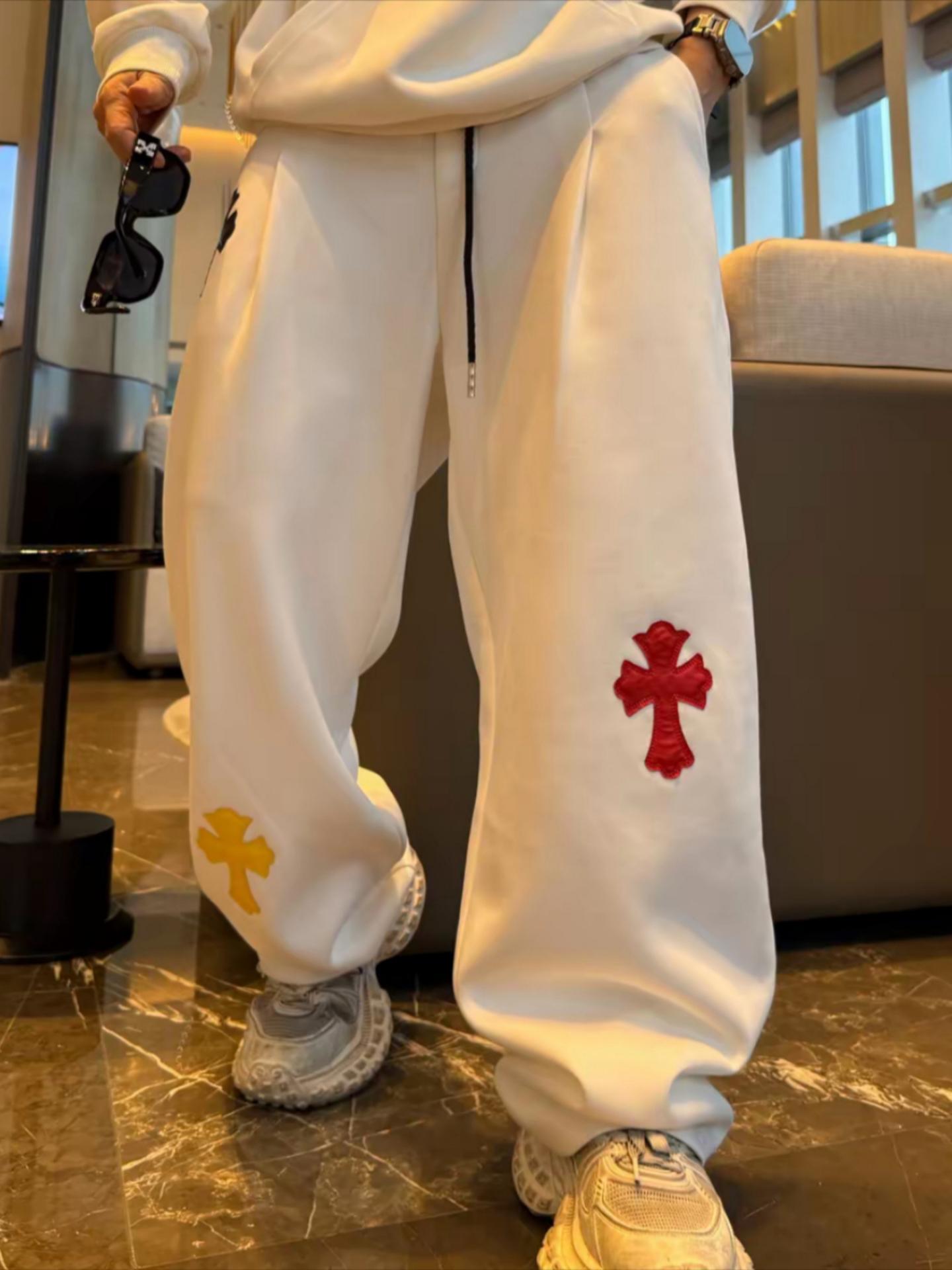 Winter Men's Colorful Cross Hooded Pullover Sweatshirt and Casual Pants Fleece Set Trendy Niche High-End Fashion