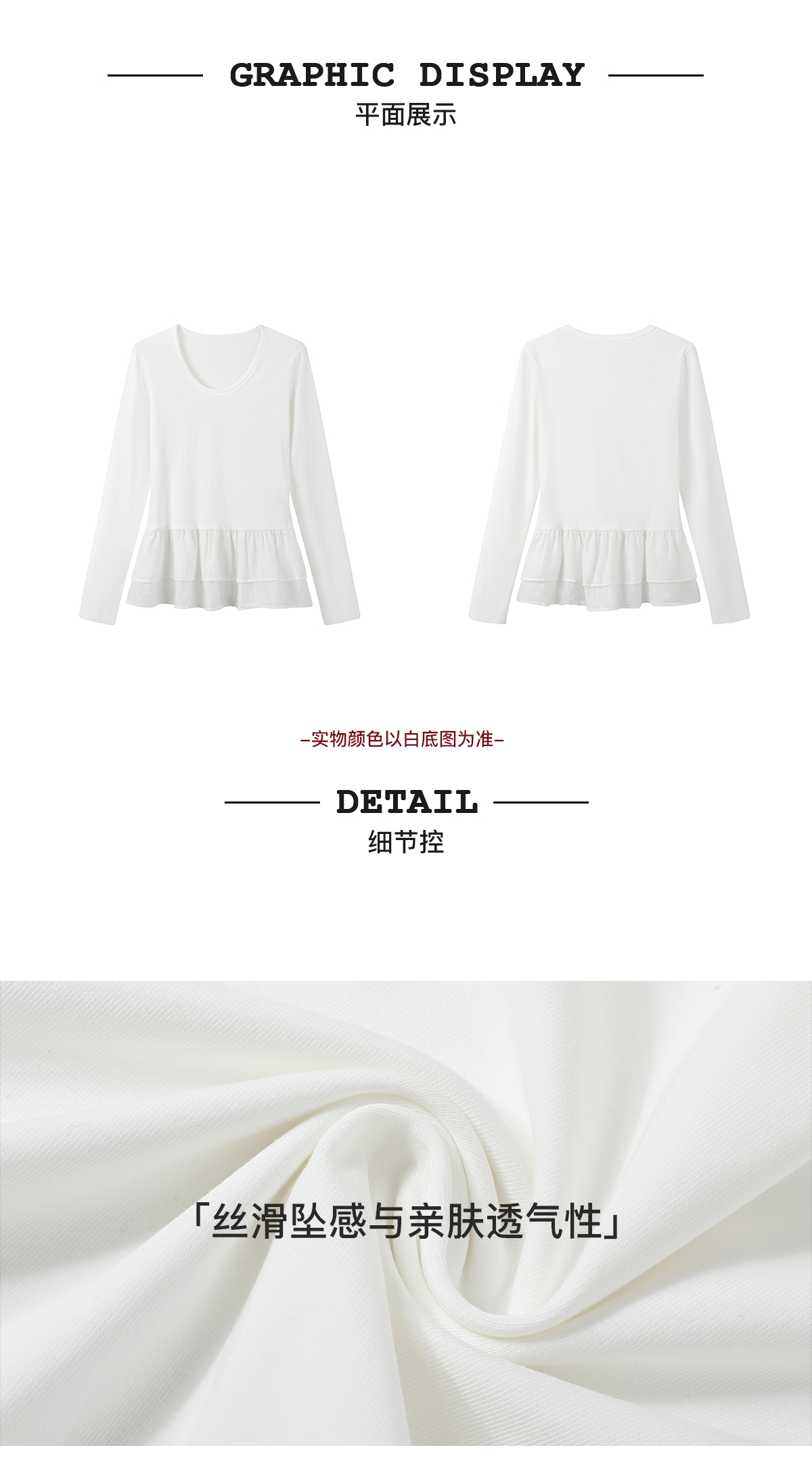 Ana Treasure Jenny Lyocell Tencel Lace Hem Butt-Covering Patchwork Long-Sleeve Base Shirt for Girls, Korean Style Outfit