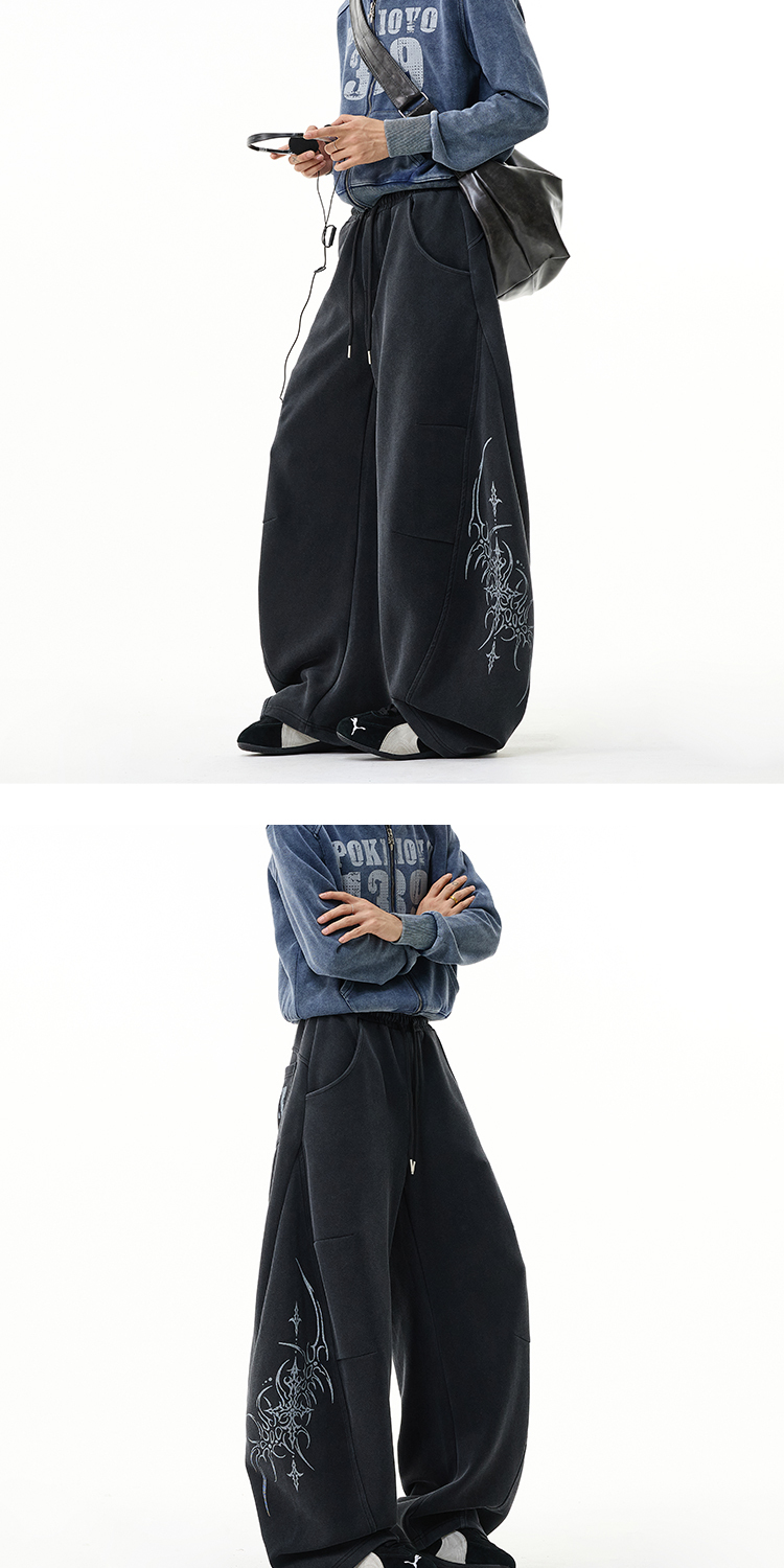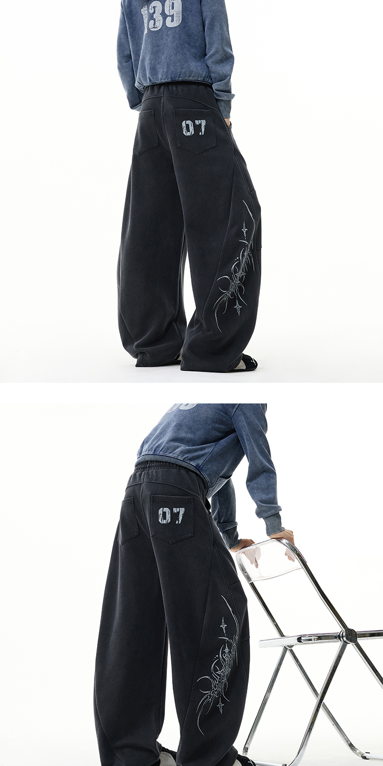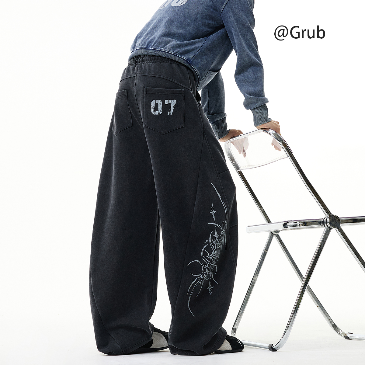Heavyweight Hip-Hop Sweatpants for Men and Women, Winter American-Style Trendy Brand Printed Flared Long Pants, Vintage Loose Floor-Length Pants