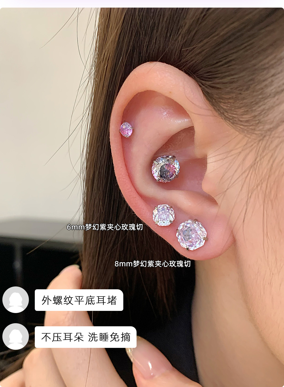 Ear Bone Studs, Cochlear Studs, Dazzling Earrings, Titanium Alloy Medical Titanium Steel Ear Jewelry, Ear Piercing Care, Ringring Store