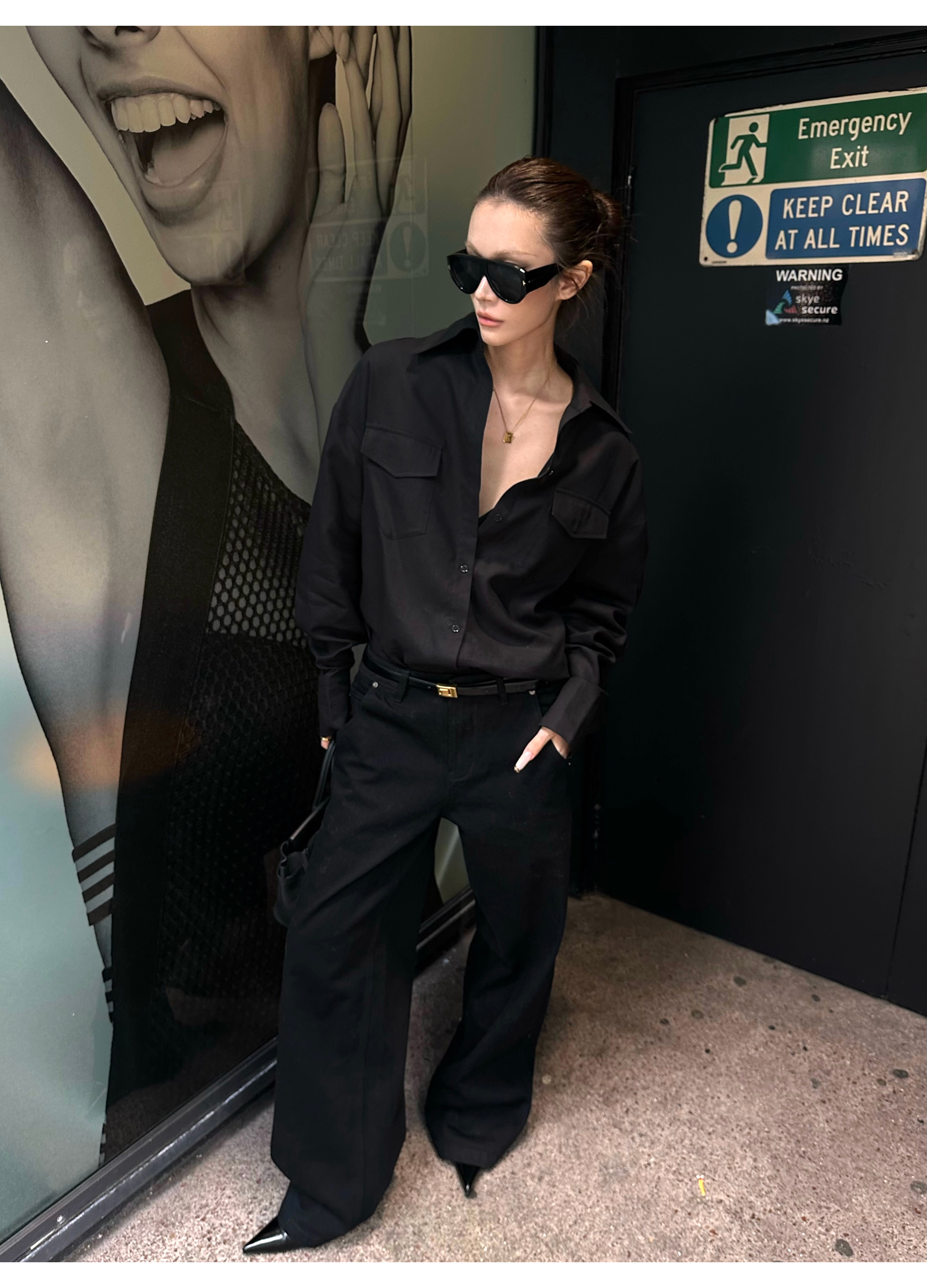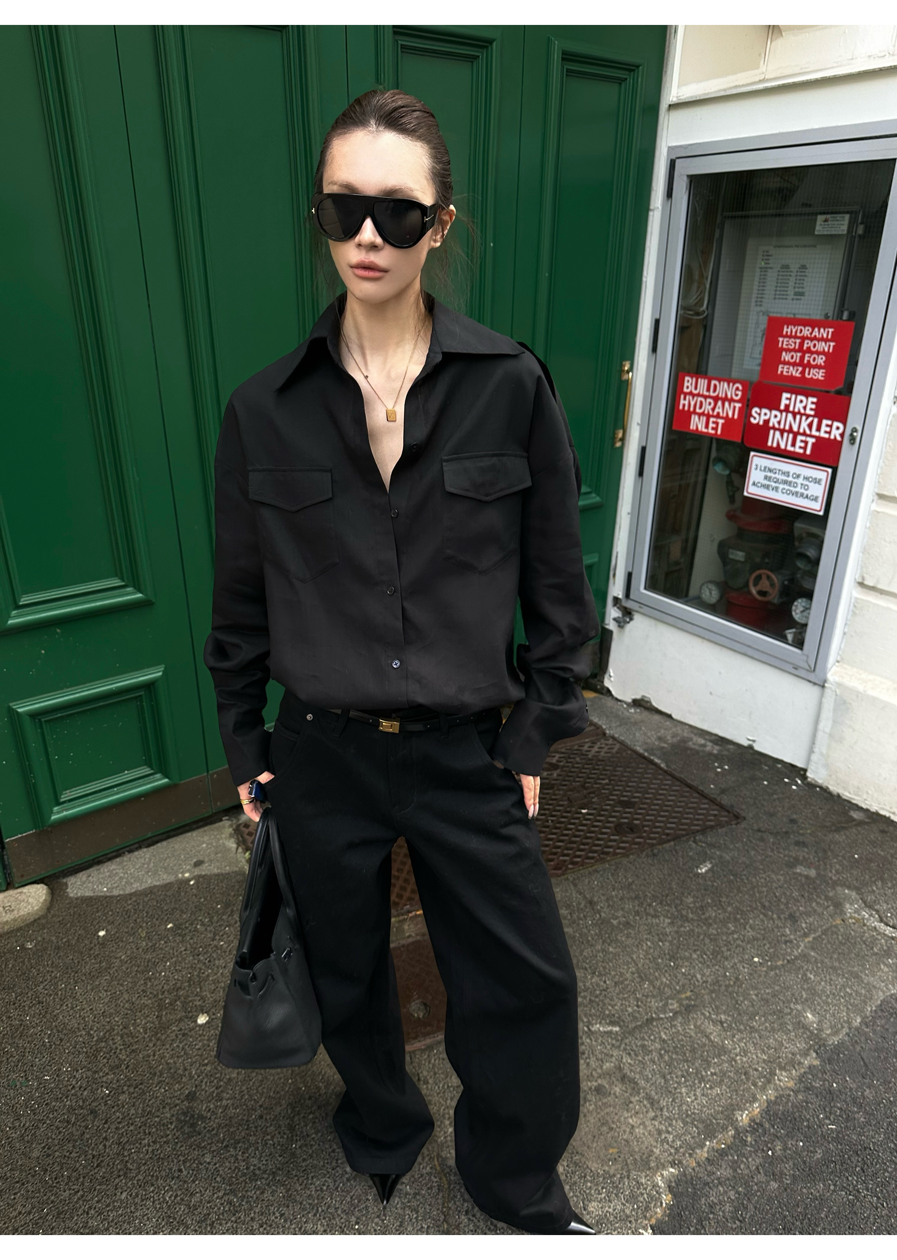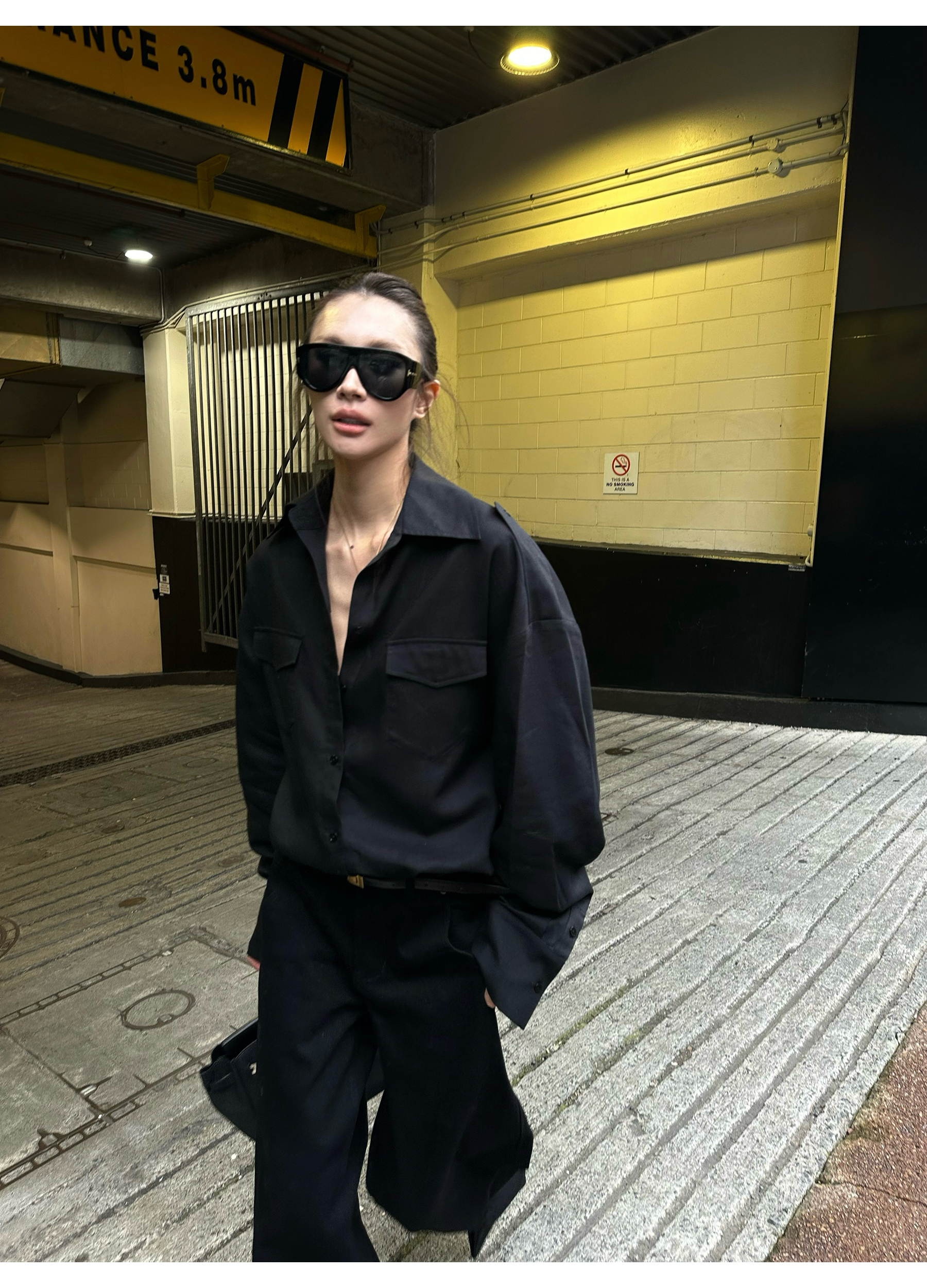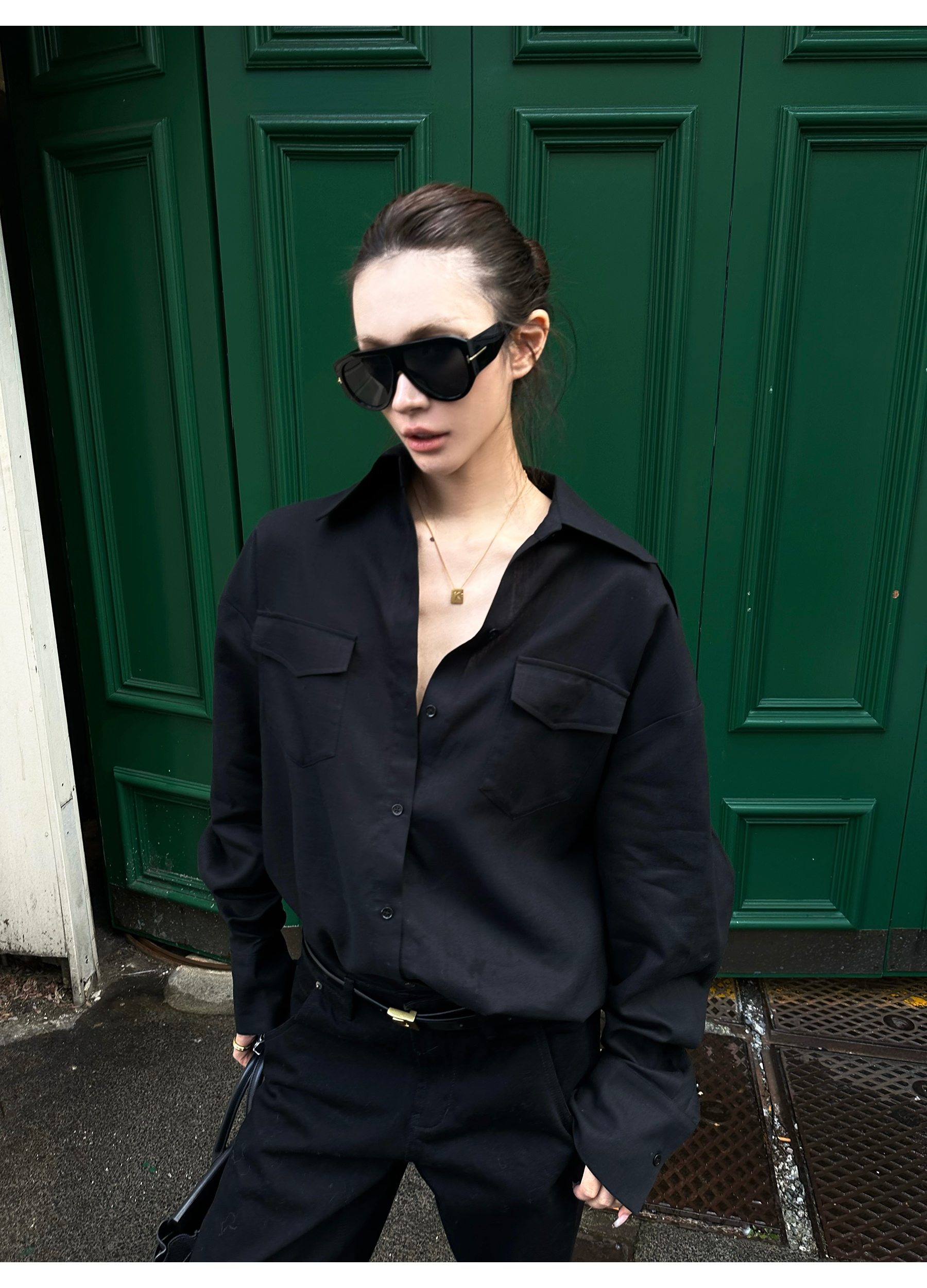 0122Stepll ‌ Dark Line Elite Black Tencel Shirt for Women, Loose and Lazy Style, Slimming Long Sleeve Jacket