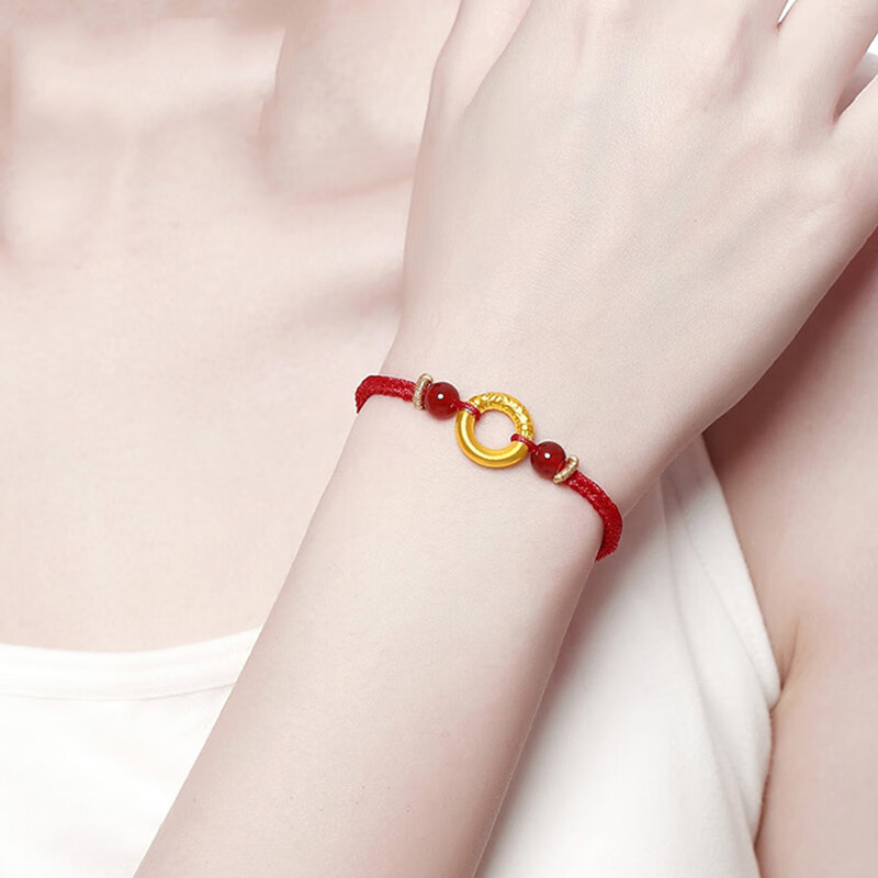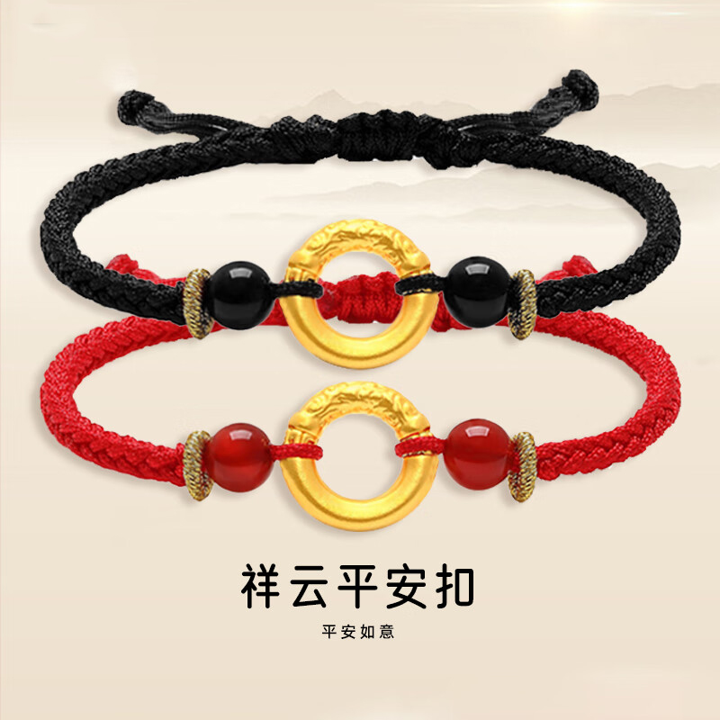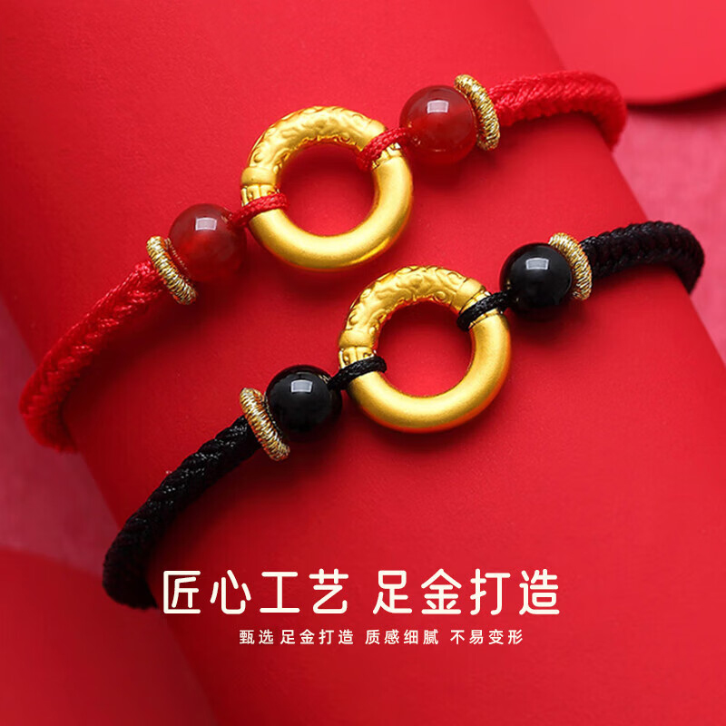 Shenzhen Shuibeixiangyun Peace Buckle Gold Bracelet for Women, Pure Gold 999 Transfer Bead Couple Braided Bracelet Gift for Girlfriend