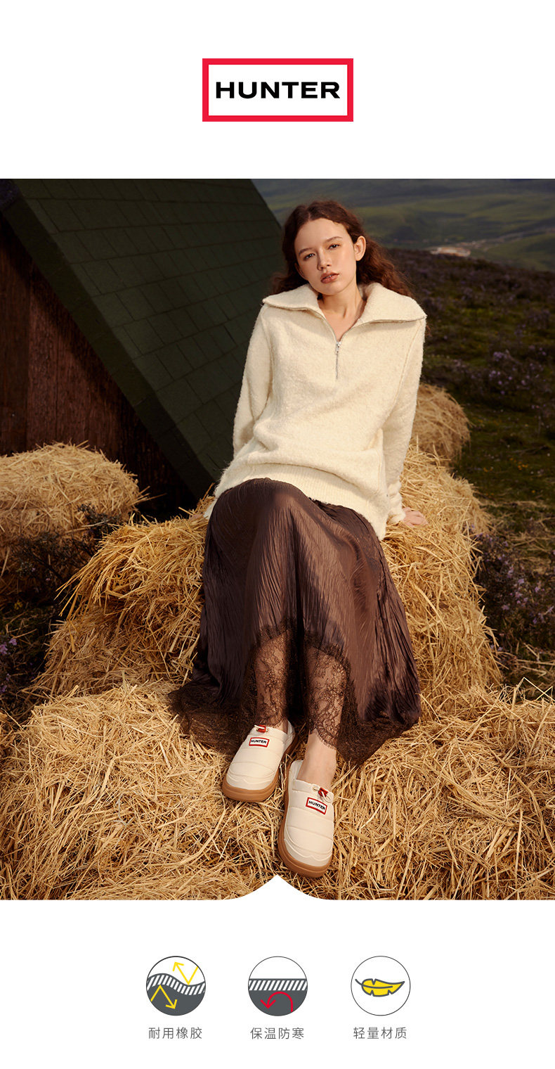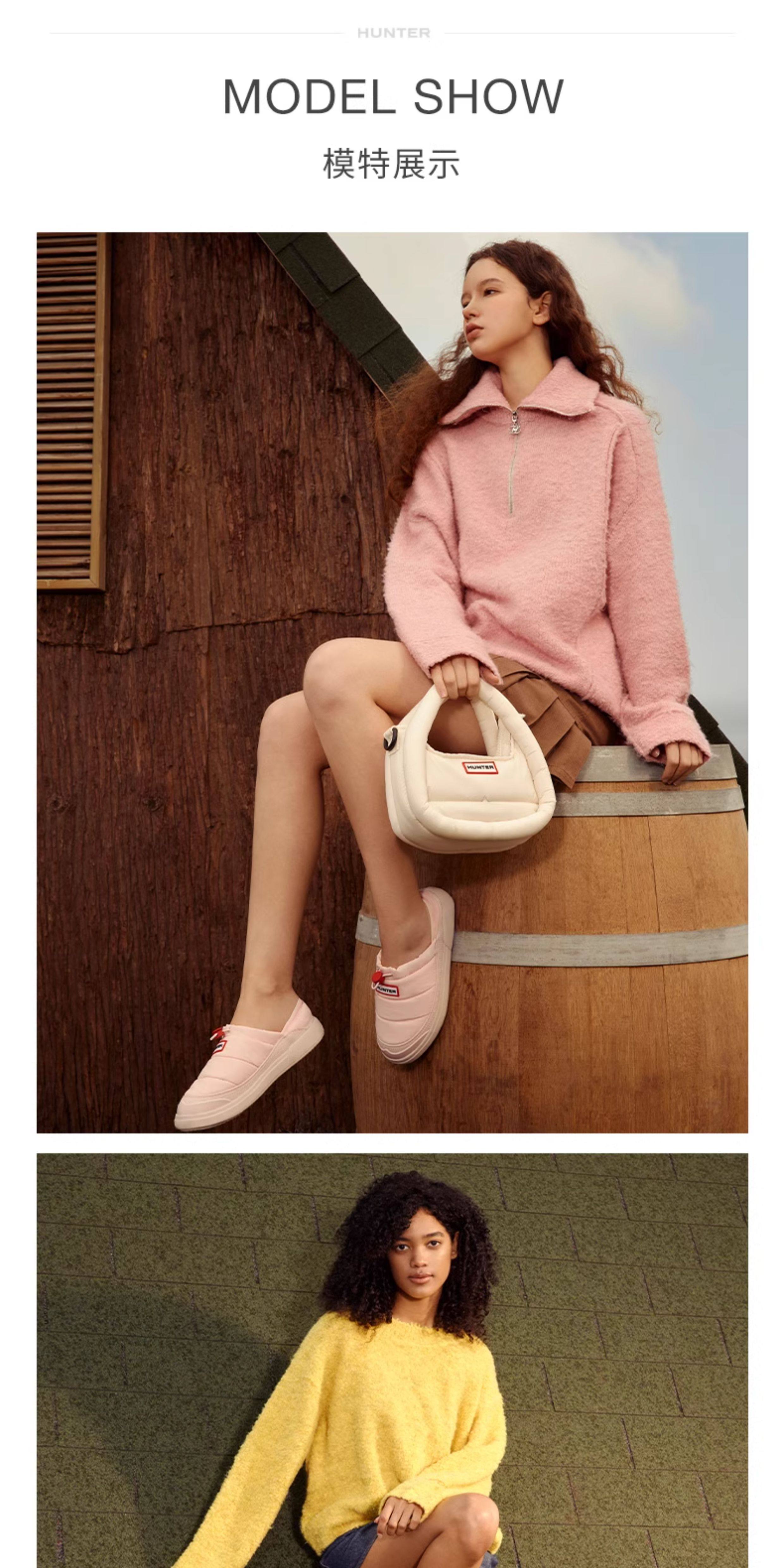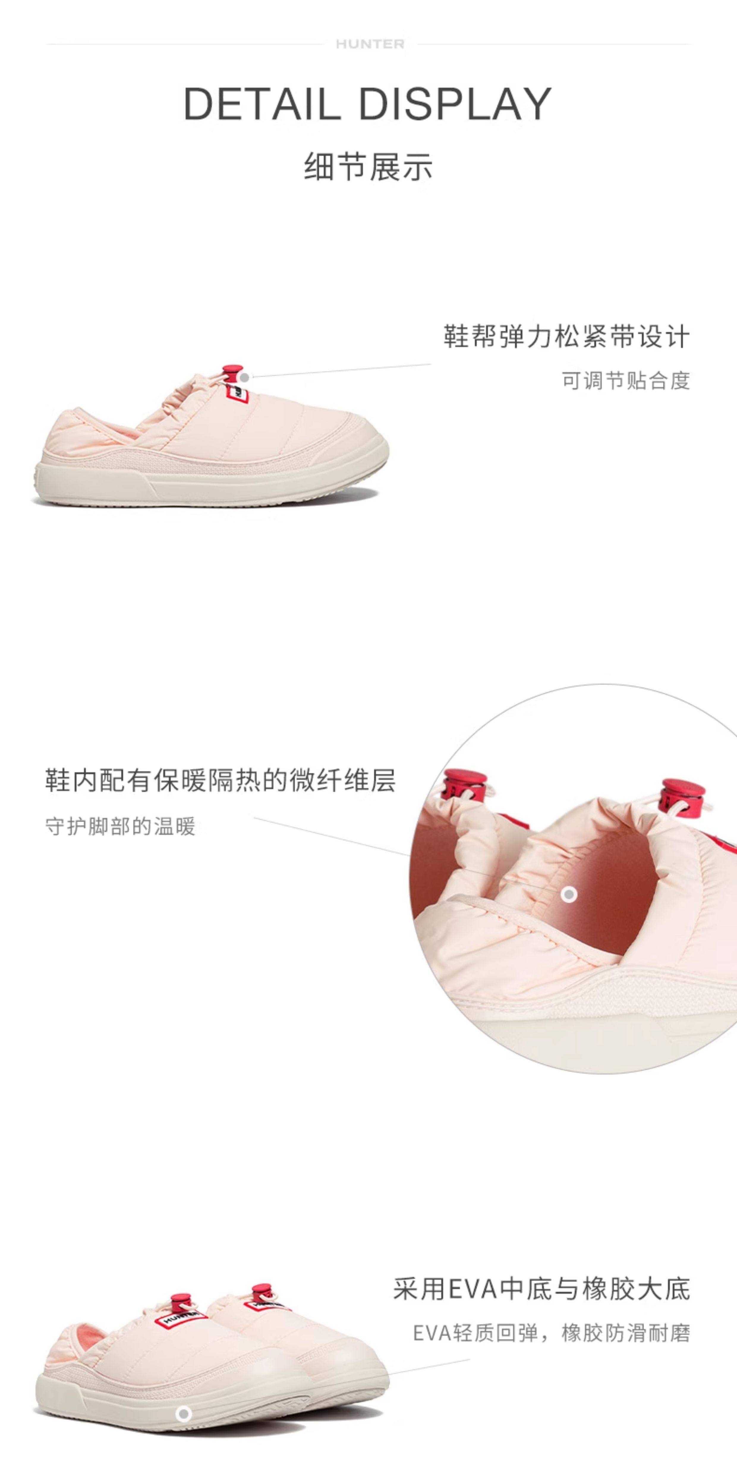 Hunter Autumn and Winter Women's Slippers, Quilted, Thickened, Fleece-Lined, Warm Casual Shoes, Women's Low-Top Non-Slip Cotton Slippers