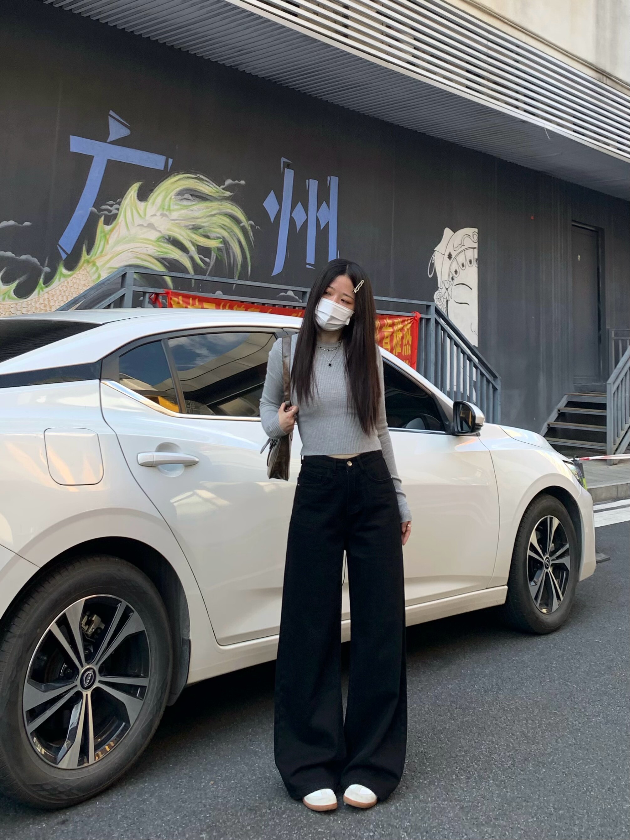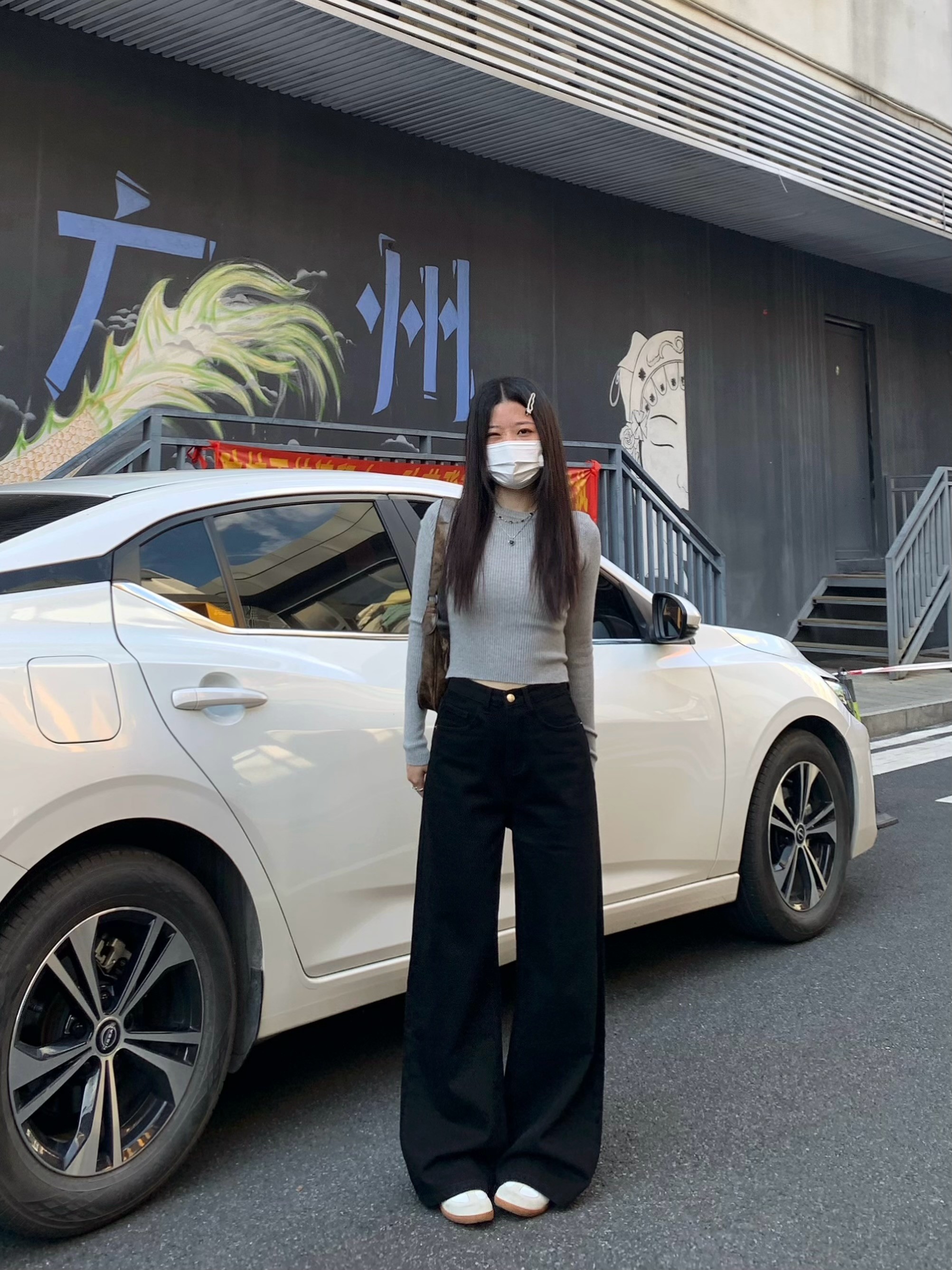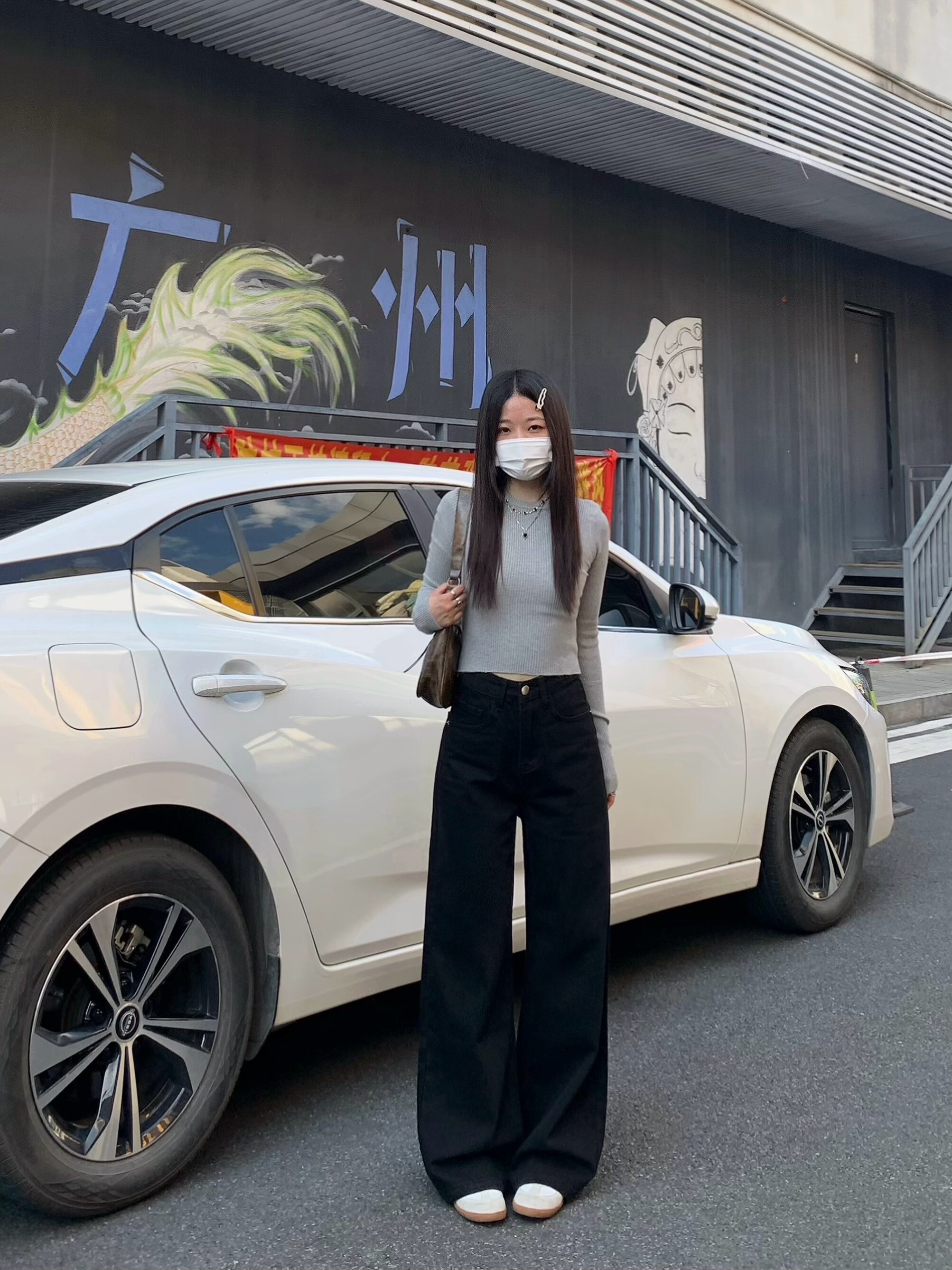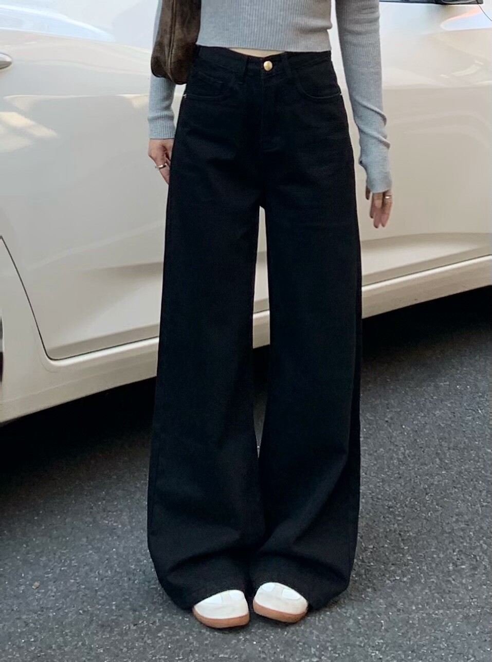Chun Ge's Black Wide-Leg Drapey Denim Pants for Women, 2026 Spring New Versatile High-Waisted Loose Slimming Floor-Length Pants