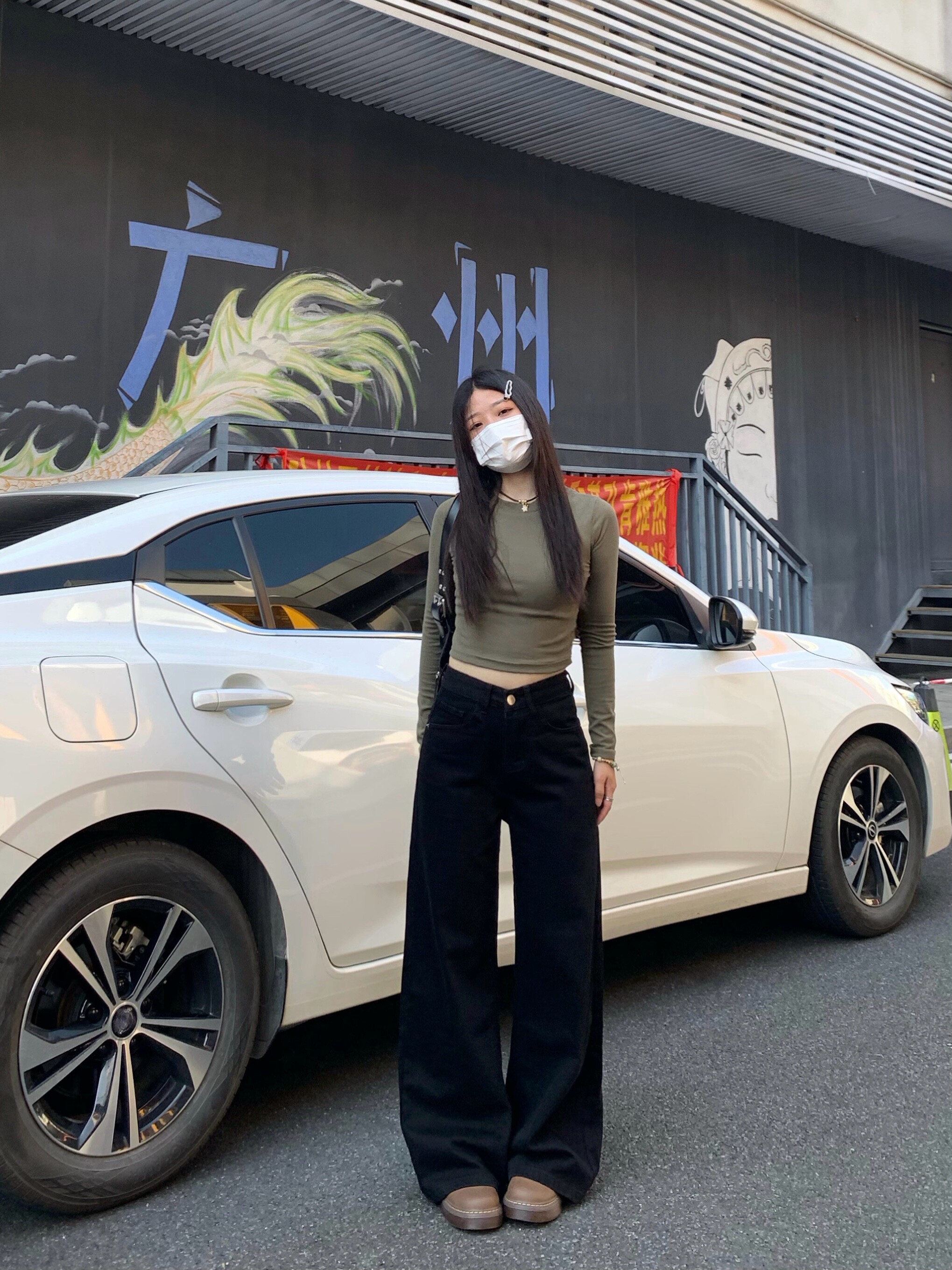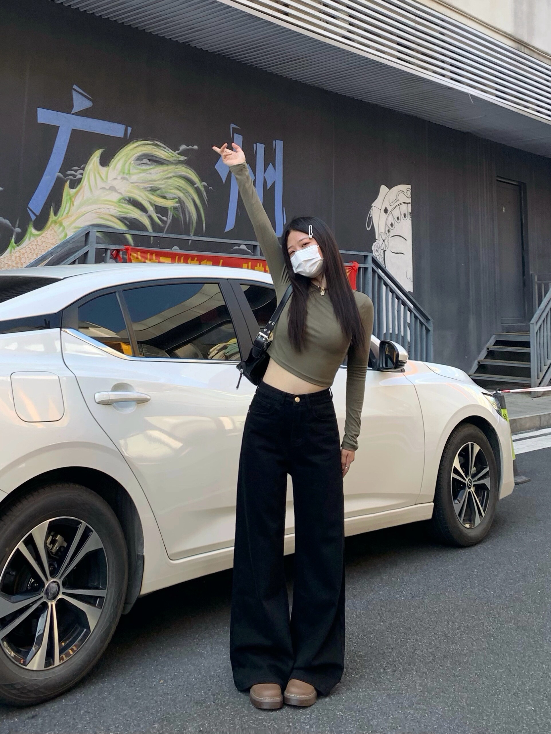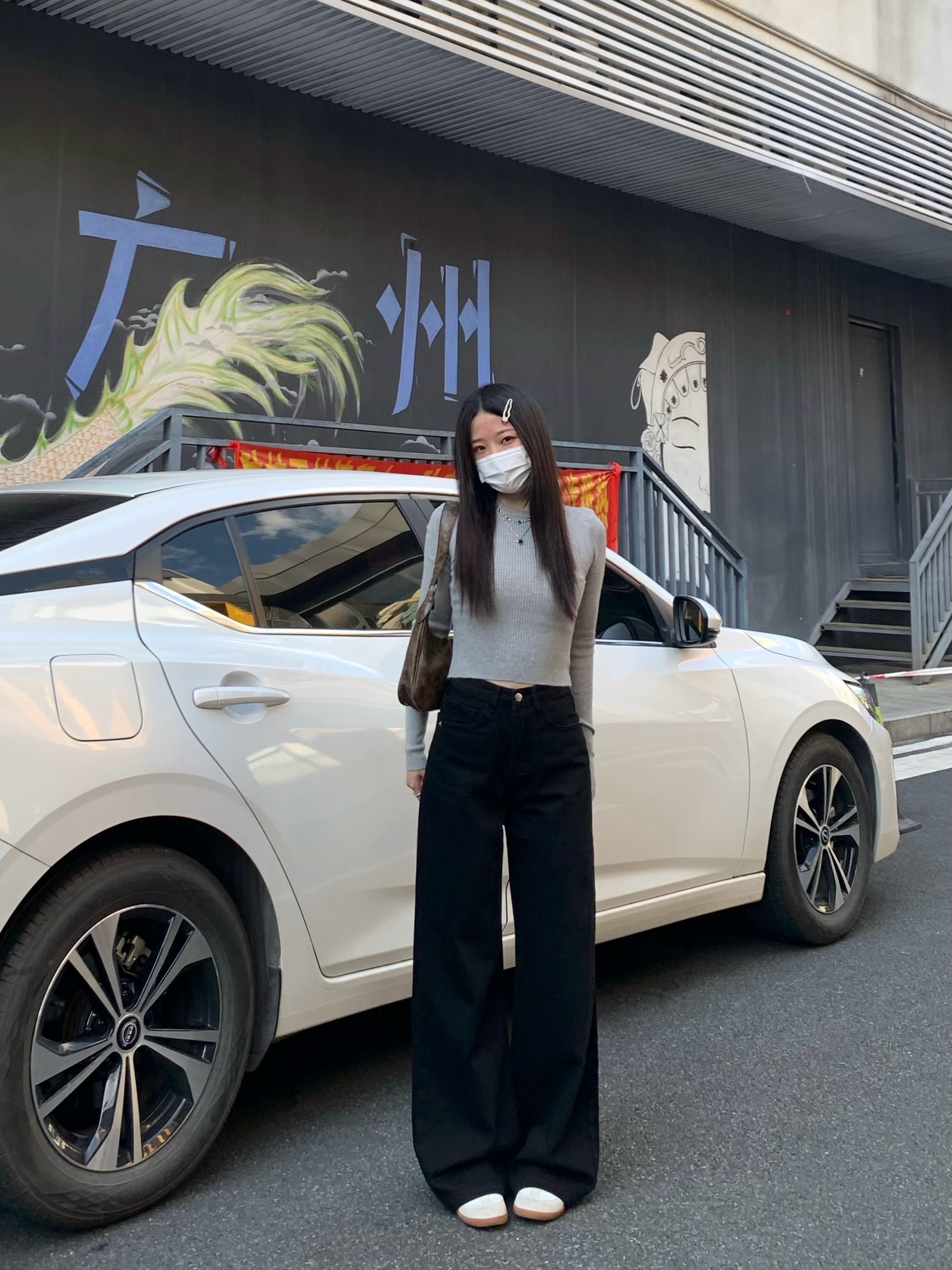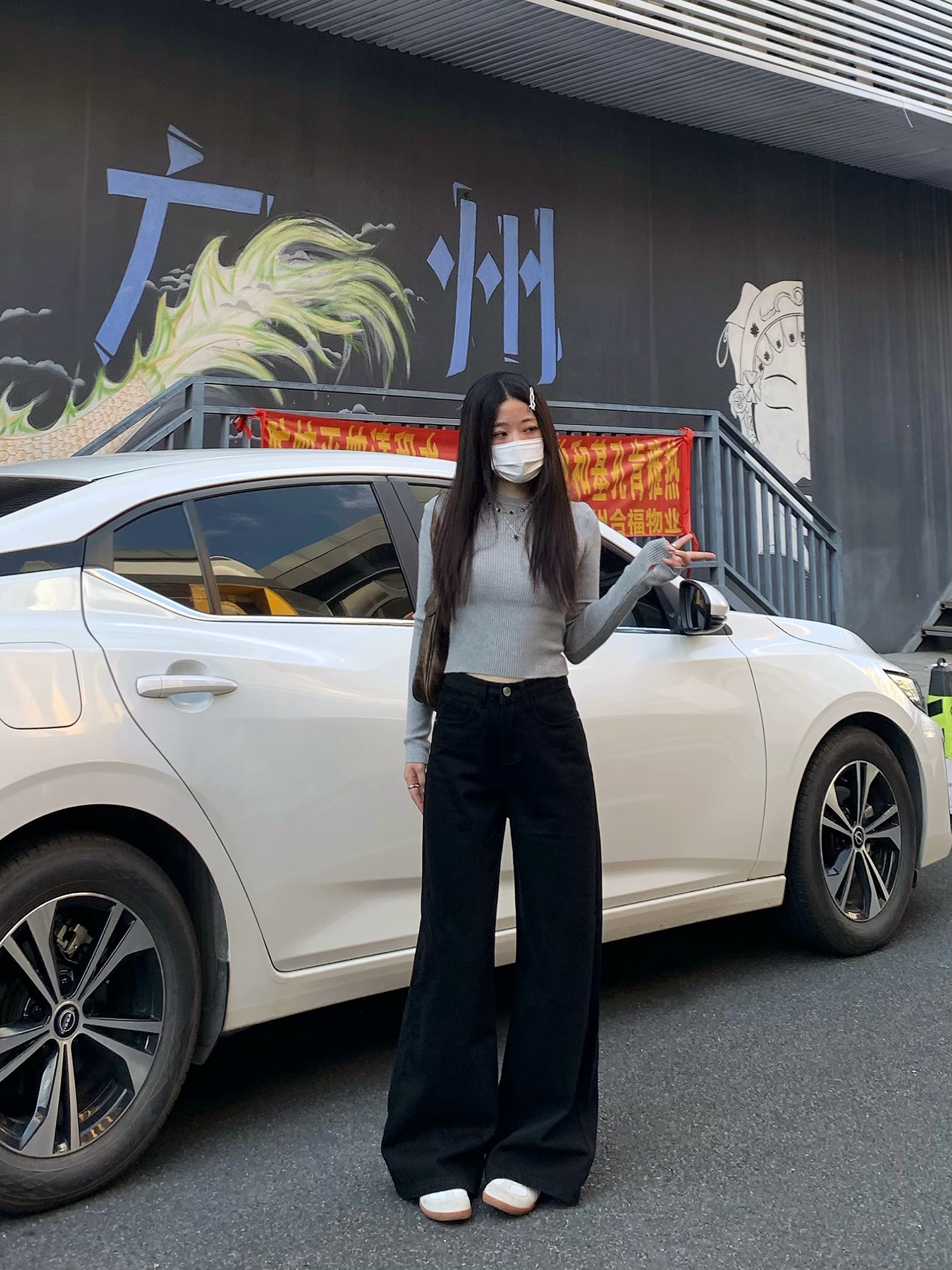 Chun Ge's Black Wide-Leg Drapey Denim Pants for Women, 2026 Spring New Versatile High-Waisted Loose Slimming Floor-Length Pants
