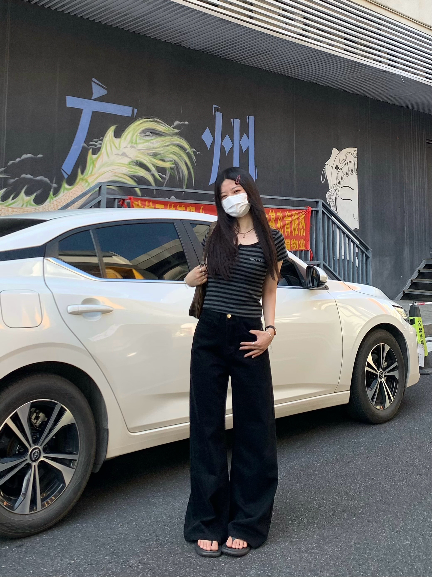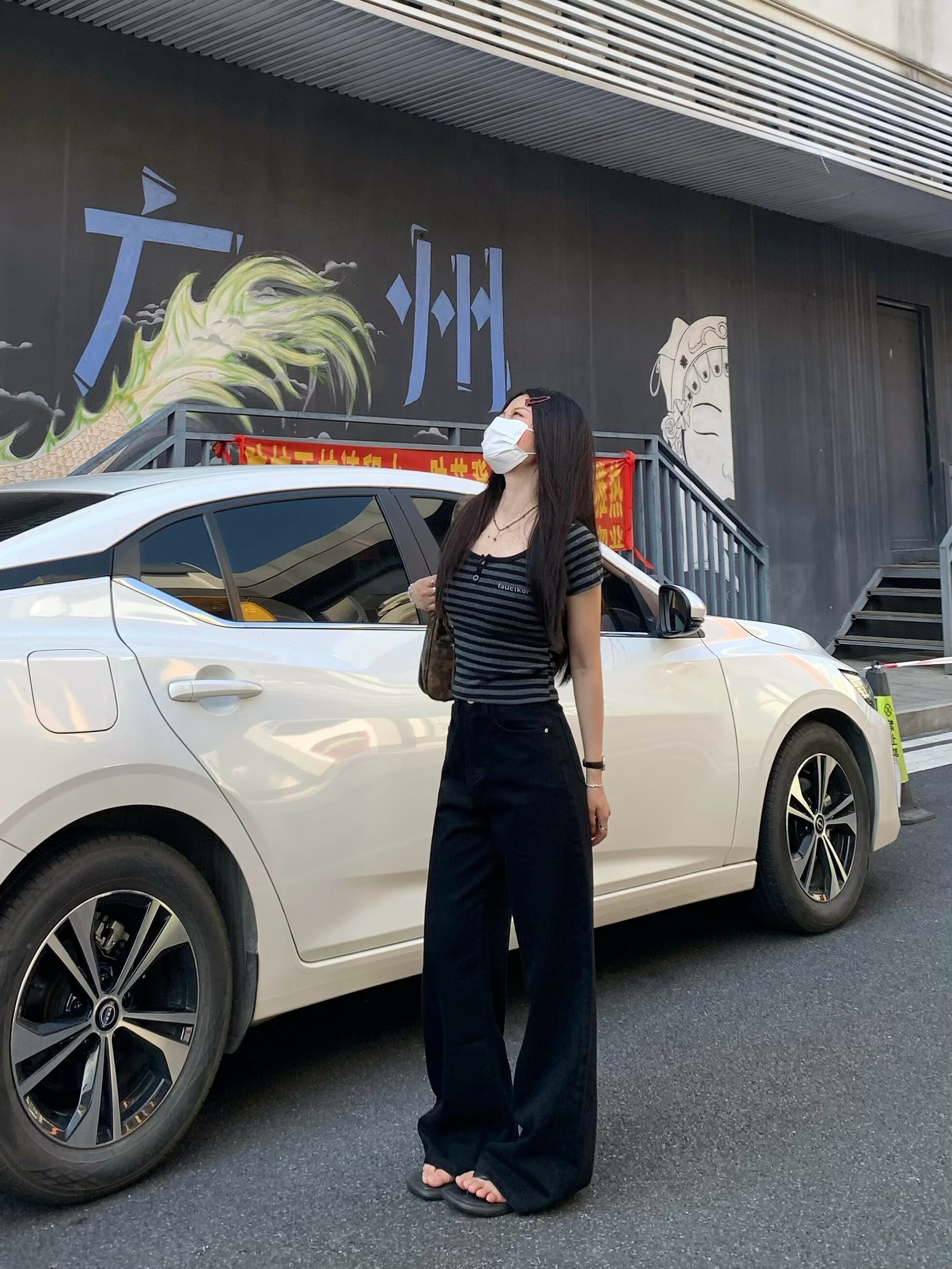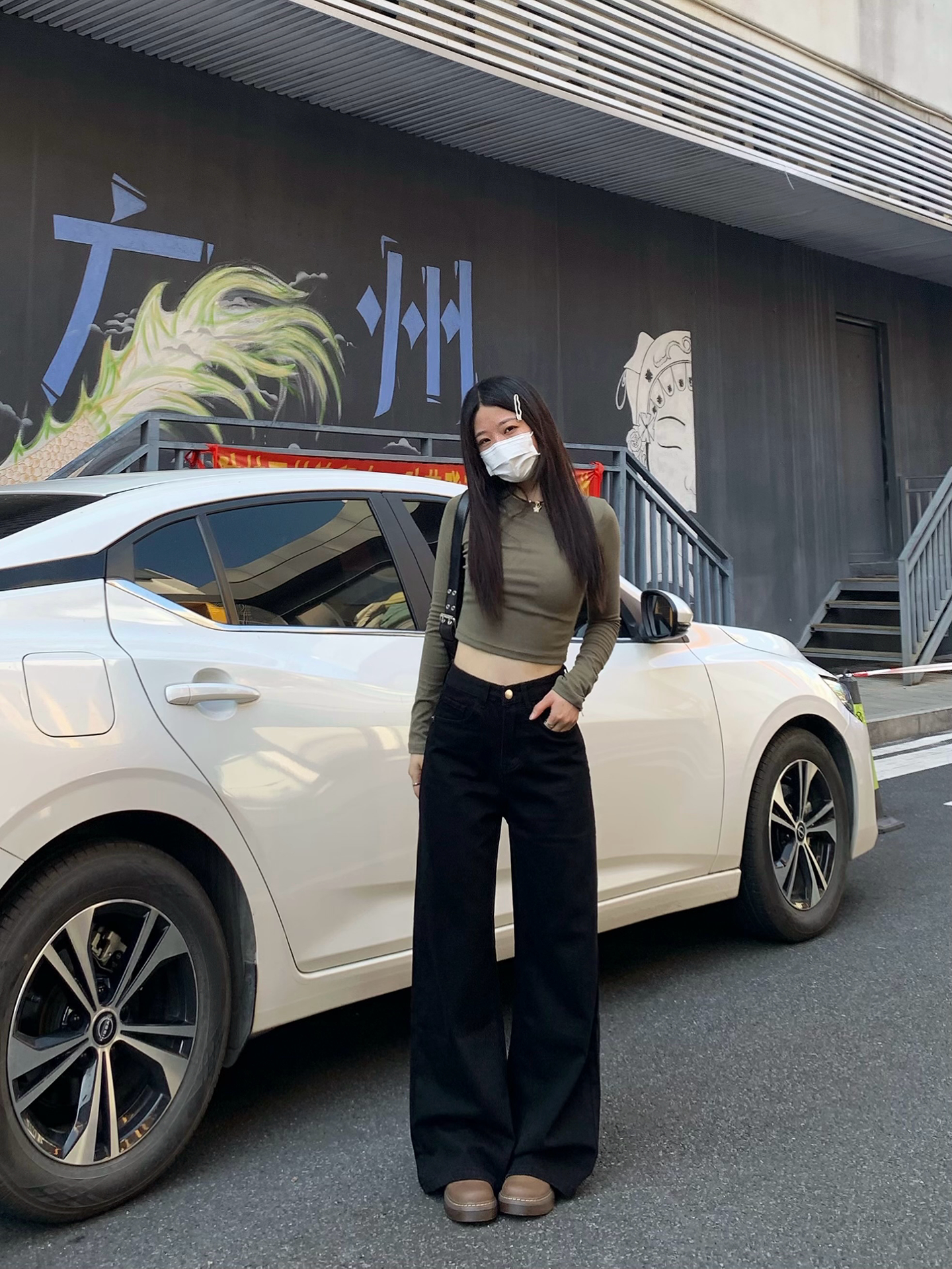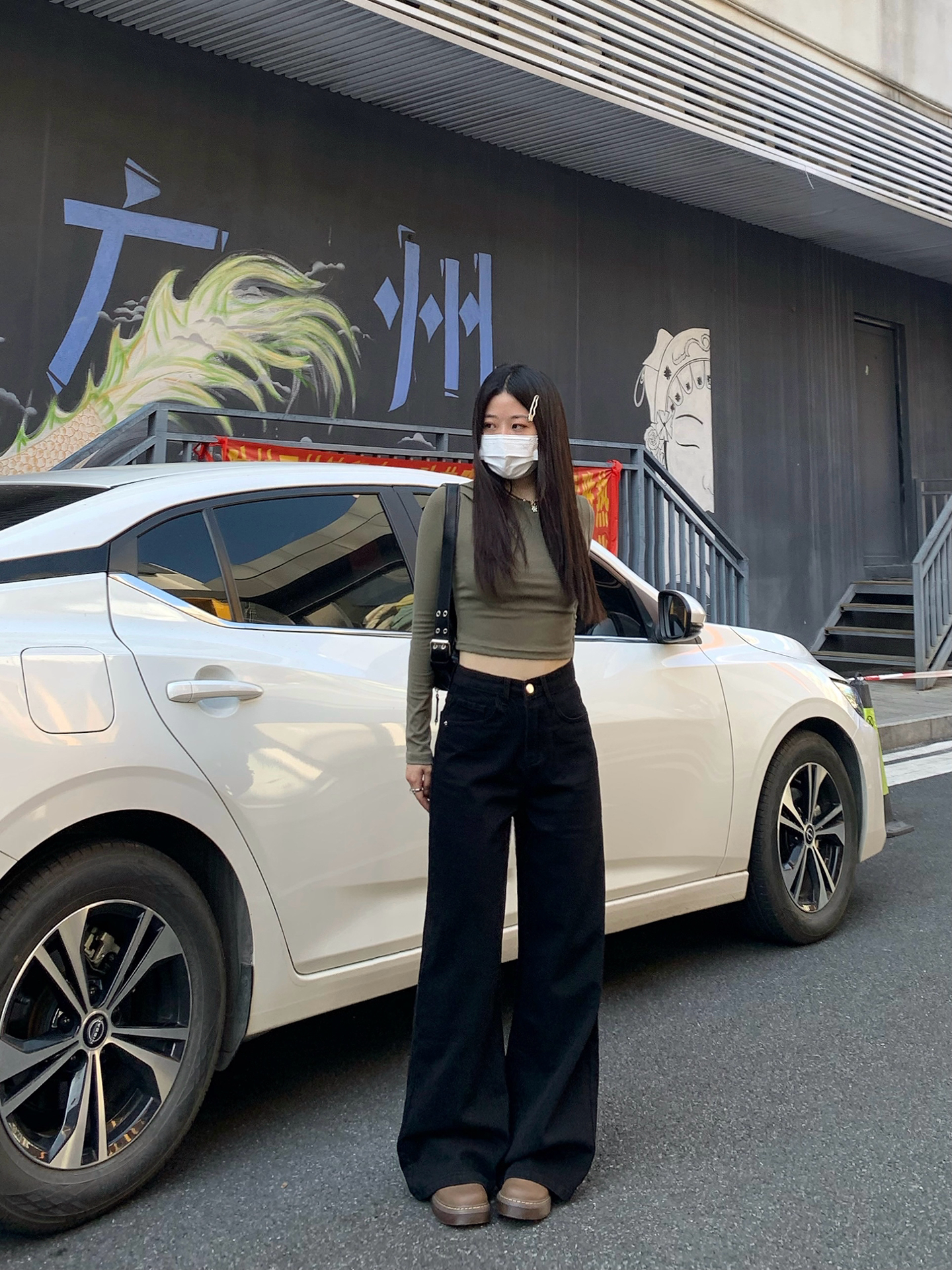 Chun Ge's Black Wide-Leg Drapey Denim Pants for Women, 2026 Spring New Versatile High-Waisted Loose Slimming Floor-Length Pants