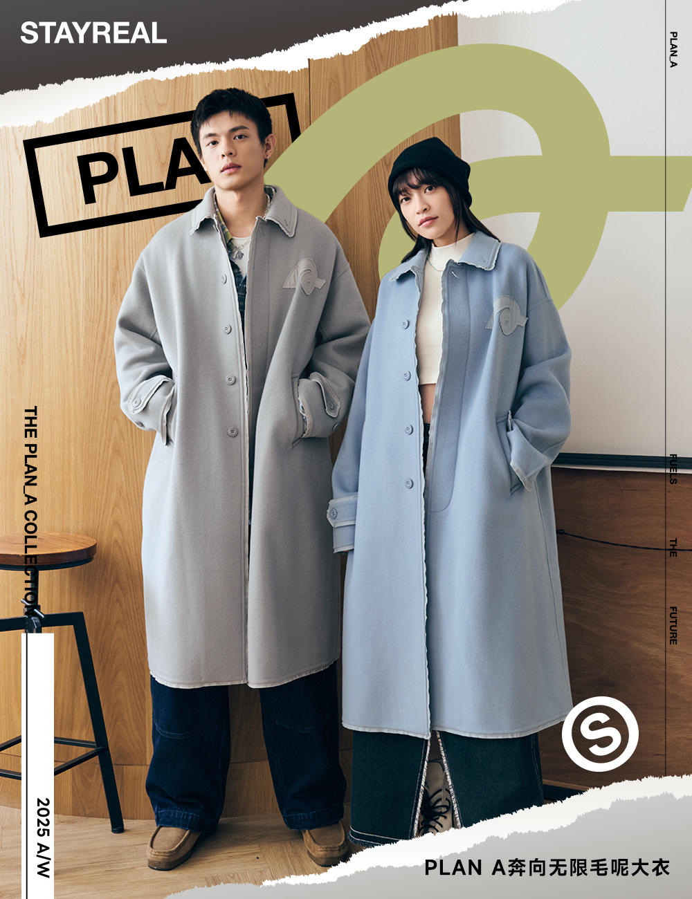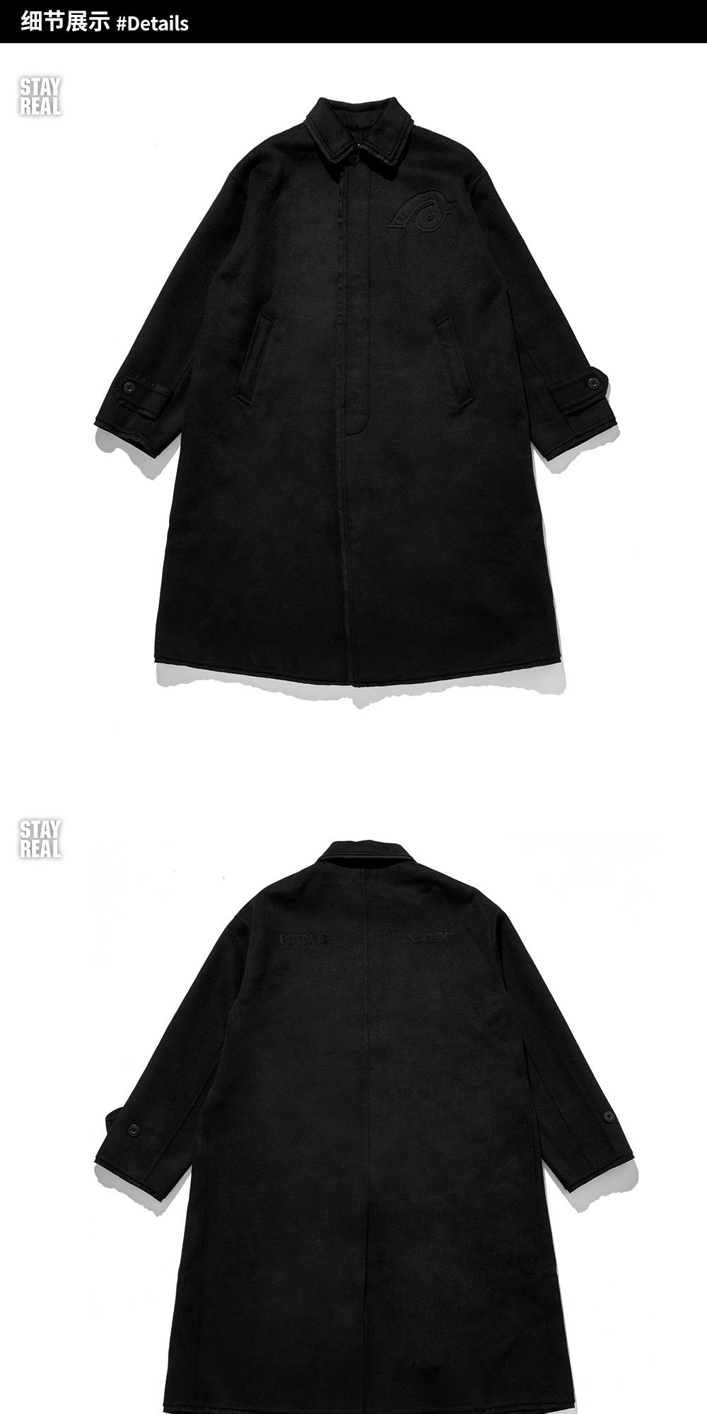Aixin's Same Style Stayreal Trendy Brand Plan a Wool Coat Long Coat for Men and Women