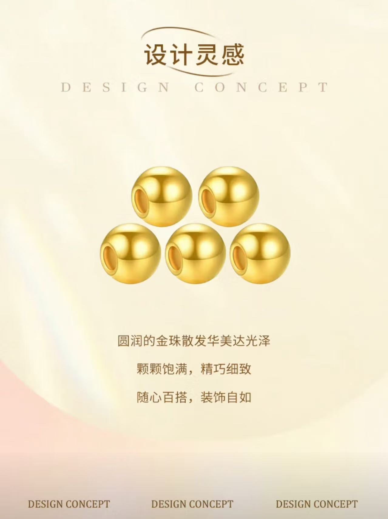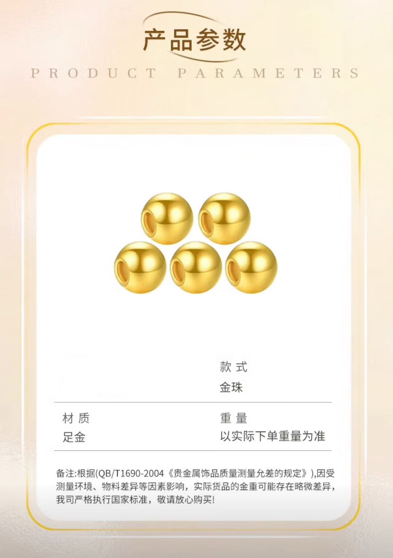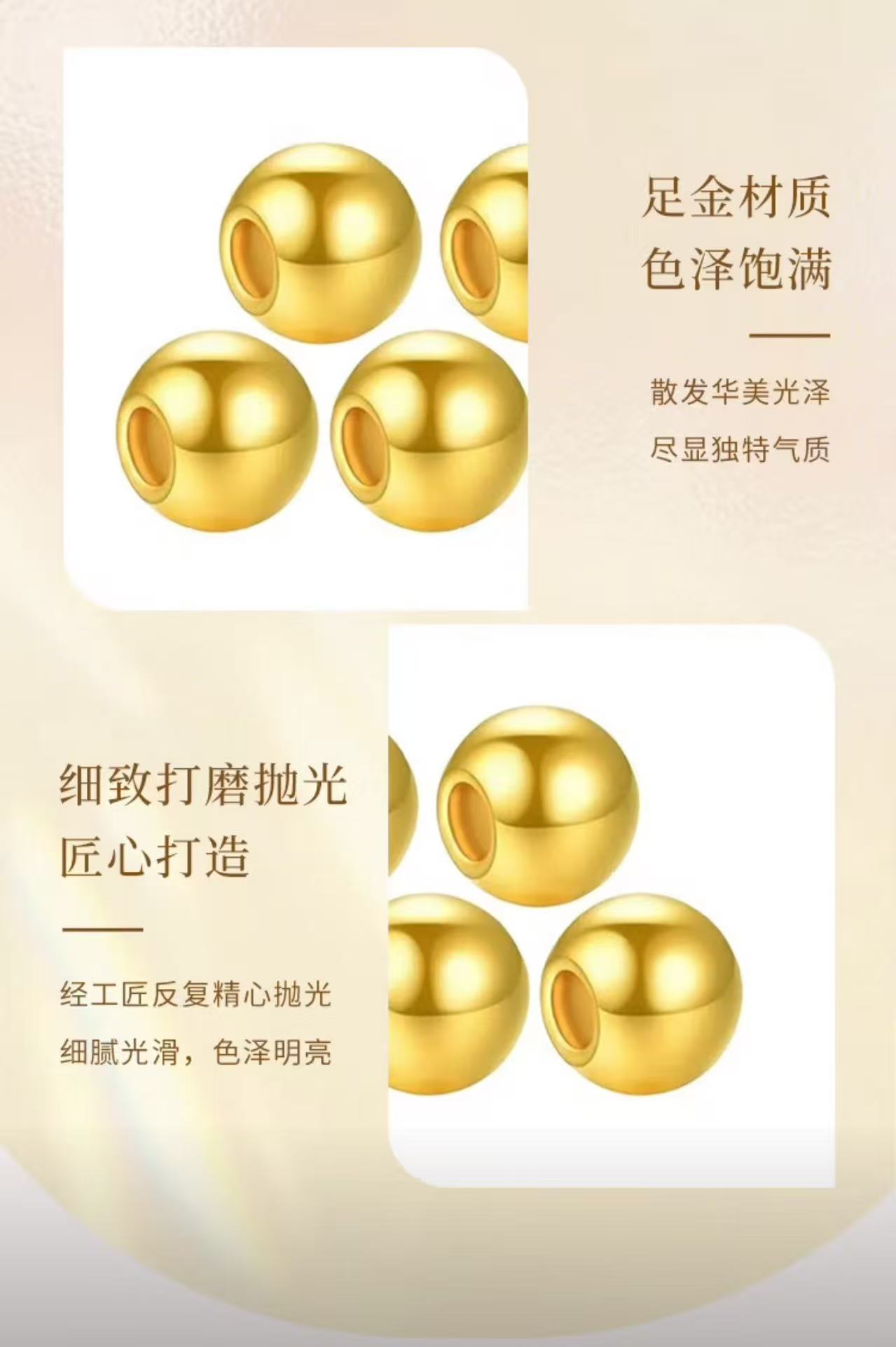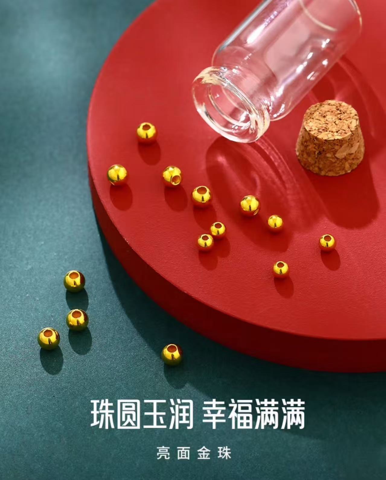 [Zhenjin Lou] Gold Fortune Beads Pure Gold 999 Polished Gold Beads Gold String Beads Pendant Spacer Beads Loose Beads Versatile