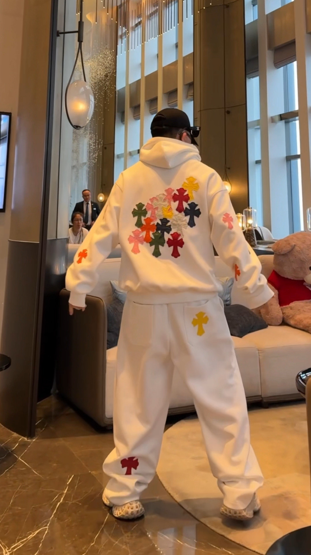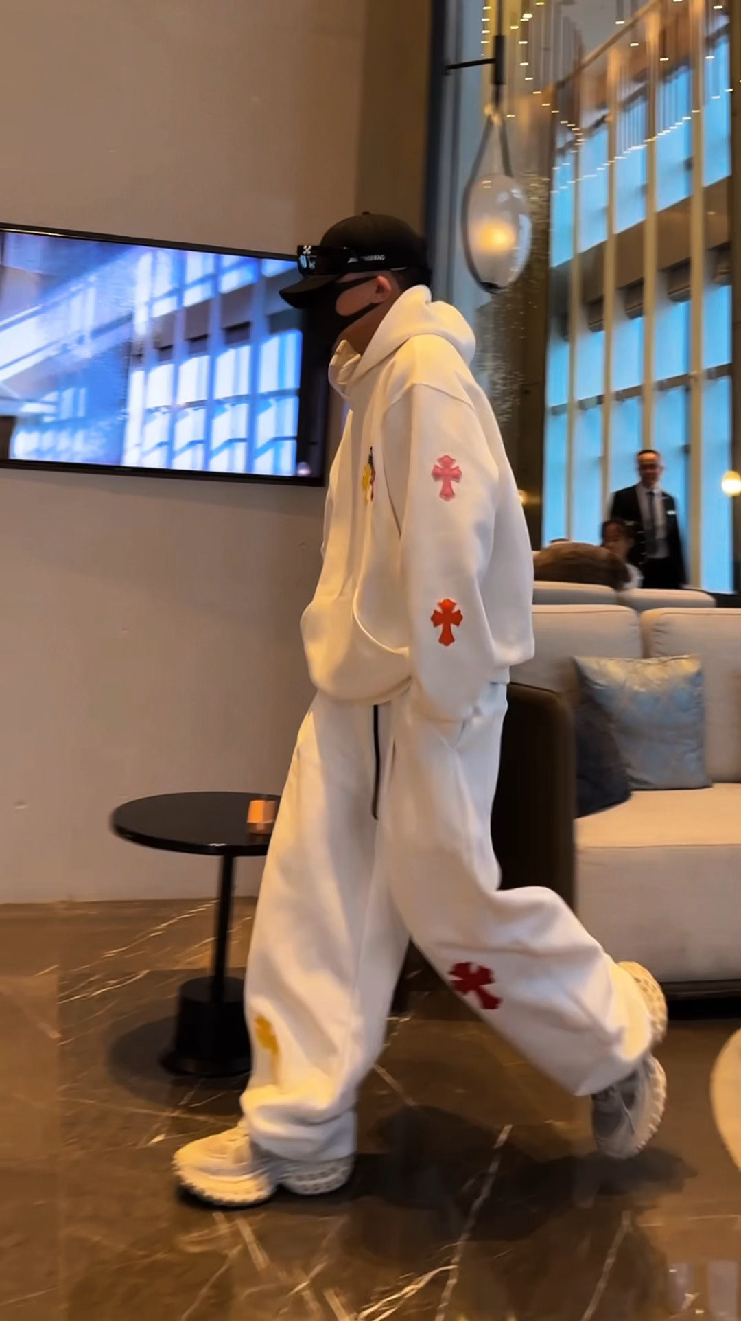 Winter Fleece-Lined High-Quality Trendy Design Colorful Cross Sweatshirt Wide-Leg Casual Pants Men's Cool Two-Piece Set