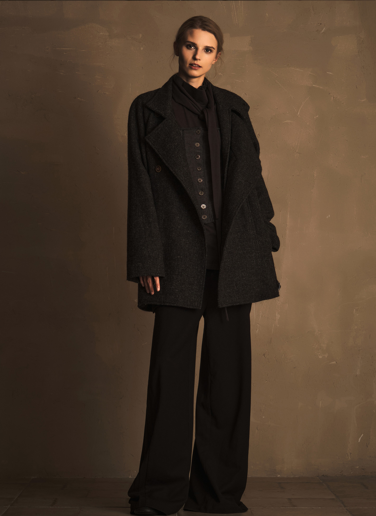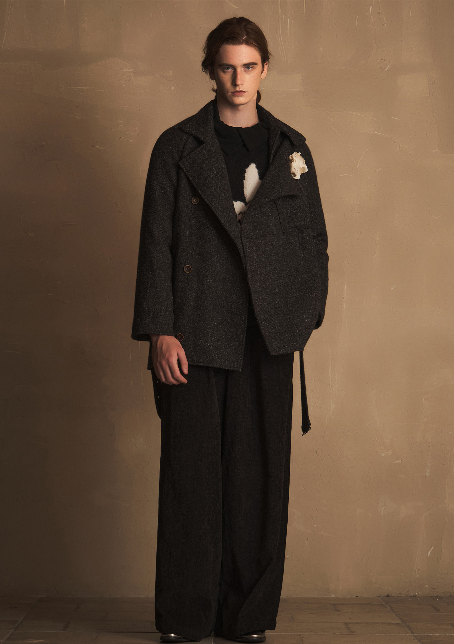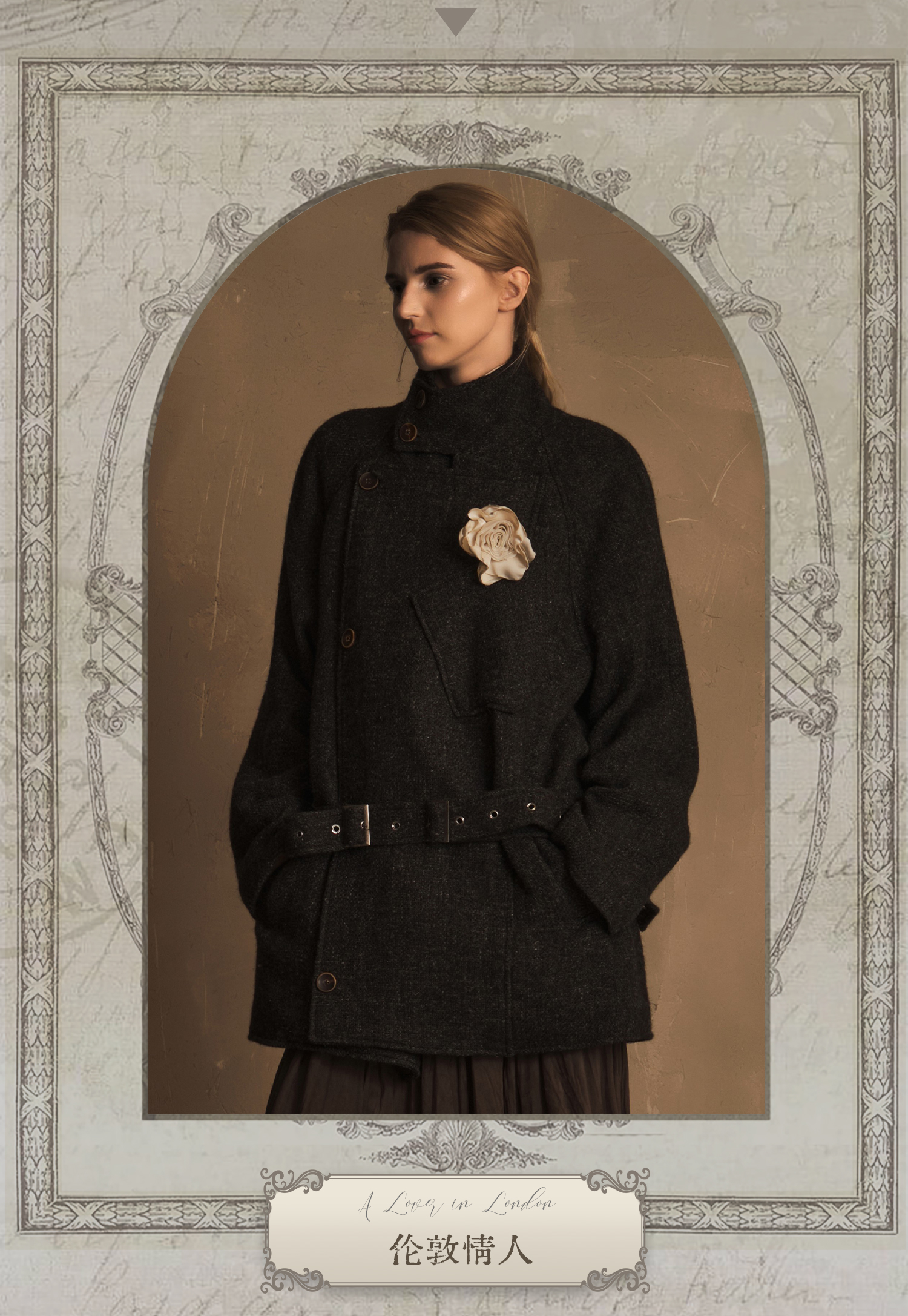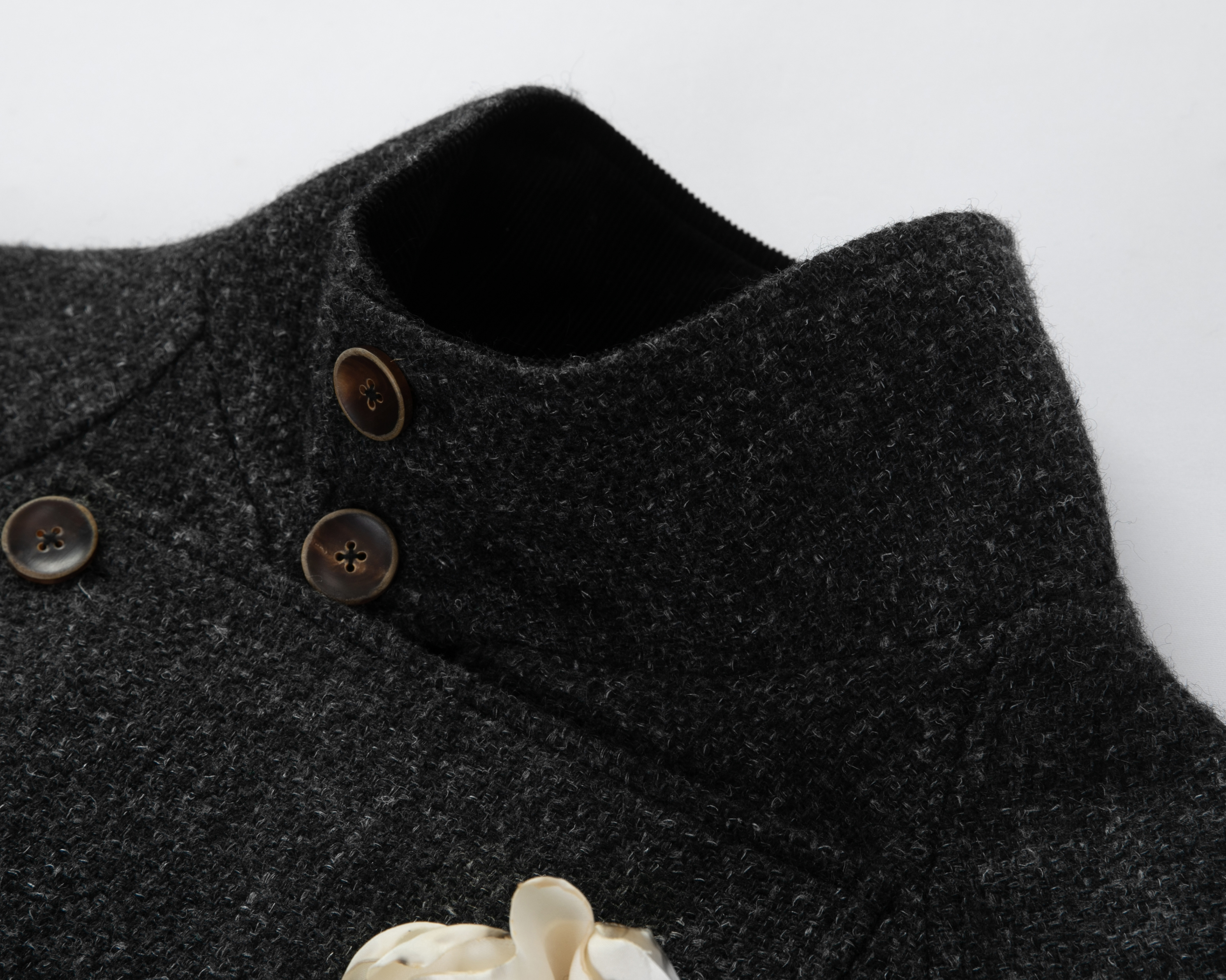 Tam Tuas【London Lover】Tweed Harrington Half-Turtleneck Shielding Chest Flower Short Coat