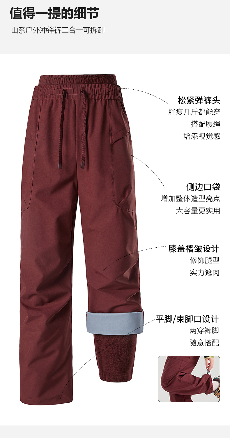 Scarecrow Women's 3-in-1 Autumn and Winter Waterproof and Windproof Hiking Sports Cargo Pants with Fleece Lining and Thickened Ski Pants