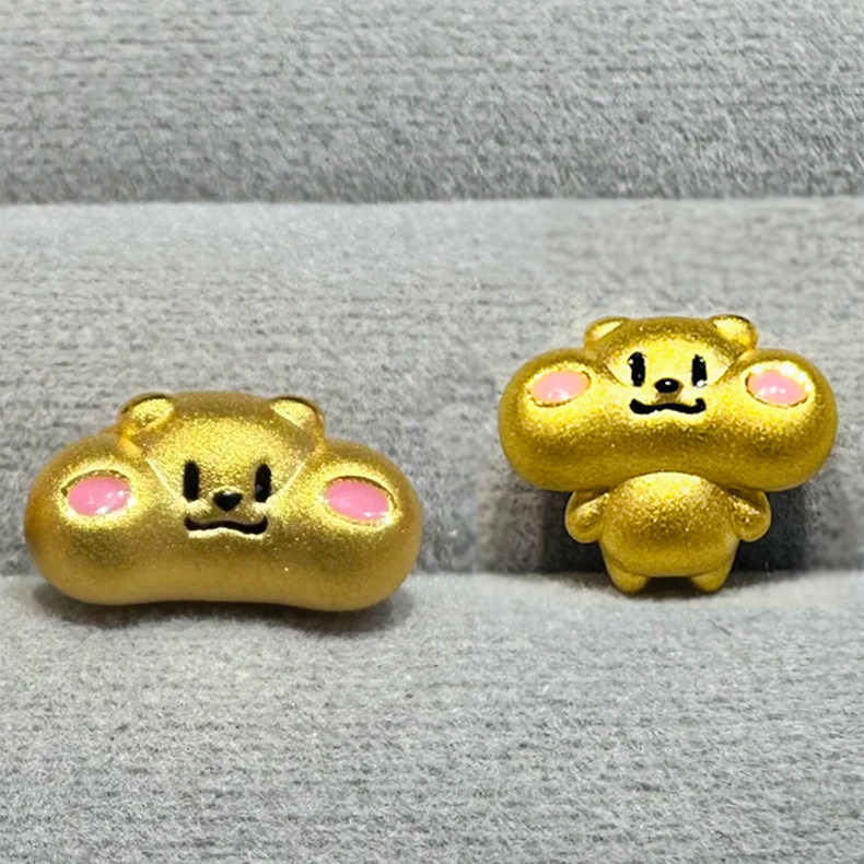 999 Pure Gold Milk Tea Rat Transfer Bead Gold Cute Zodiac Rat Bracelet Hard Gold Beads Couple Gift