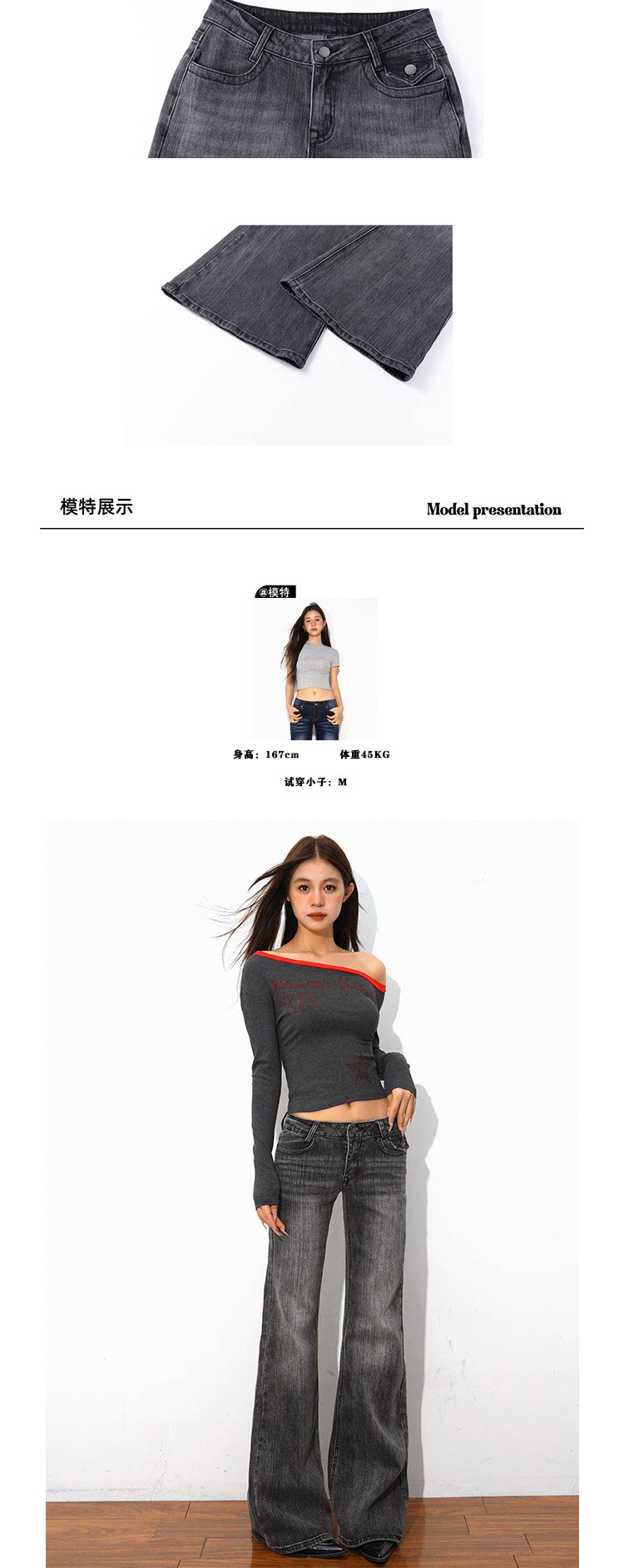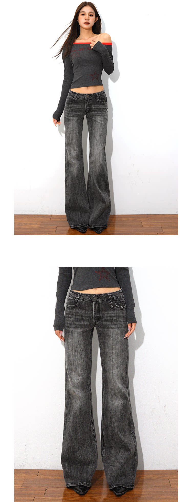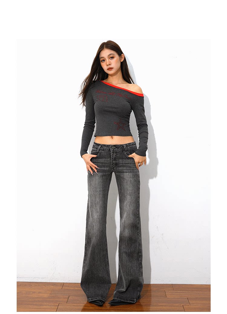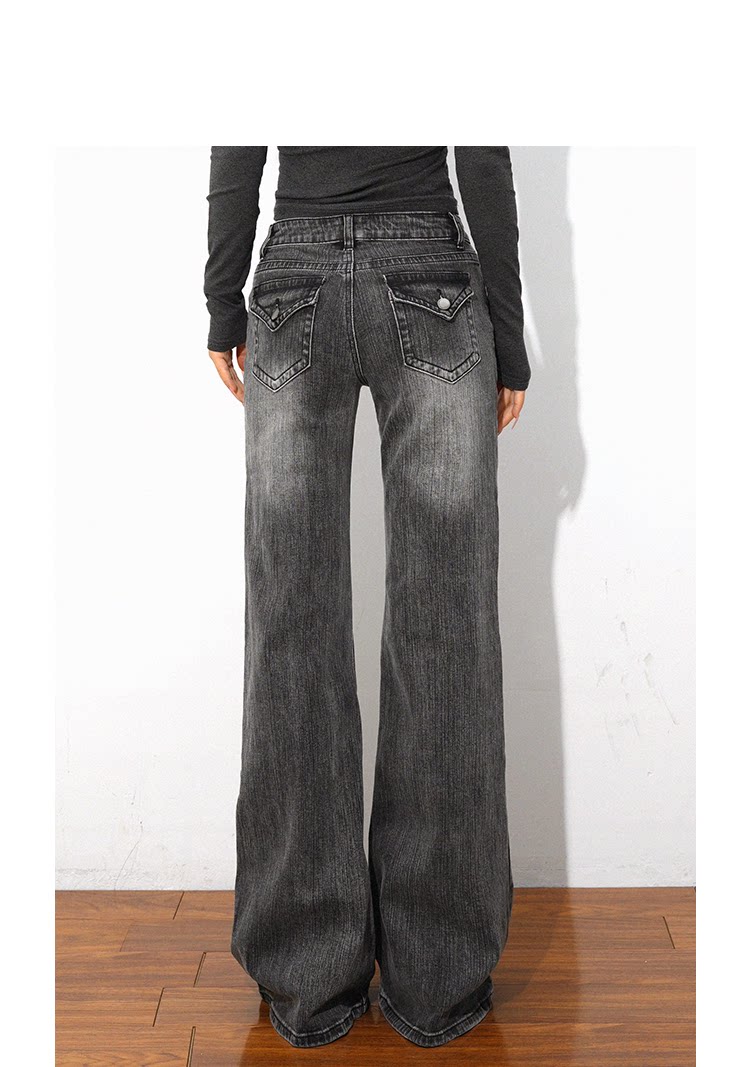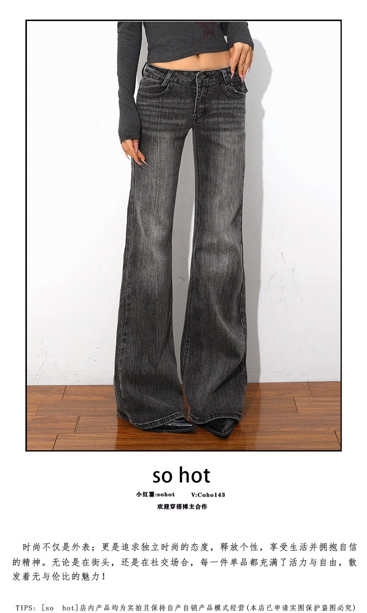 @Sohot Spring and Autumn American Retro Washed Distressed Jeans for Women, Flared Wide-Leg Floor-Length Pants, Low-Waist Pants for Trendy Girls