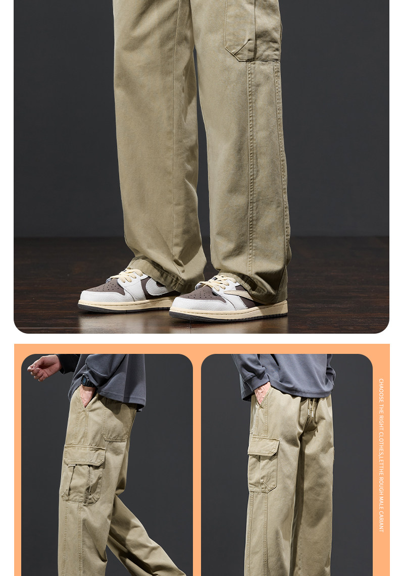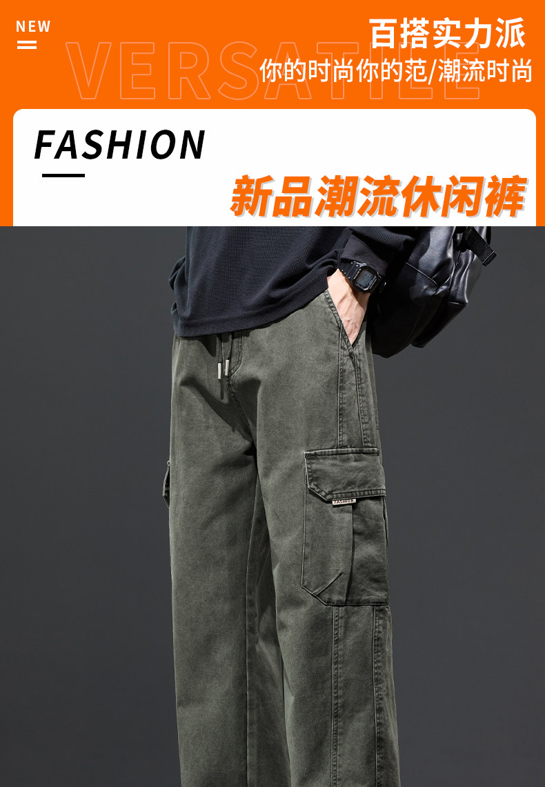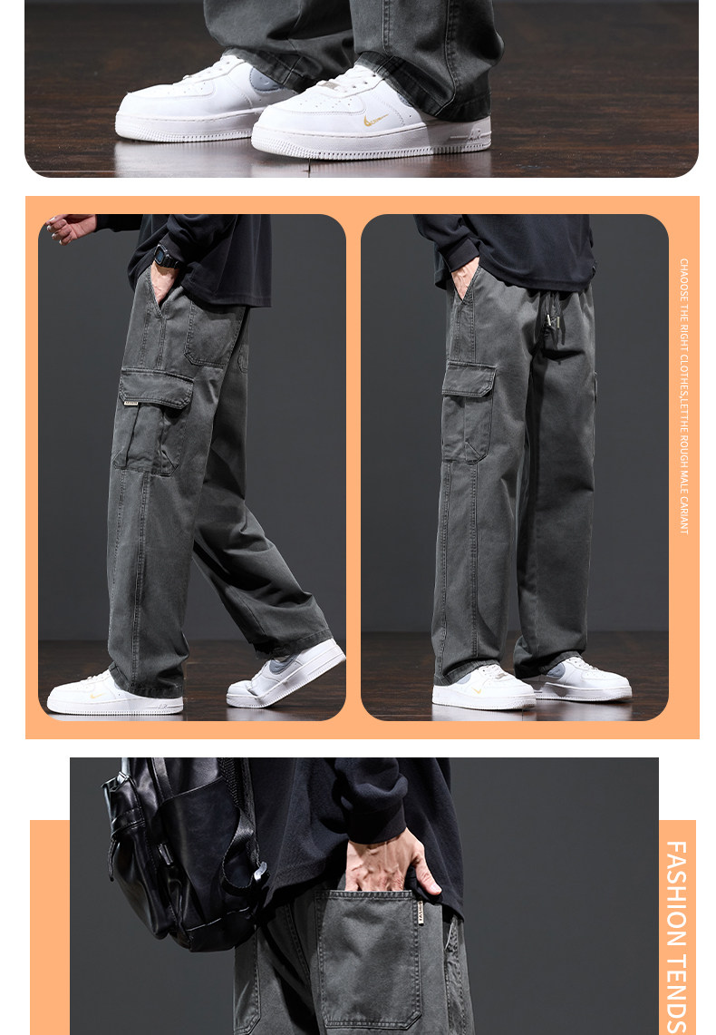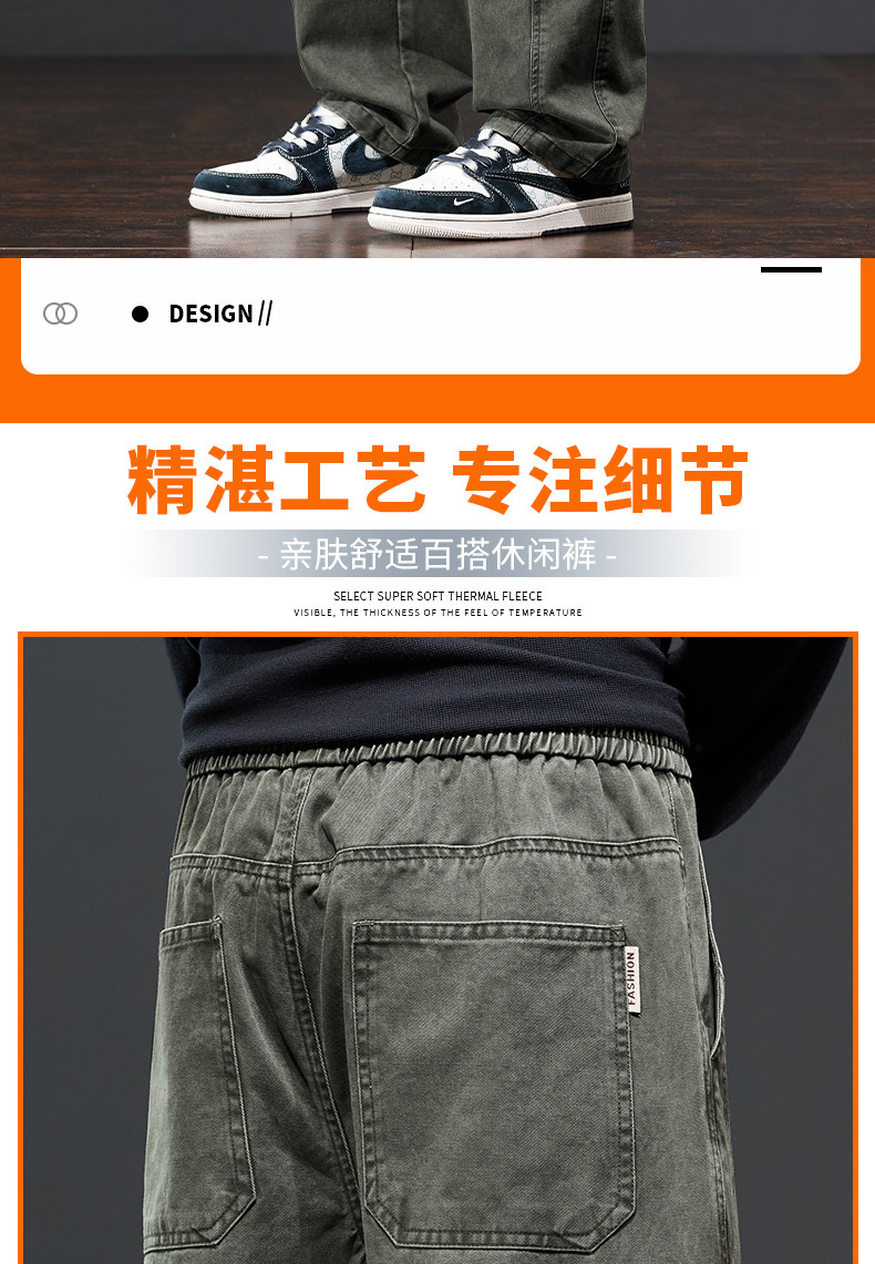 Jeanswest Fleece-Lined Cargo Pants Men's Trousers Autumn and Winter 2025 New Youth Long Pants Pure Cotton Straight Casual Pants
