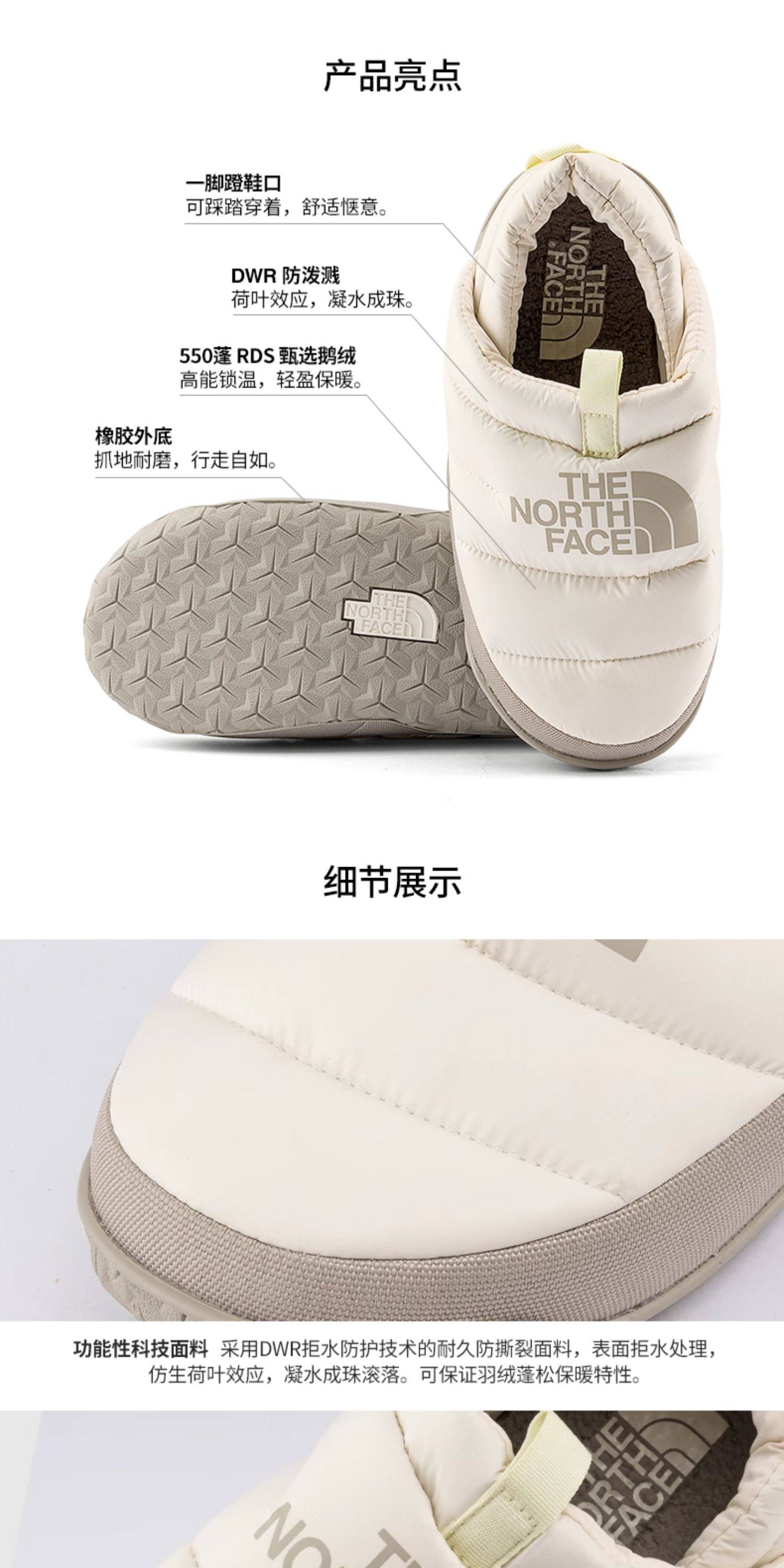 Thenorthface North Face Women's Camp Shoes 2025 Autumn/Winter Outdoor Water-Repellent Warm down Loafers 5G2B