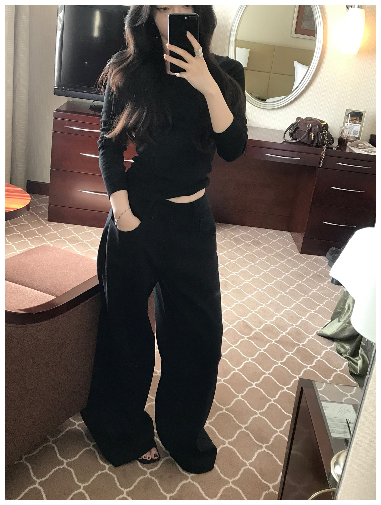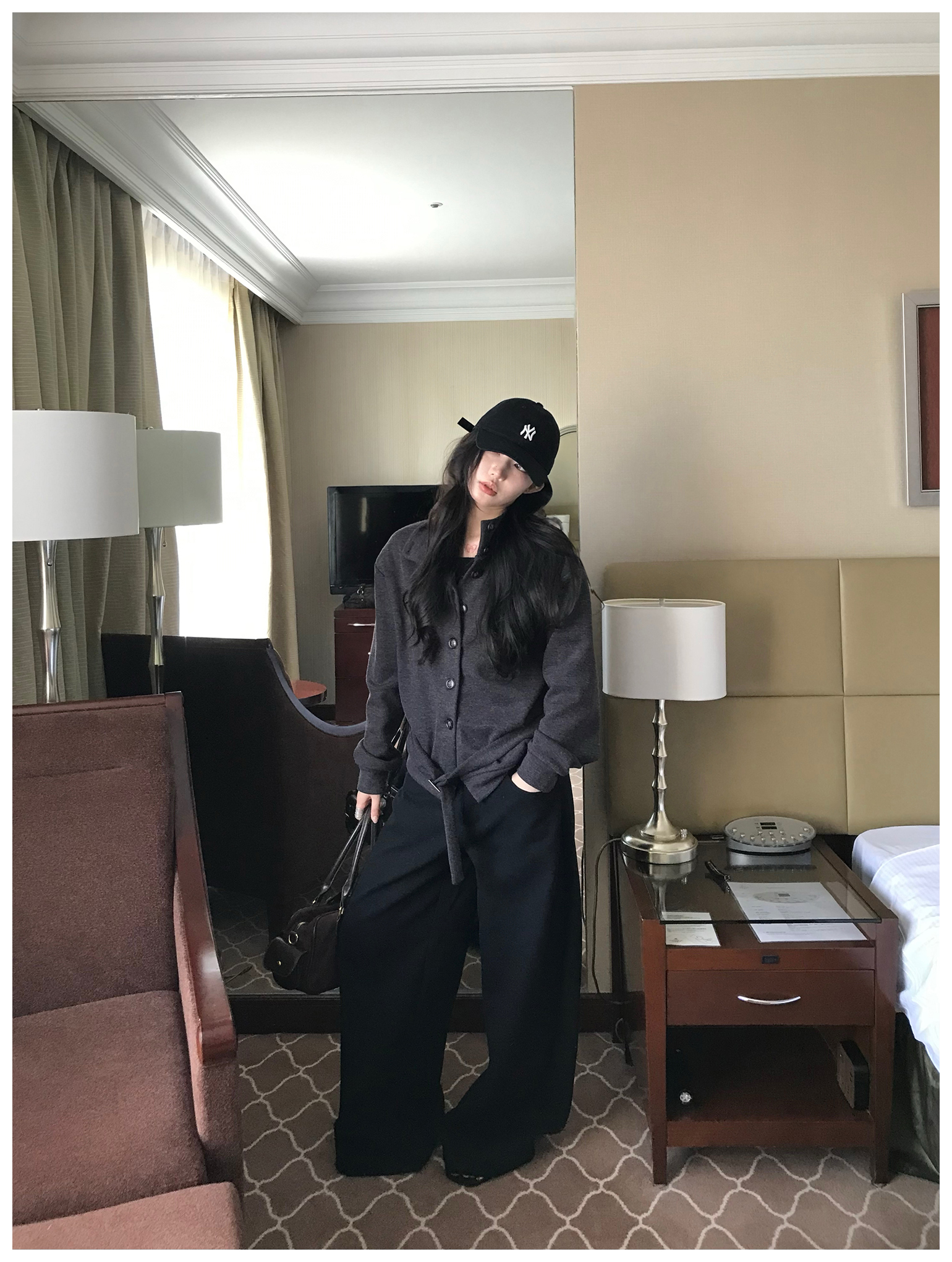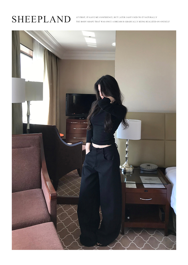 Sheepland Old Money Style Black High Drape Suit Pants for Women, Autumn Loose Slimming Wide-Leg Casual Pants