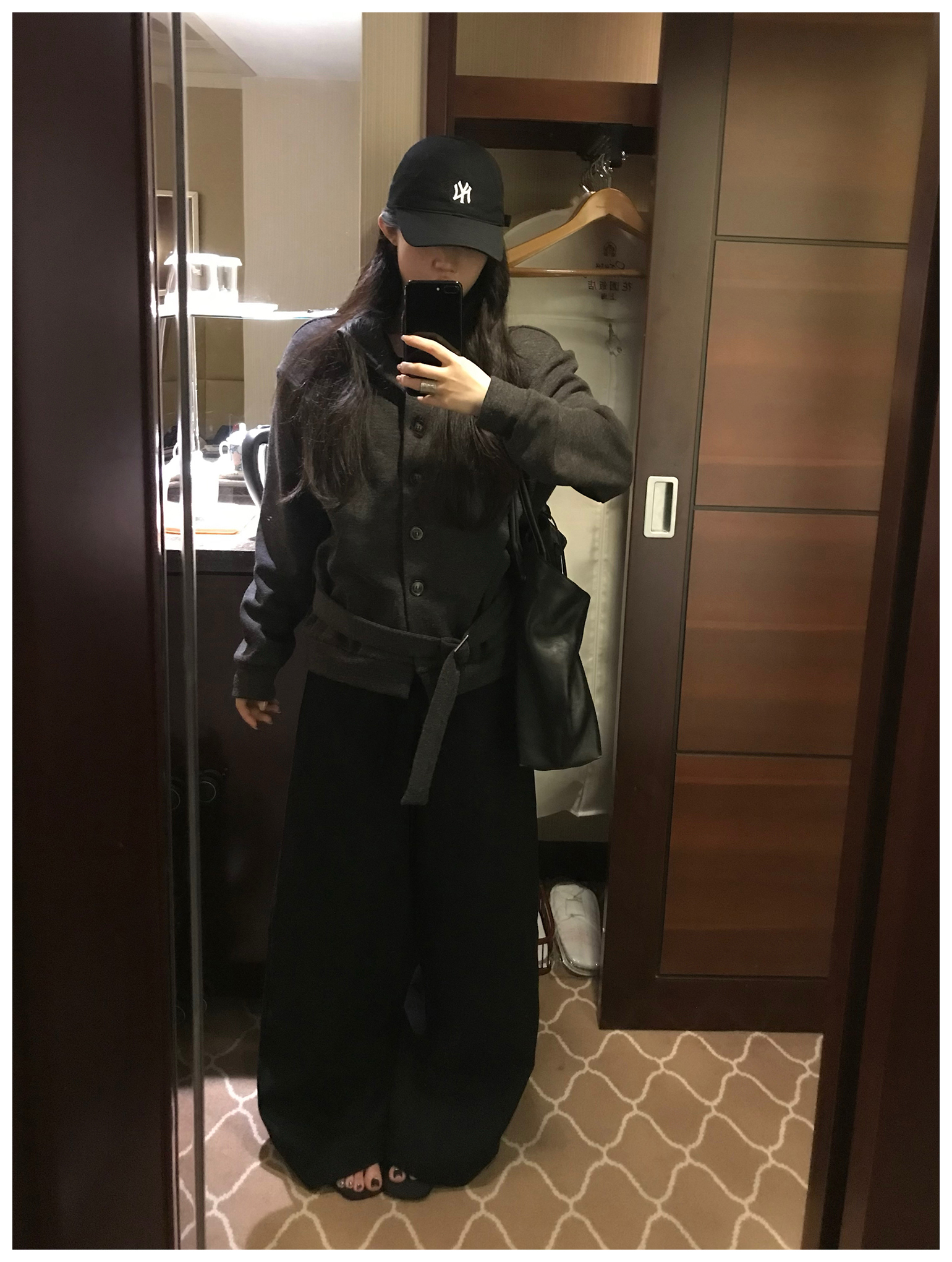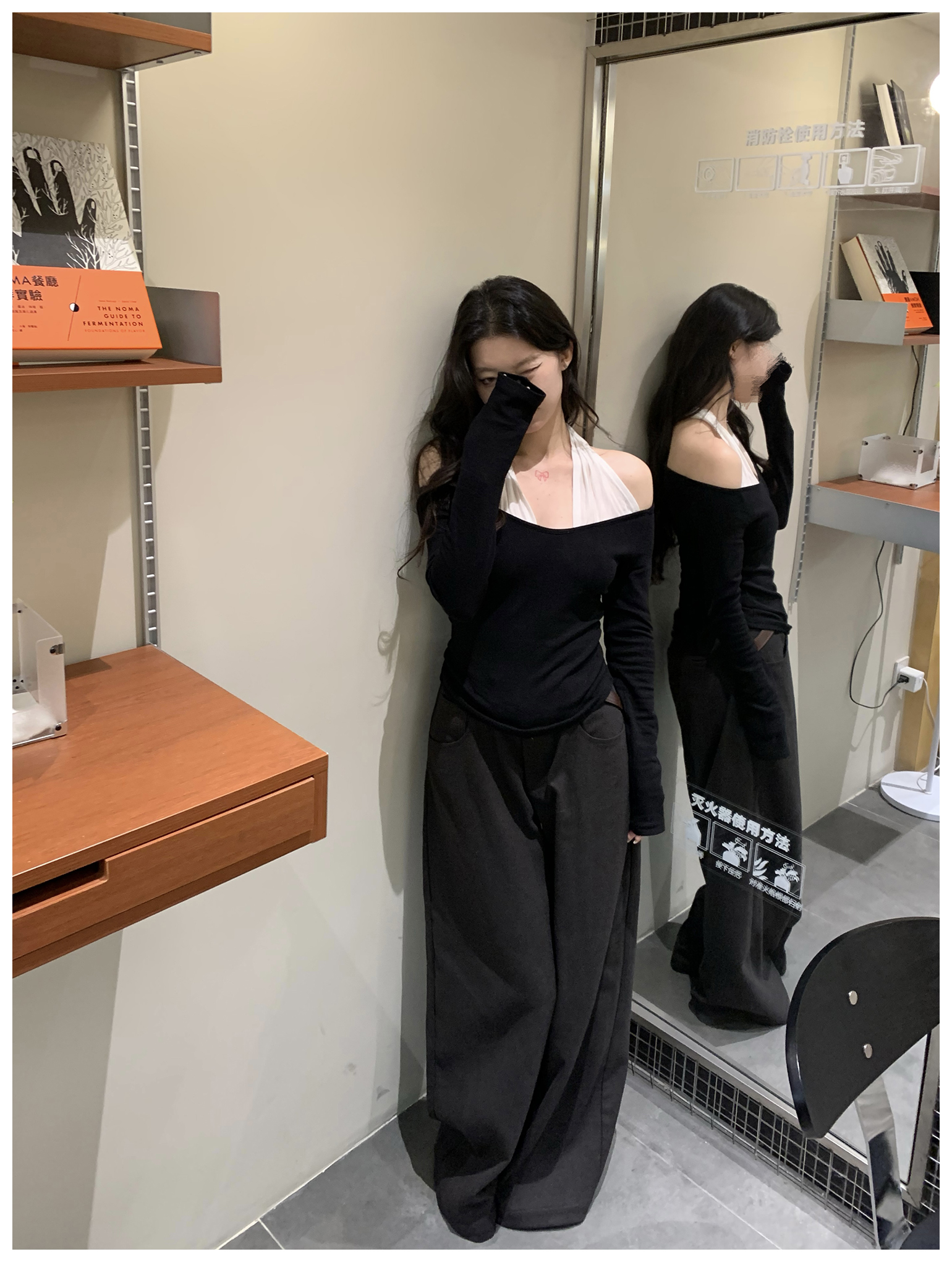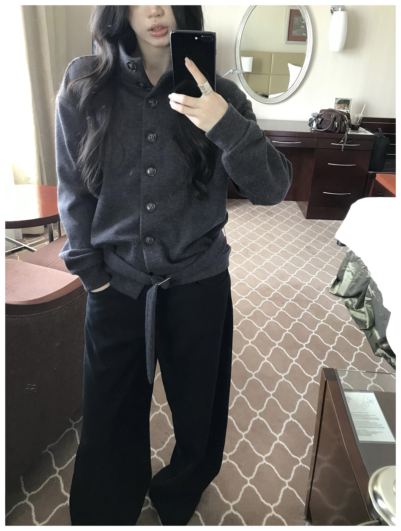 Sheepland Old Money Style Black High Drape Suit Pants for Women, Autumn Loose Slimming Wide-Leg Casual Pants