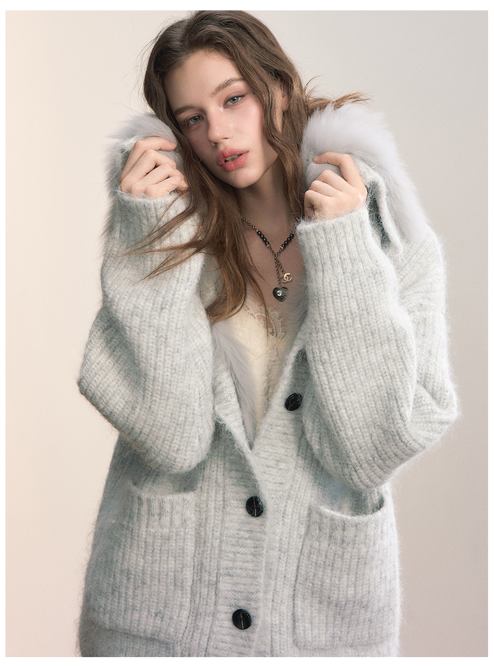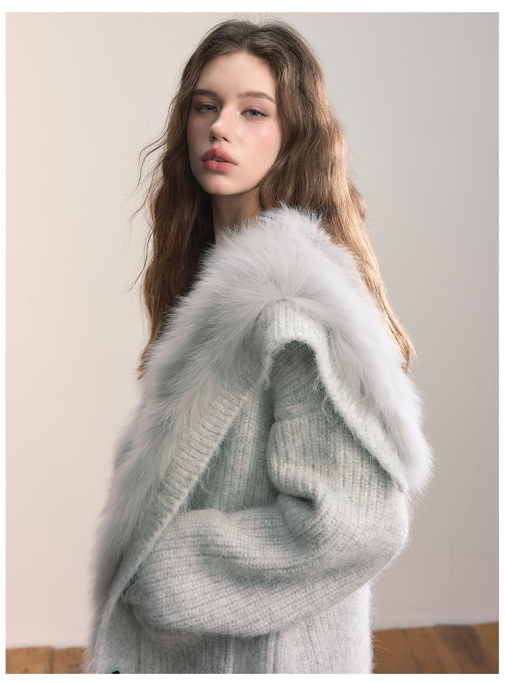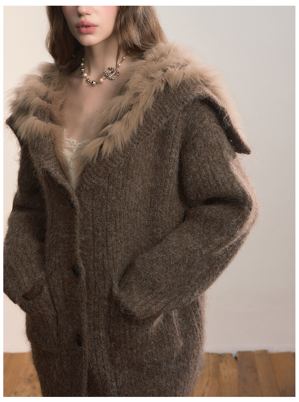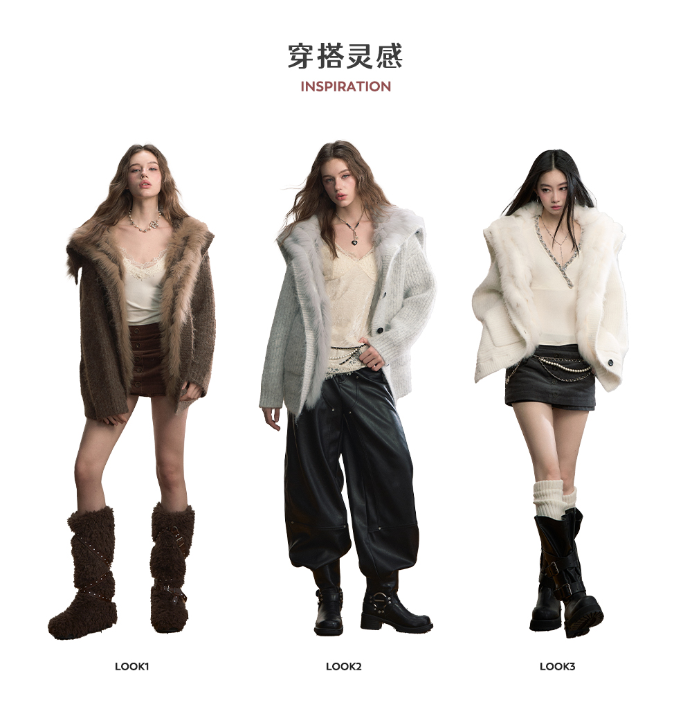 Viapitti Design-Focused Heavy Fox Fur Large Lapel Warm Plush Sweater Jacket Women's Autumn and Winter Cardigan