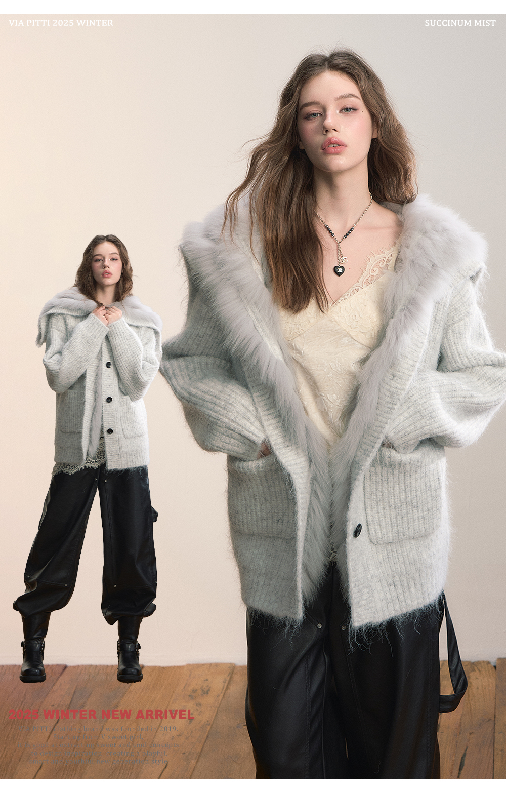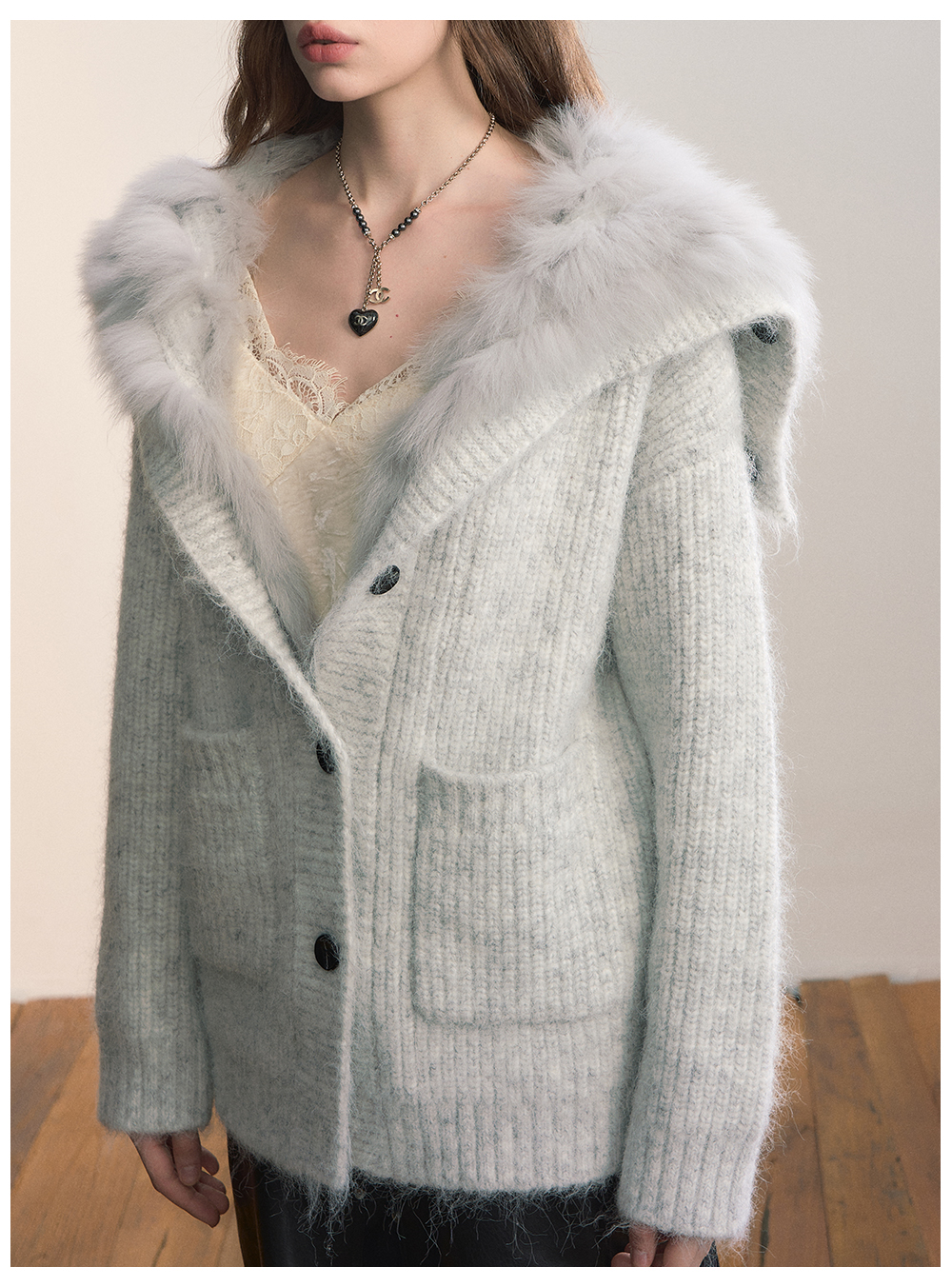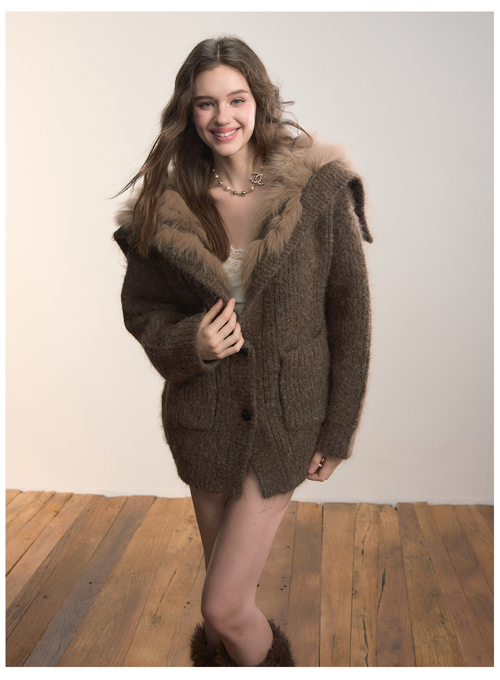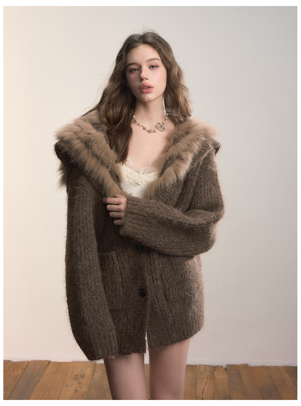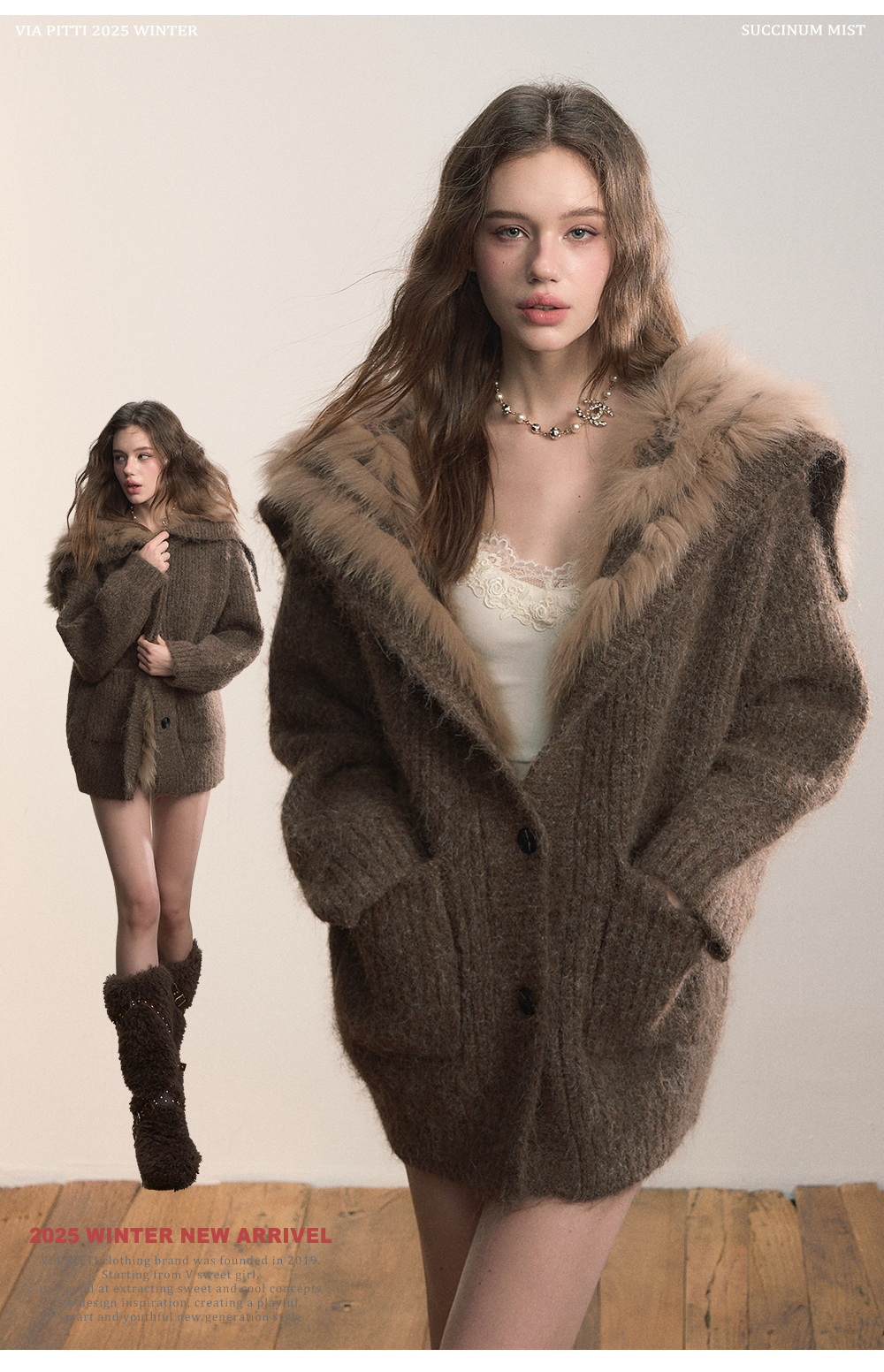 Viapitti Design-Focused Heavy Fox Fur Large Lapel Warm Plush Sweater Jacket Women's Autumn and Winter Cardigan