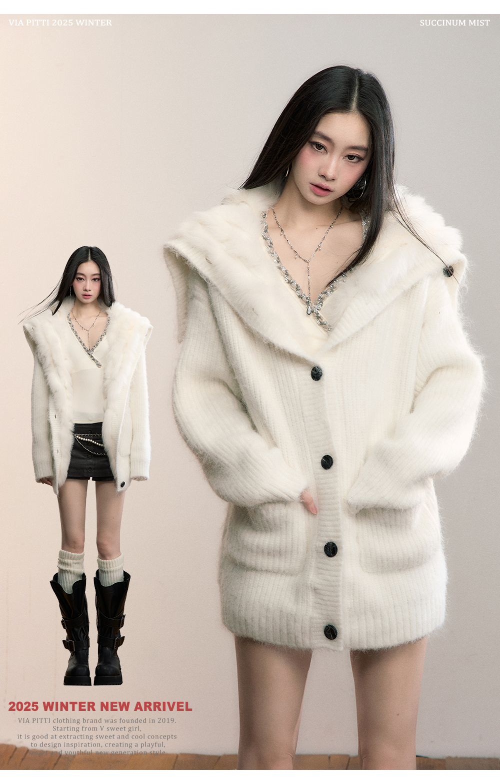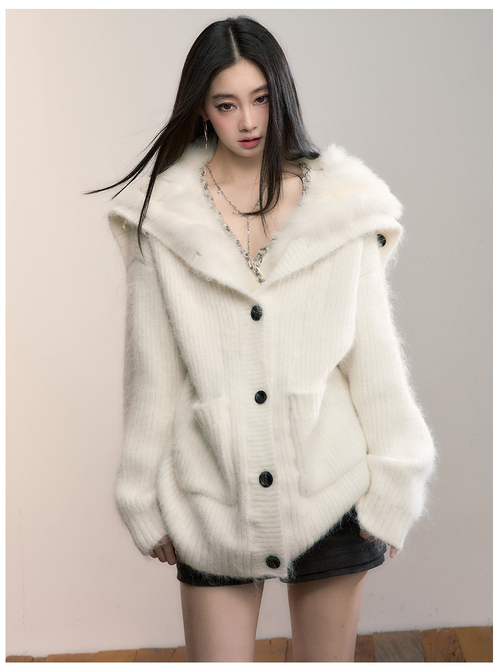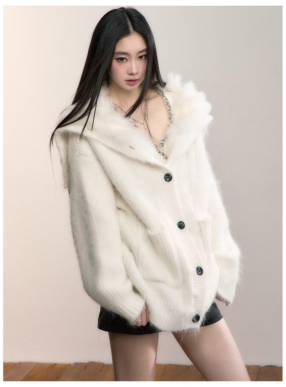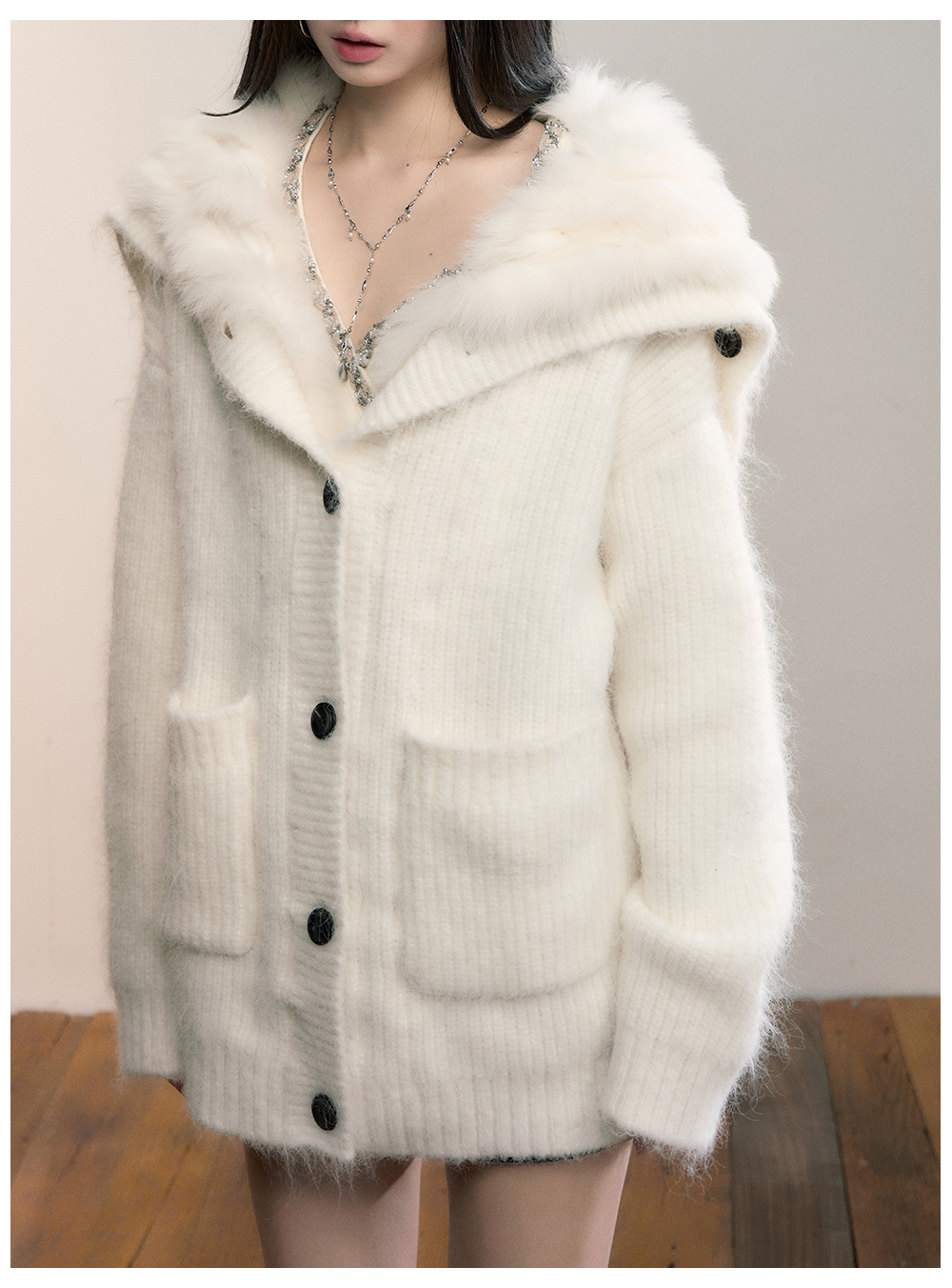 Viapitti Design-Focused Heavy Fox Fur Large Lapel Warm Plush Sweater Jacket Women's Autumn and Winter Cardigan