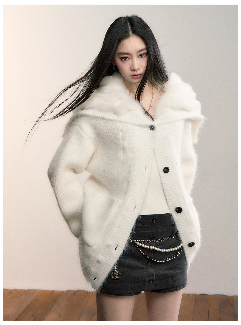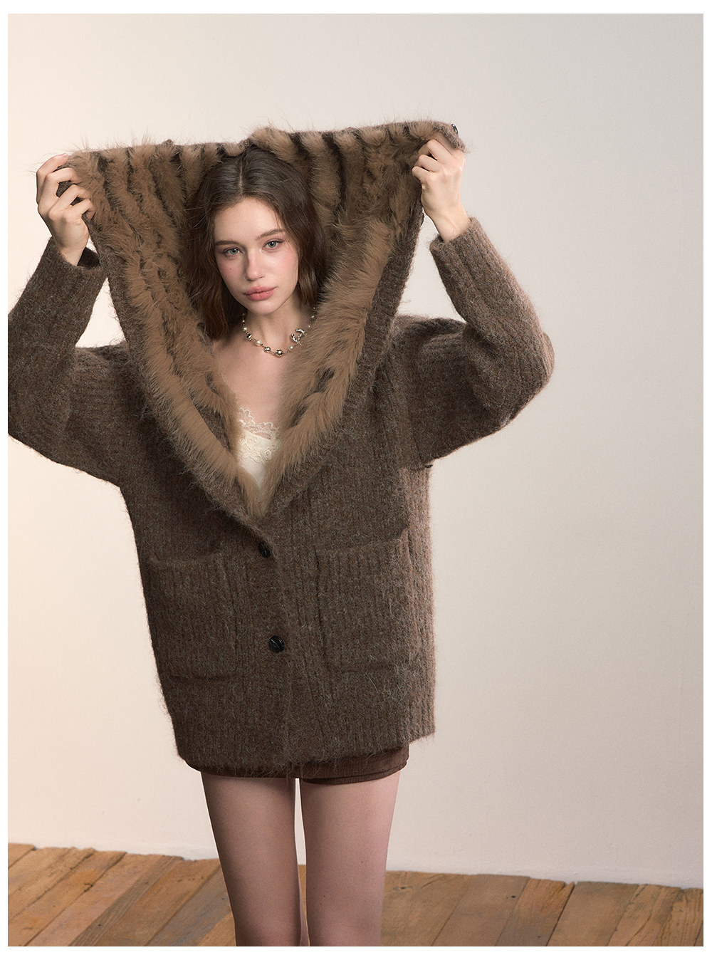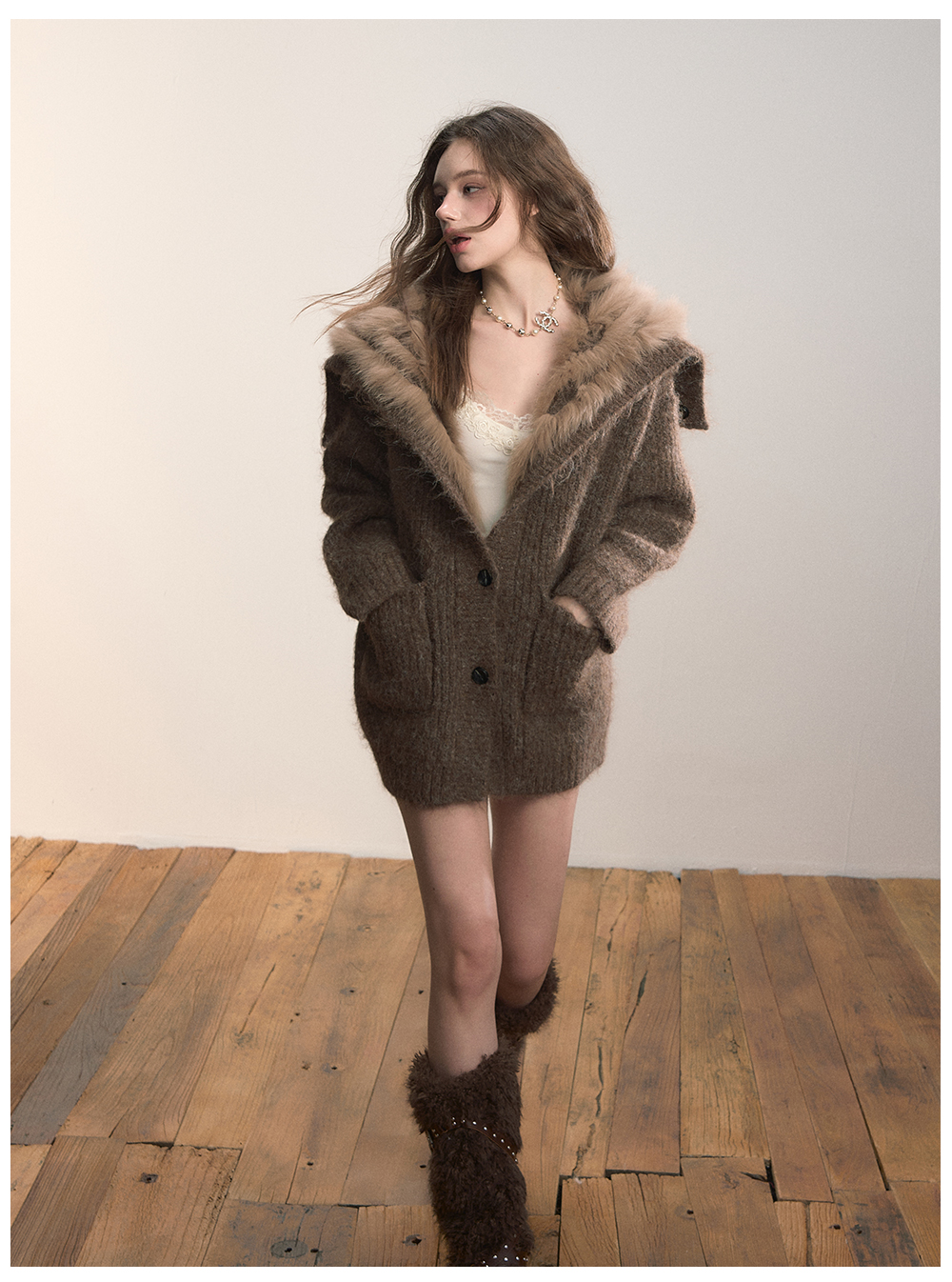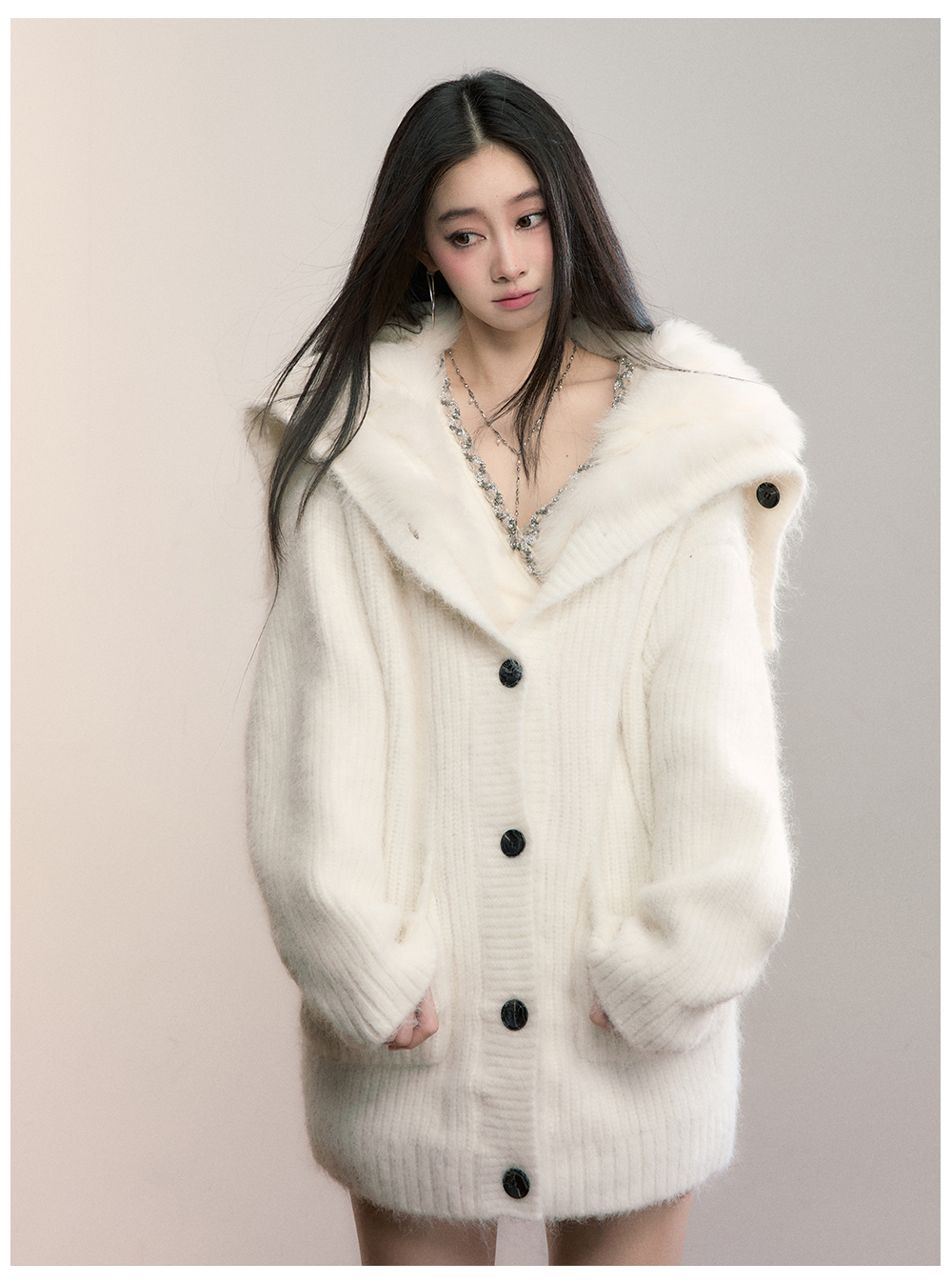 Viapitti Design-Focused Heavy Fox Fur Large Lapel Warm Plush Sweater Jacket Women's Autumn and Winter Cardigan