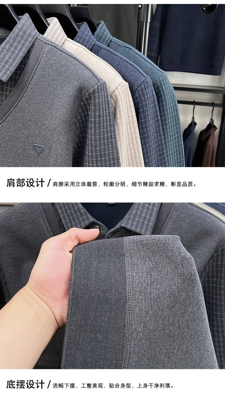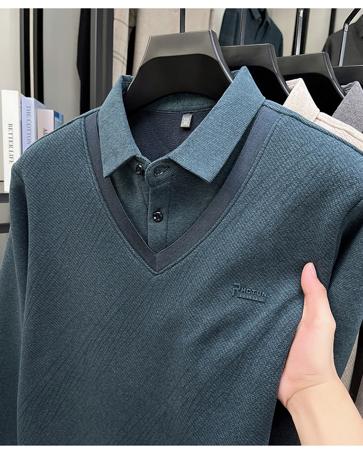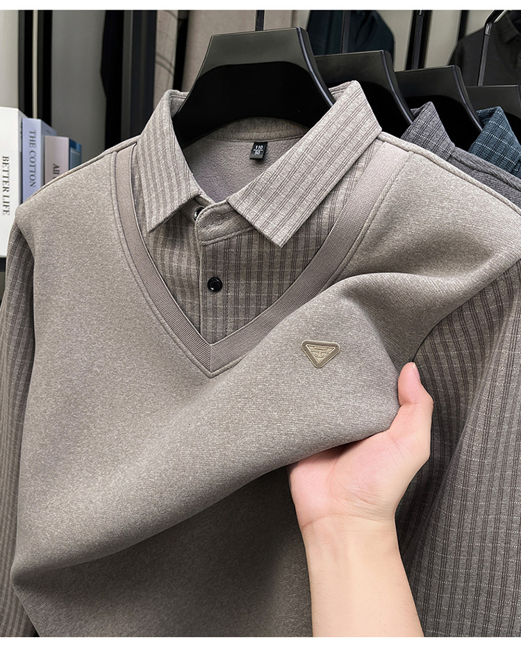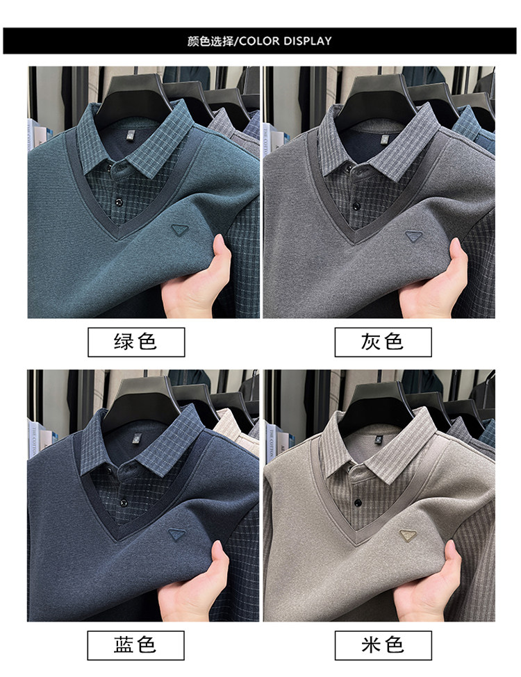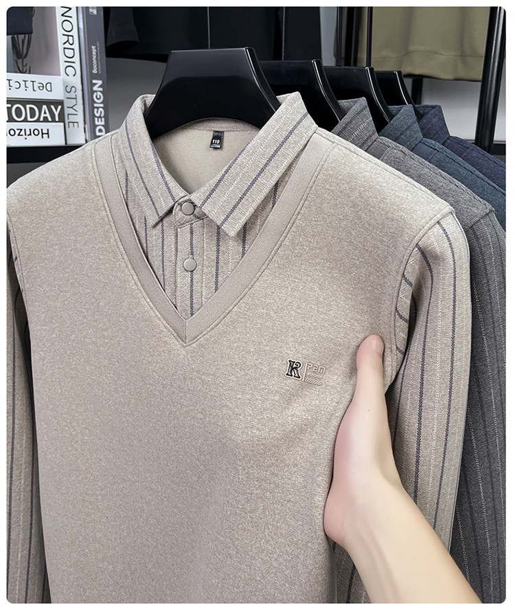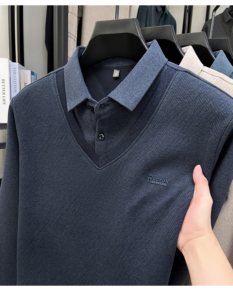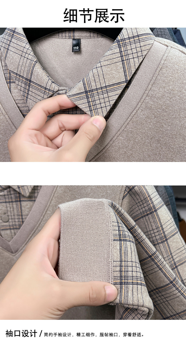 Hengyuanxiang New Autumn and Winter Men's Wool Sweater, Middle-Aged Dad's Casual Fleece-Lined Thickened Faux Two-Piece Warm Base Shirt