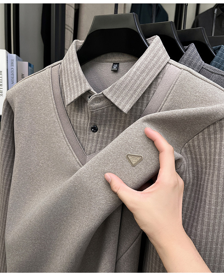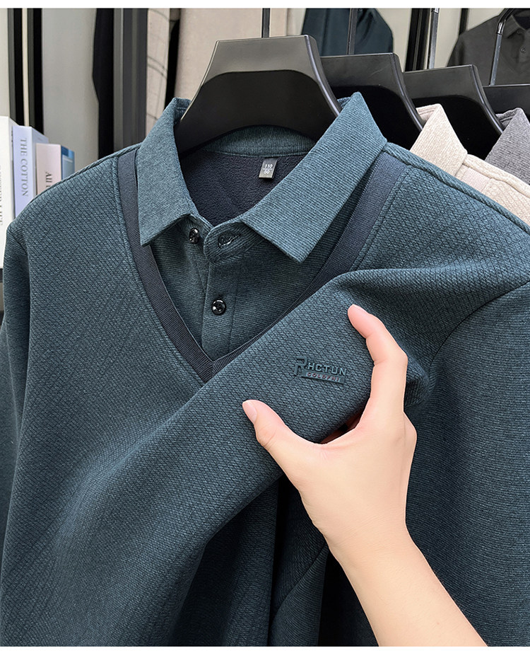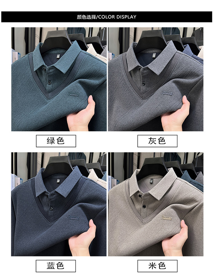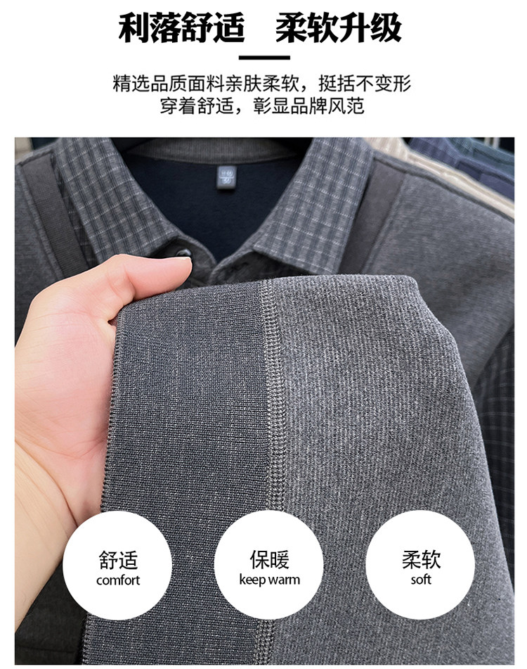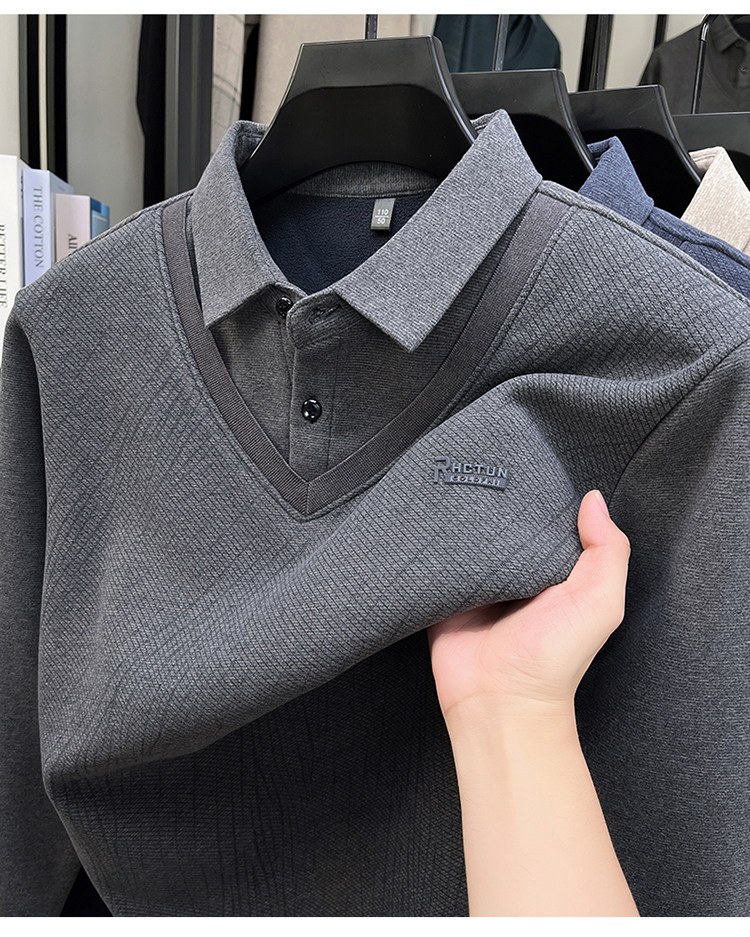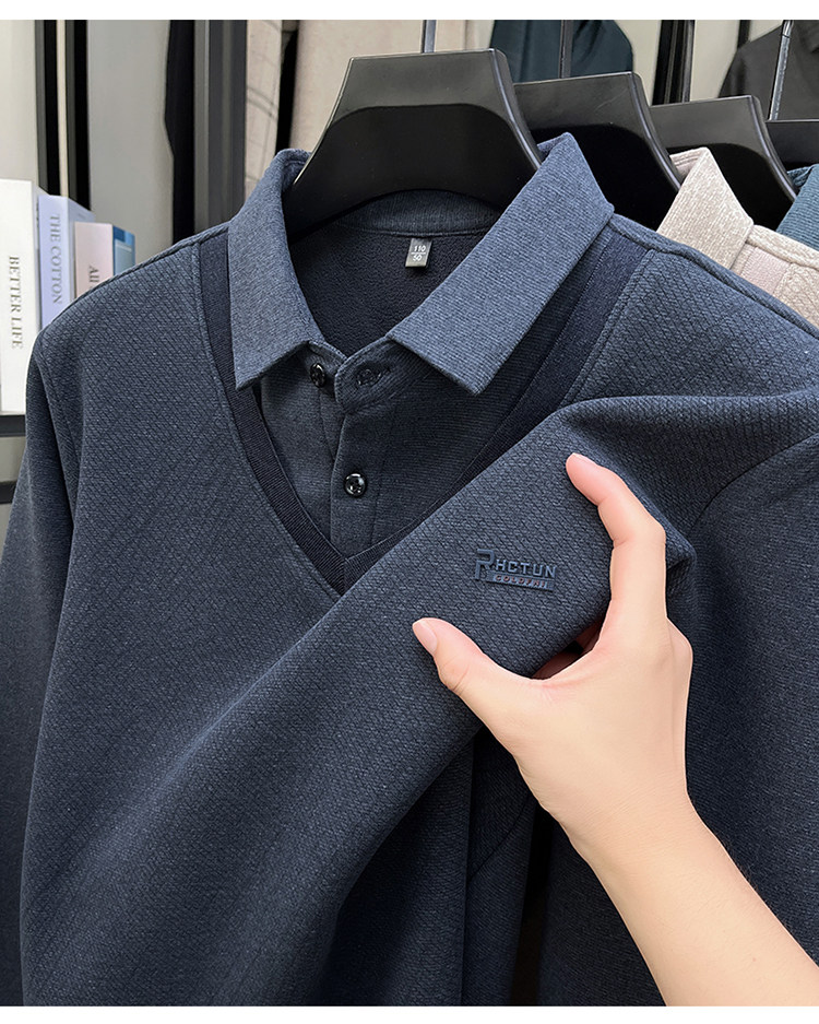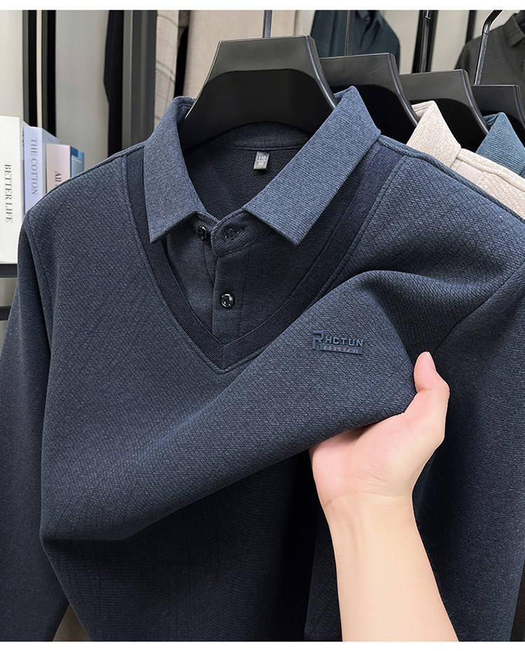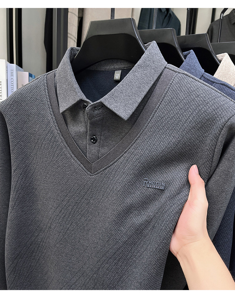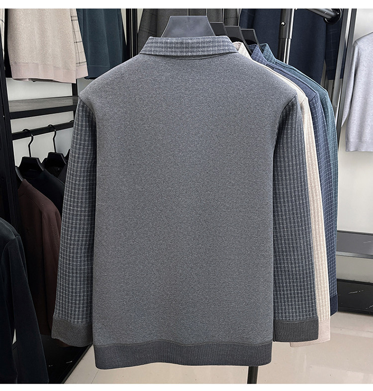 Hengyuanxiang New Autumn and Winter Men's Wool Sweater, Middle-Aged Dad's Casual Fleece-Lined Thickened Faux Two-Piece Warm Base Shirt