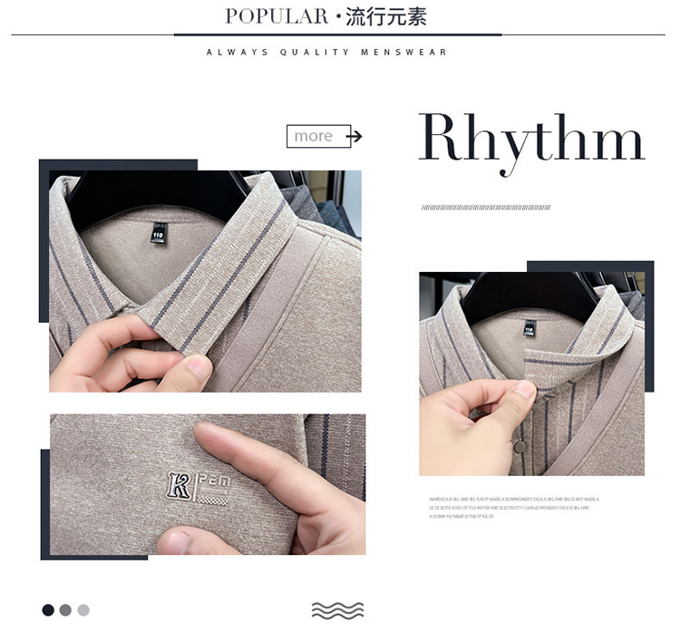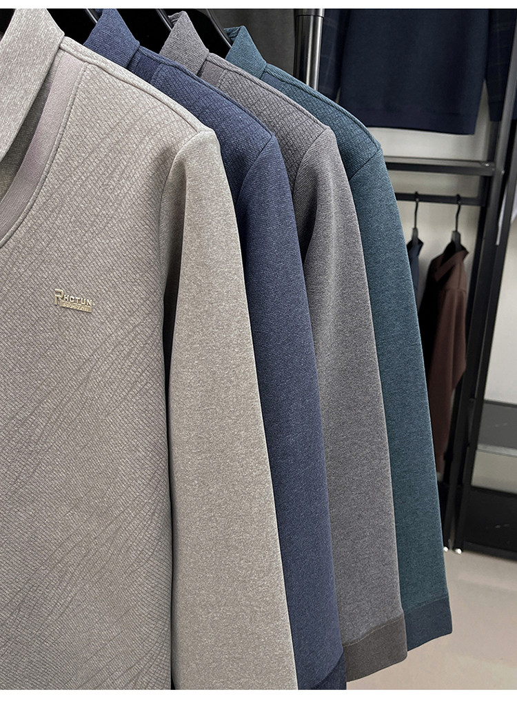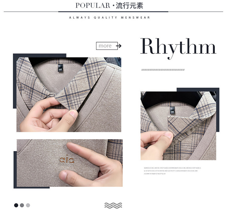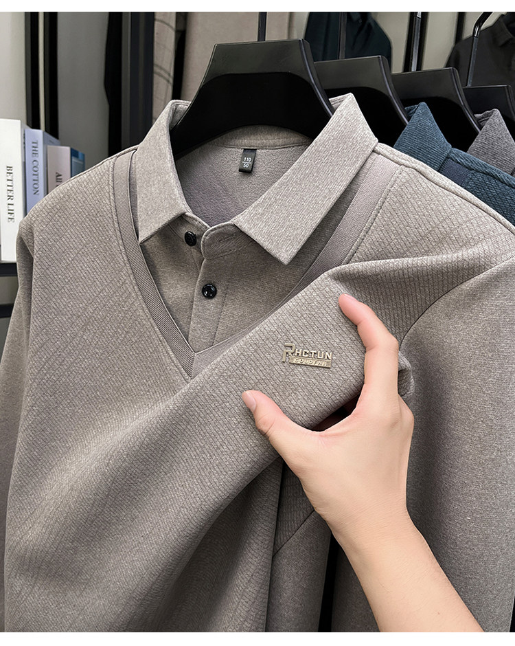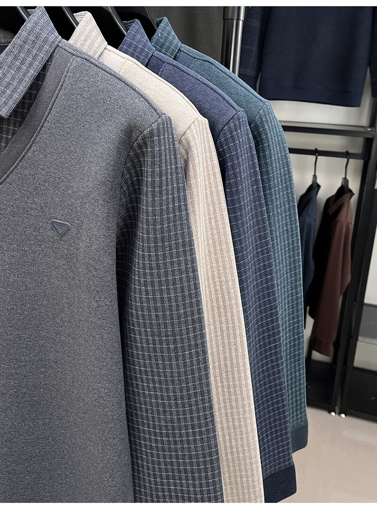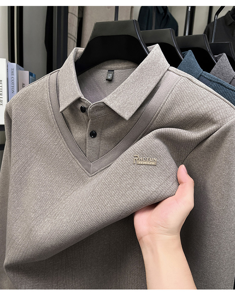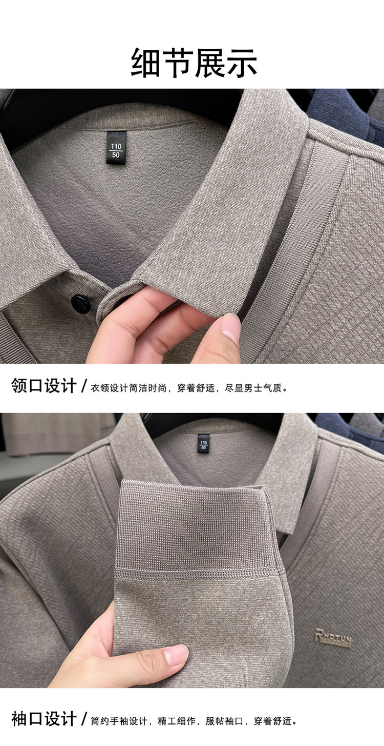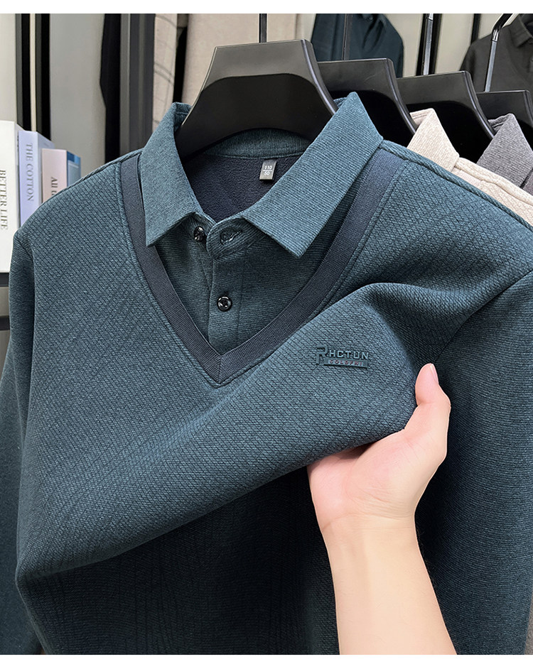 Hengyuanxiang New Autumn and Winter Men's Wool Sweater, Middle-Aged Dad's Casual Fleece-Lined Thickened Faux Two-Piece Warm Base Shirt